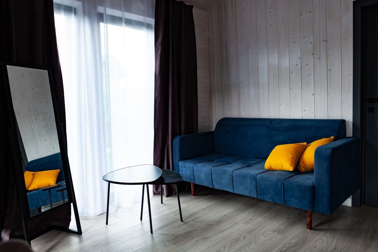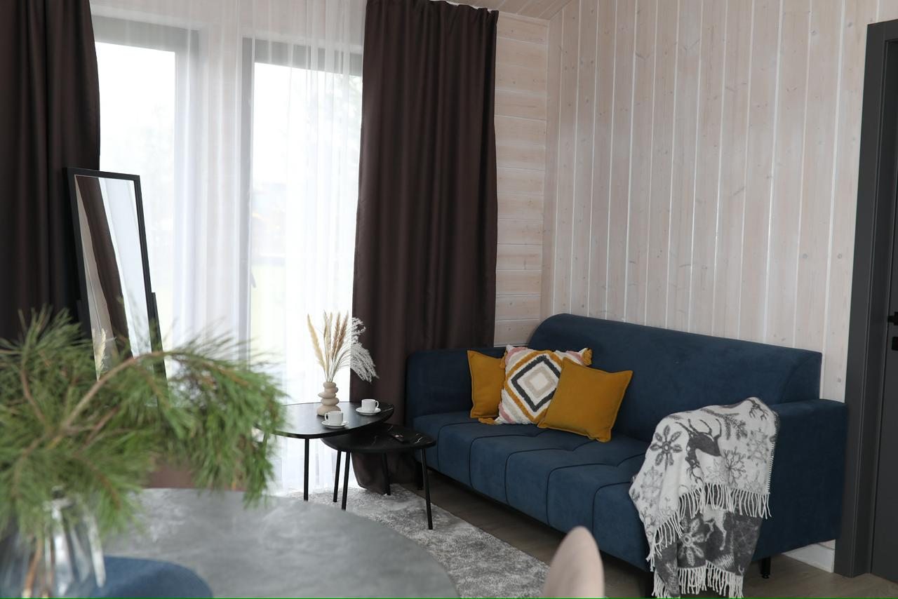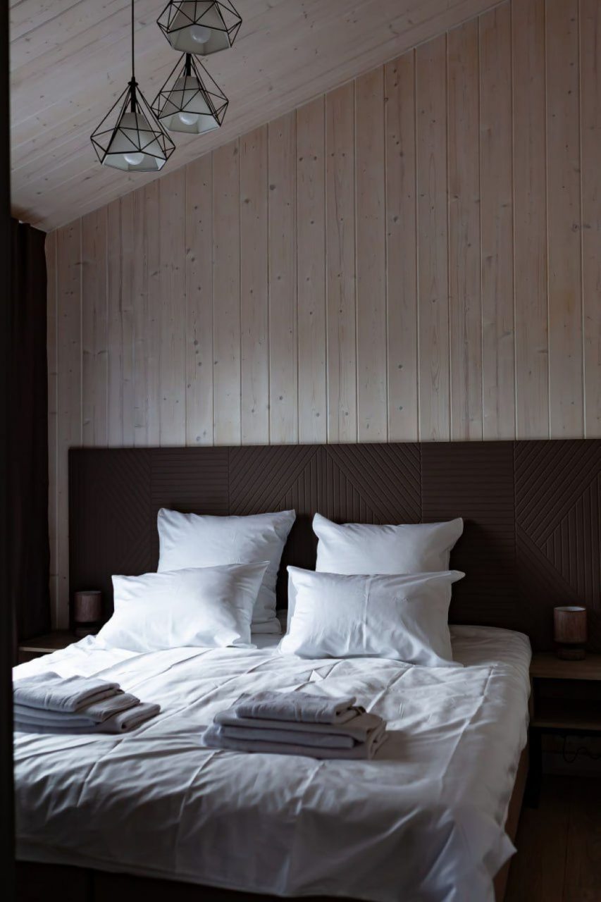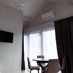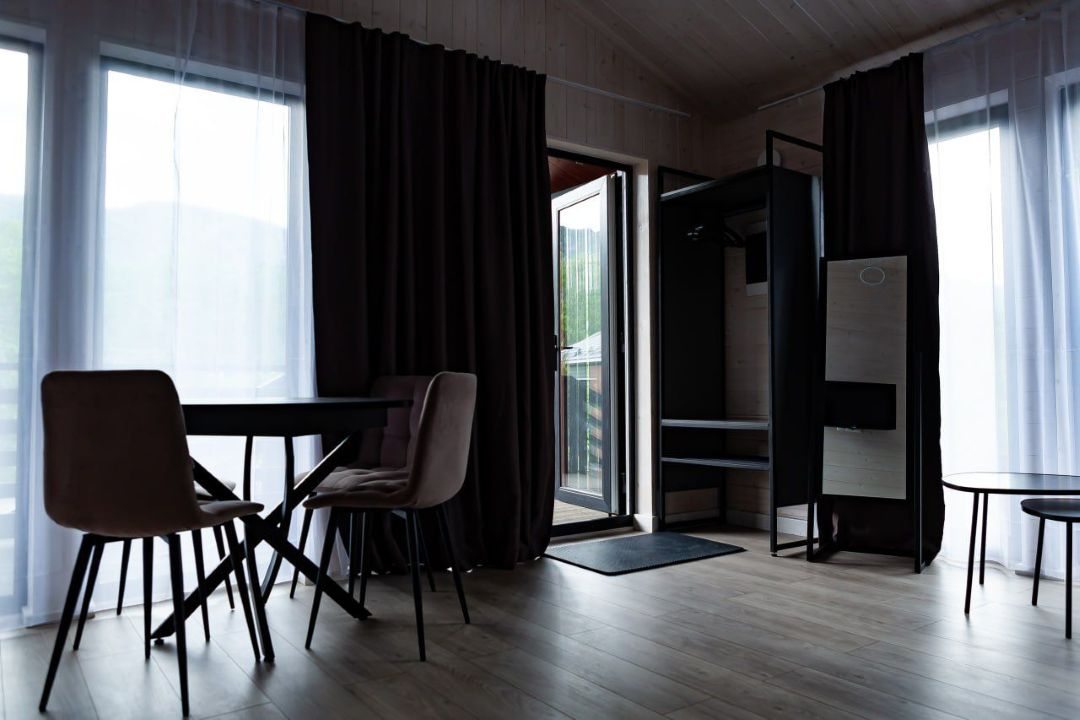 Для проживания предлагаются комфортабельные коттеджи, которые оснащены качественной мебелью и техникой, в том числе удобными кроватями, плотными шторами, телевизорами, кондиционерами. В индивидуальном санузле имеется стиральная машина.