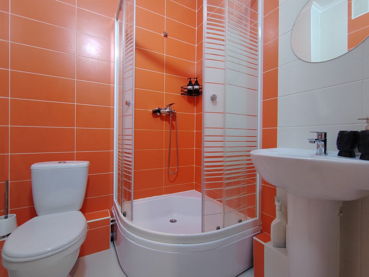 Апартаменты Any Day мы оцениваем на отлично. Здесь действительно уютно, есть место для приготовления пищи и большой холодильник. Санузел с большой двухместной душевой кабиной. Стиральная машина подключена, режимов много в ней. Окна большие панорамные, хорошо зашториваются. Можно отдохнуть спокойно. Вид из окна открывается во внутренний двор.