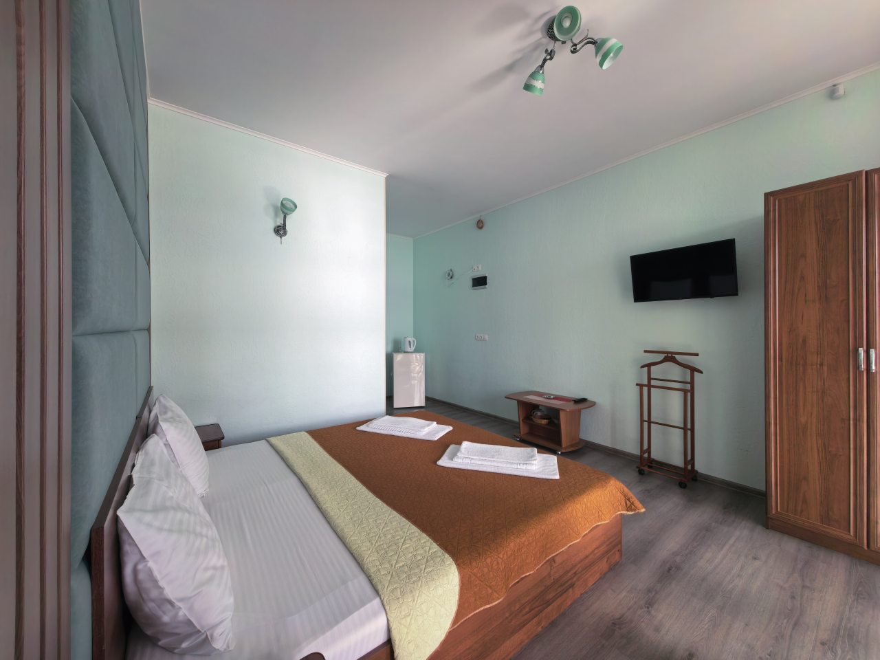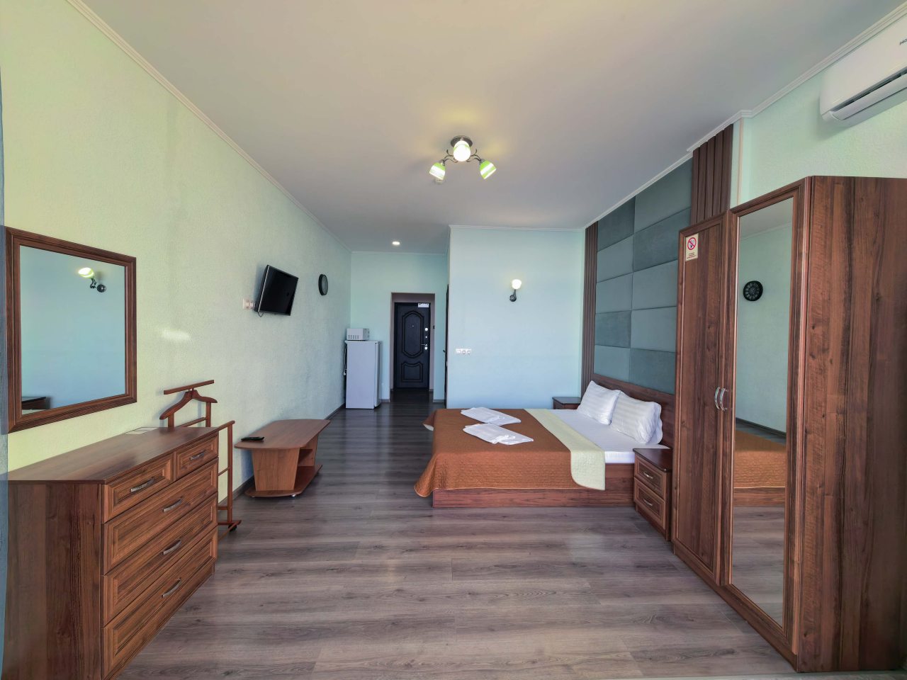 В отеле есть двухкомнатные и однокомнатные номера. Они все оборудованы кроватью, тумбочками, телевизором, шкафом, ванной комнатой с туалетом, душевой и умывальником.