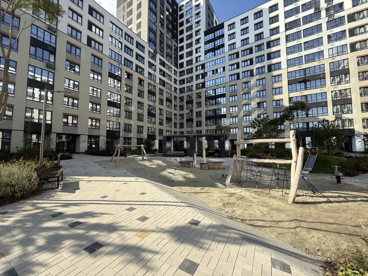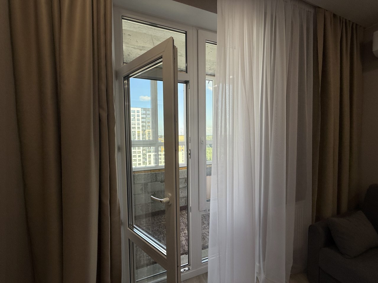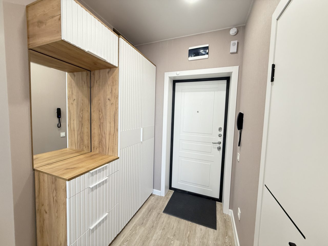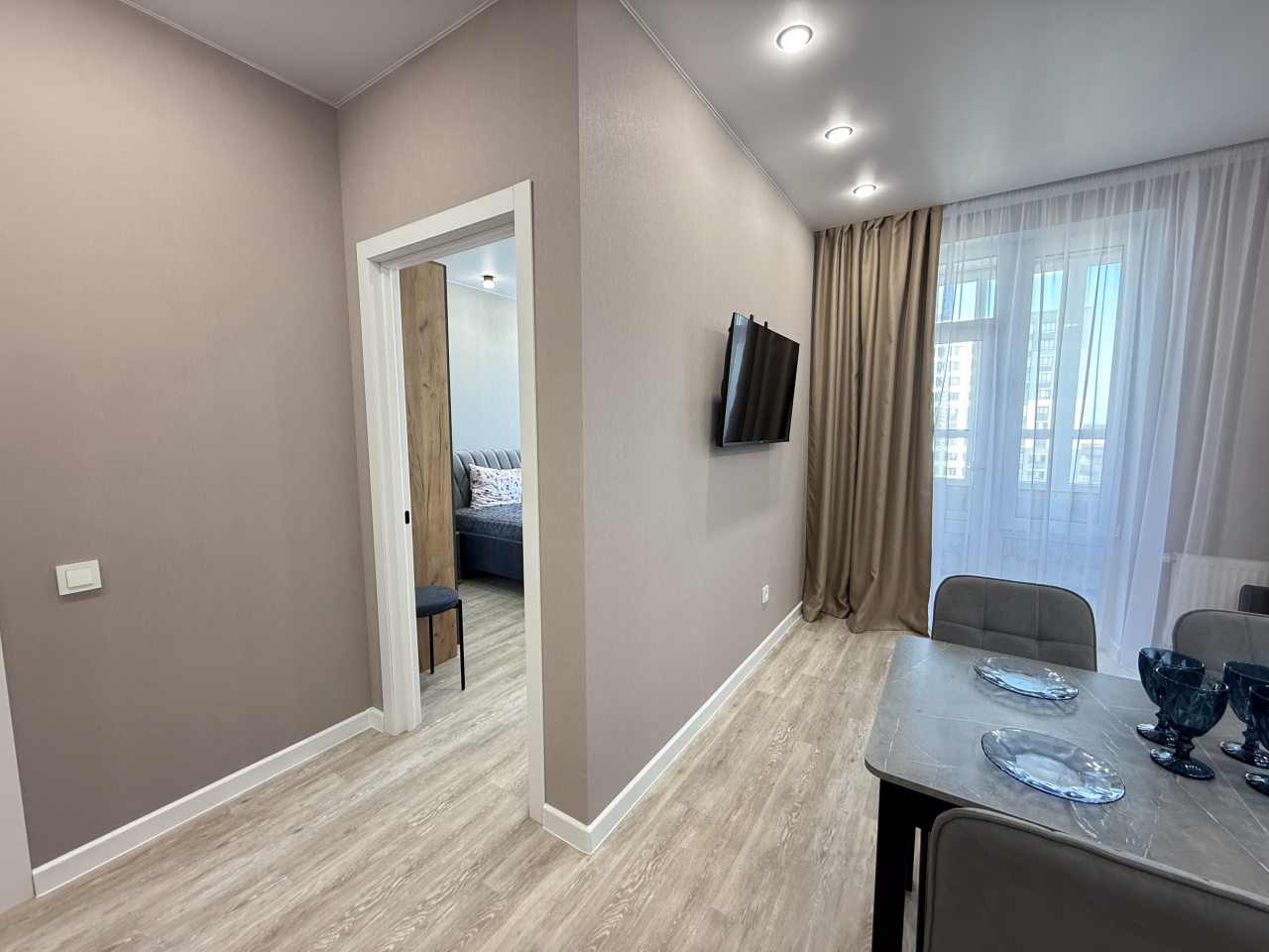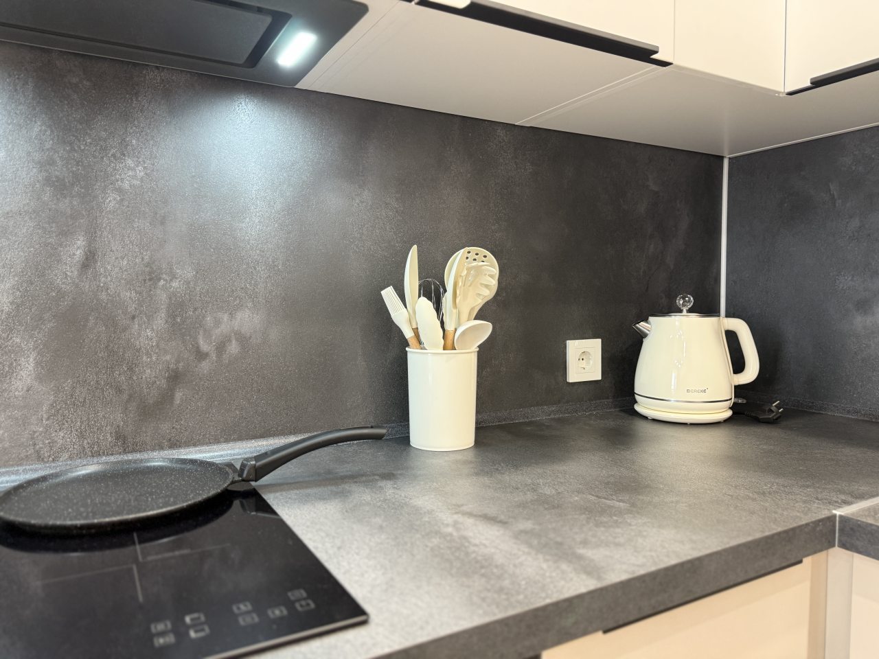 На кухонной зоне есть обеденный стол на четыре персоны и бытовые приборы для организации питания: варочная панель, микроволновая печь, холодильник. Поблизости работает продуктовый магазин «Магнит».