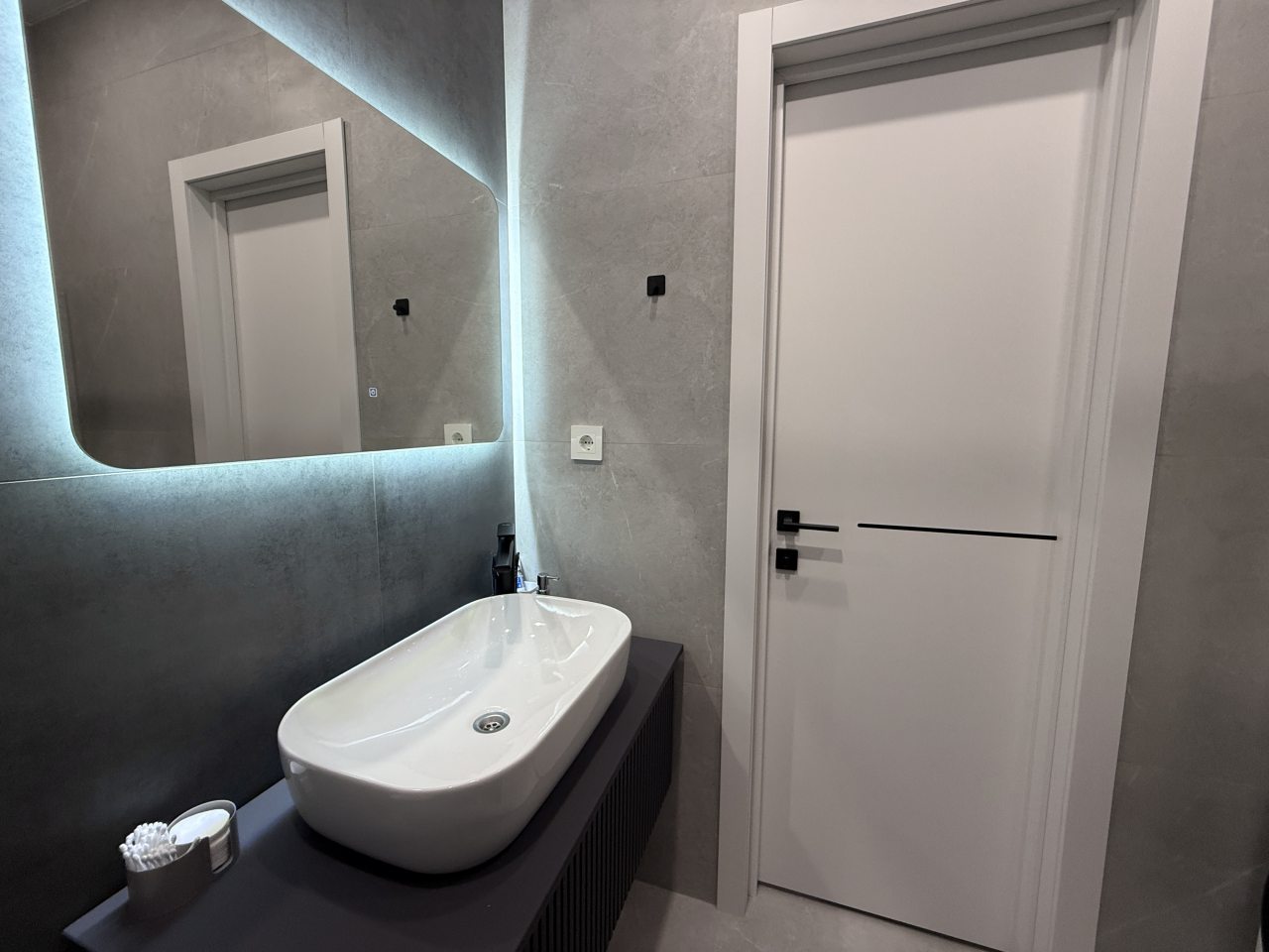 Для размещения представлены уютные апартаменты в современном стиле. Они оснащены: кроватью с удобным матрасом и набором свежего постельного белья, прикроватными тумбочками, вместительным шкафом, диваном, телевизором, кондиционером. В ванной комнате есть полотенца и средства гигиены.