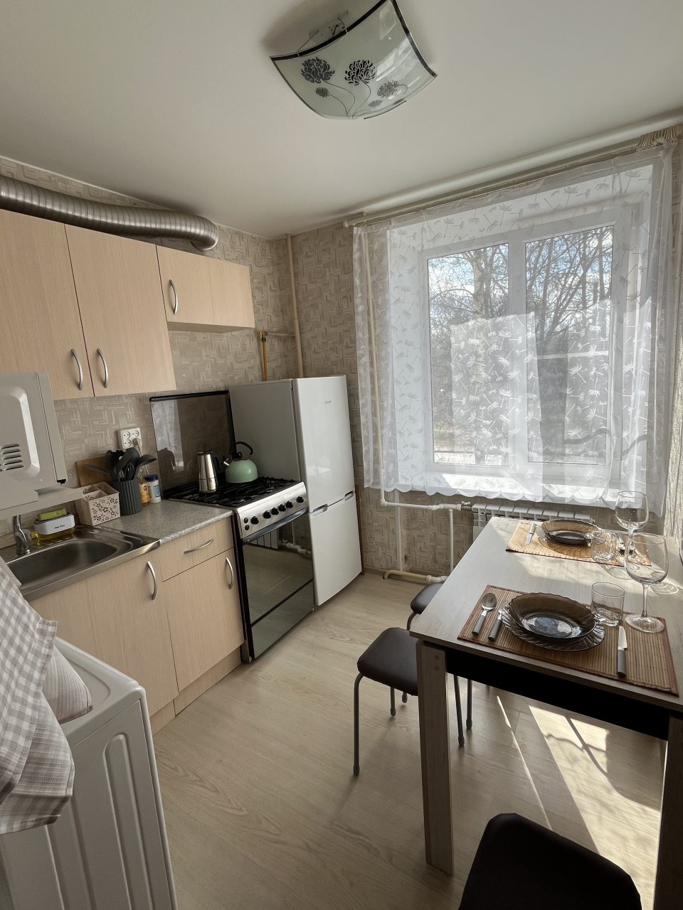 Уютная кухня отлично подойдет для организации любого приема пищи, благодаря наличию бытовой техники: чайник, газовая плита и духовка, холодильник, микроволновая печь. В шаговой доступности находится продуктовый магазин и пекарня.