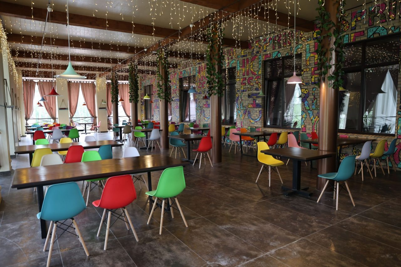 Из недостатков: наш корпус(домик) был ближе всего к дороге и с открытым окном очень слышно проезжающие машины, что мешает спать.