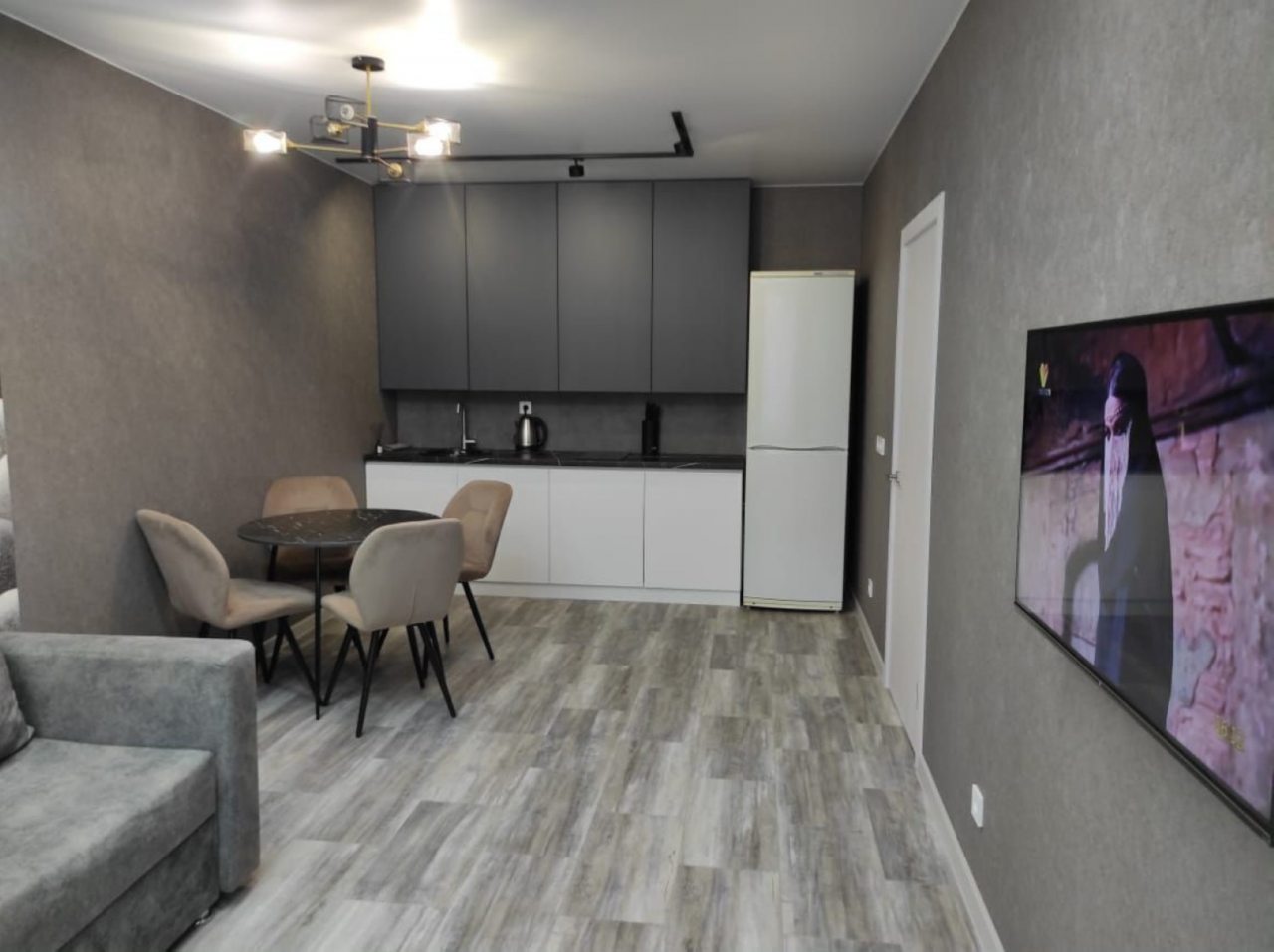 Проживали здесь с супругом, квартира нам очень понравилась. Стильная, дизайнерский ремонт, все продумано до мелочей, чтобы было комфортно. Кухонная зона просторная, есть необходимая техника и посуда. Спалось отлично, свет не мешал. шторы плотные. Добраться до центра несложно, поблизости есть остановки. В общем, рекомендуем!