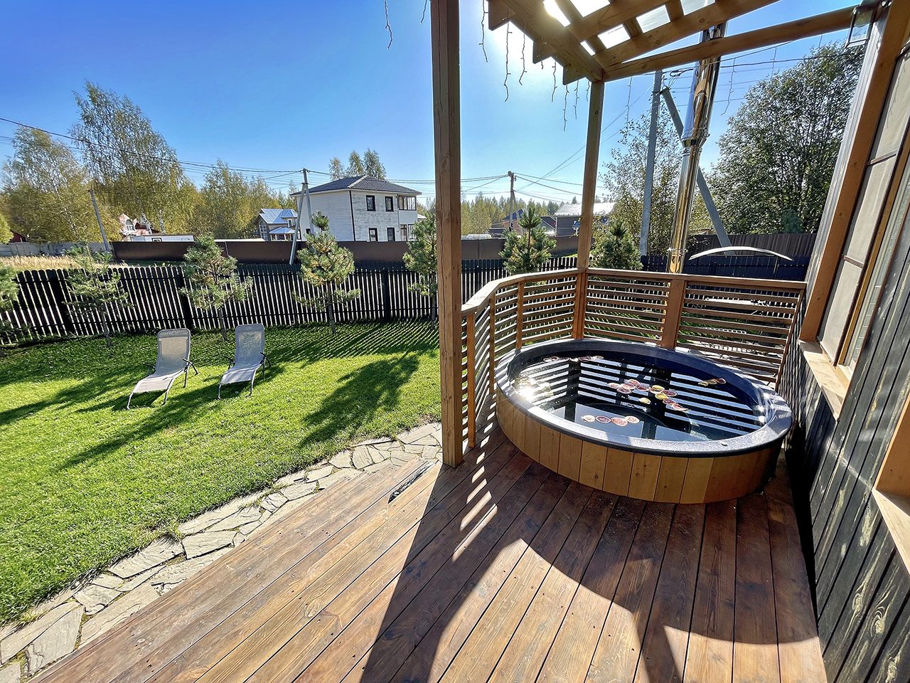 Удобный, чистый дом. Сауна внутри - супер. Отлично выспались. На кухне есть все необходимое. Возможность заказать купель. Дом теплый, ночью было холодно, включали обогреватели, было тепло. Большая удобная веранда со столом и стульями.