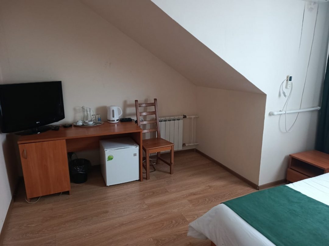 Большой двухместный номер с двумя большими двумя двухместными кроватями - очень хорошо спалось) в номере все необходимое - чайник, холодильник, ТВ. Санузел большой, с окном, горячая вода была всегда и хороший напор. В кафе на 1 этаже есть микроволновка, можно самостоятельно погреть себе еду. Больше всего понравилось, что размещение с собакой (без ограничения по весу, до 40кг) без дополнительной оплаты и залога, это очень порадовало. И прекрасное доброе отношение к нашей собаке - отдельное спасибо)