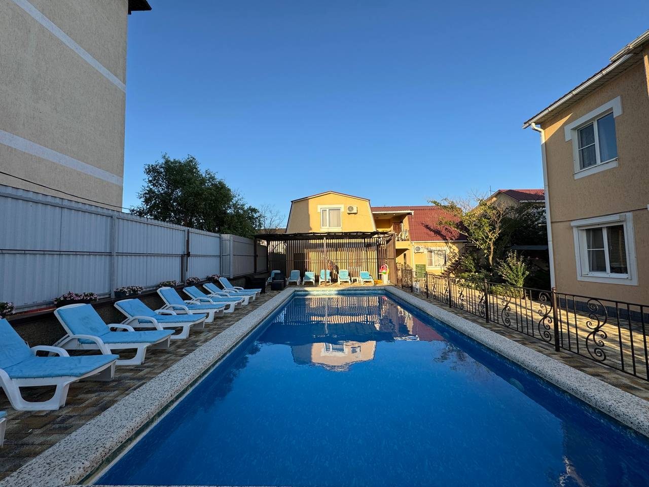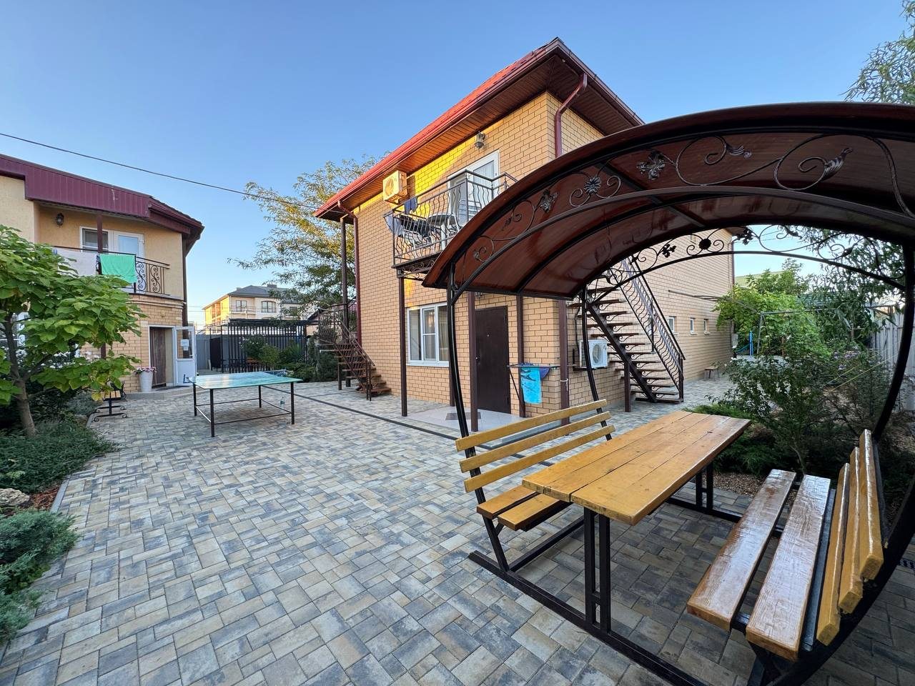 На Азовском были впервые. Так сложились обстоятельства, что приехали на недельку. Гостевой дом выбирала жена. Считаю, что весьма хороший выбор. Море совсем недалеко, не больше 300 метров. Территория дома небольшая, но приятная. Есть лавочки, беседки. Номер стандартный. Все хорошо, вообще-то здесь.