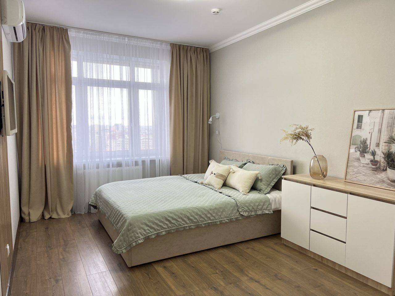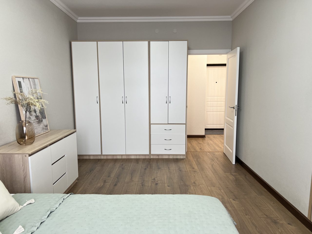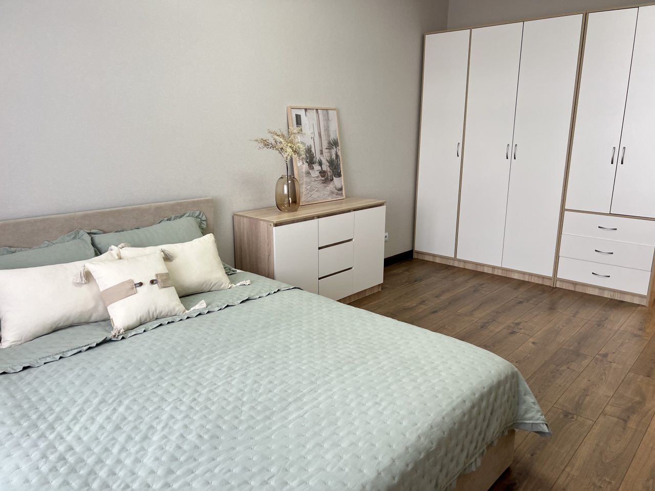 Квартира с ремонтом в современном стиле укомплектована всей необходимой мебелью и техникой для качественного проживания и отдыха, например: удобной кроватью со свежим постельным бельем, лампой для вечернего чтения, комодом, кондиционером и гладильными принадлежностями. Доступна точка высокоскоростного интернета и телевизор.
