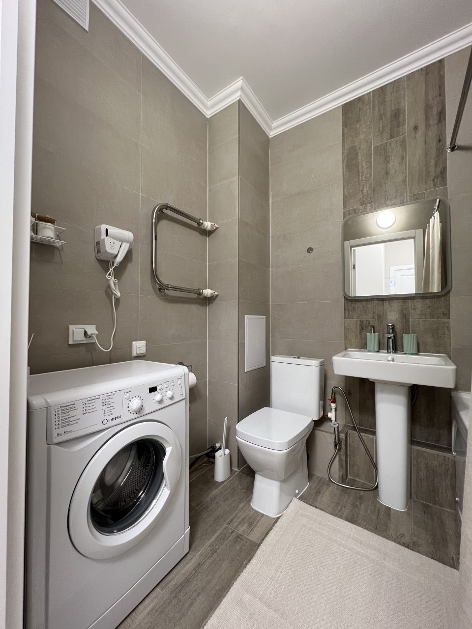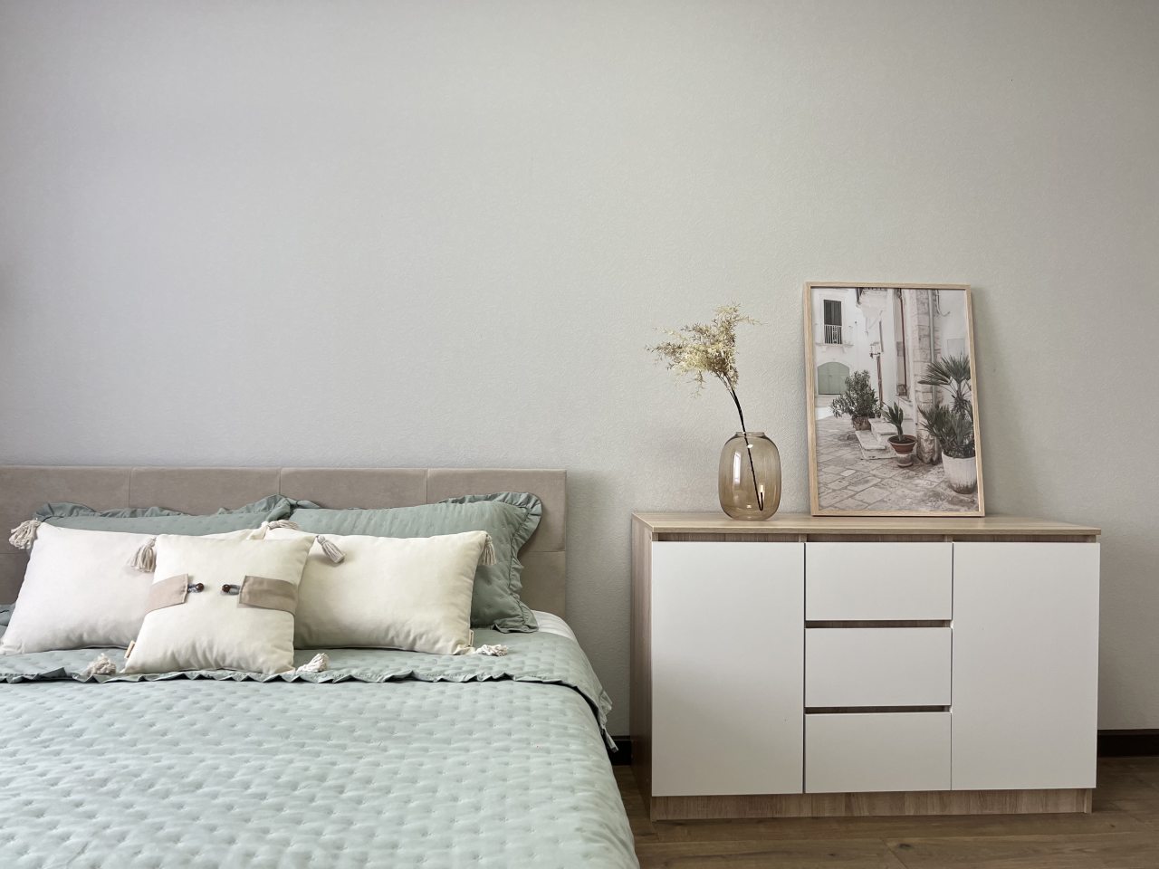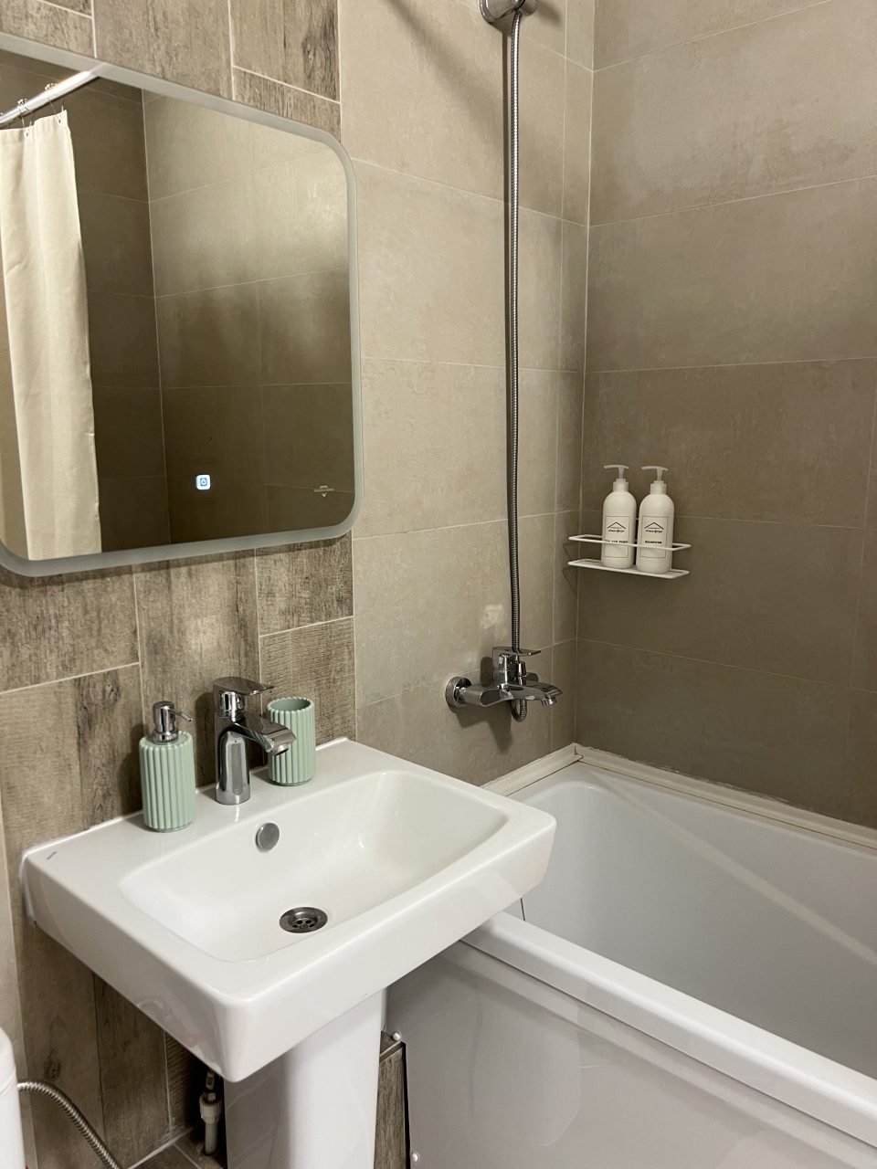 Квартира с ремонтом в современном стиле укомплектована всей необходимой мебелью и техникой для качественного проживания и отдыха, например: удобной кроватью со свежим постельным бельем, лампой для вечернего чтения, комодом, кондиционером и гладильными принадлежностями. Доступна точка высокоскоростного интернета и телевизор.