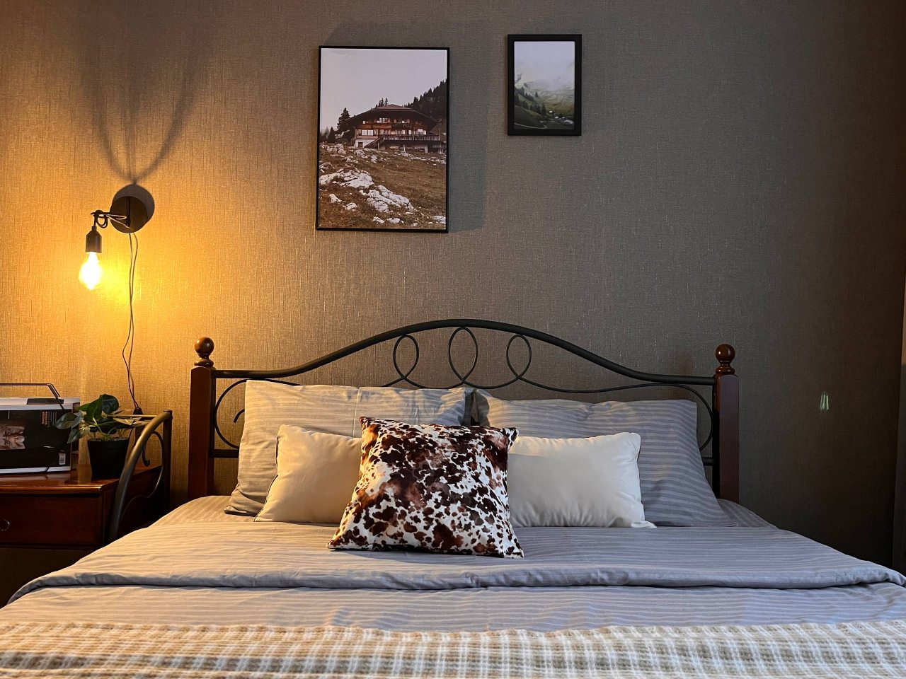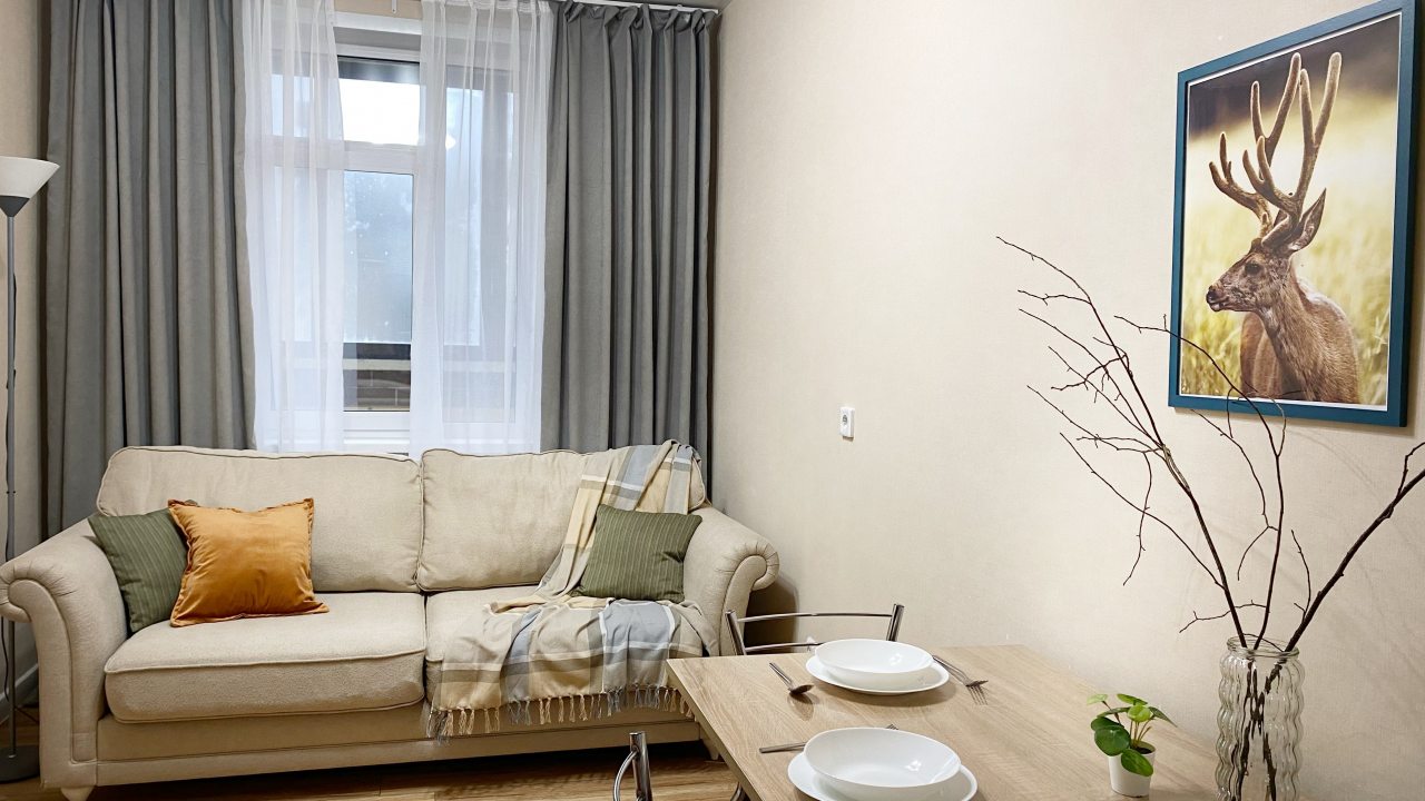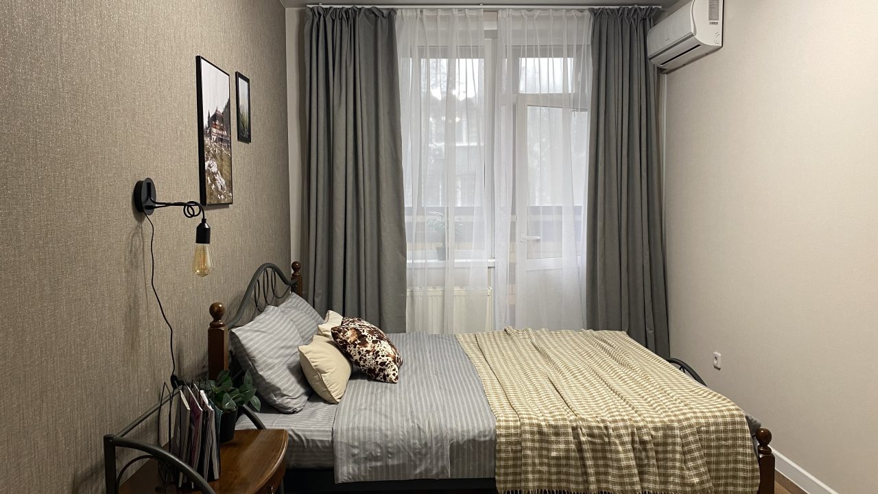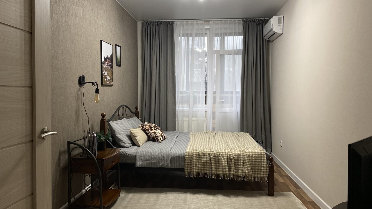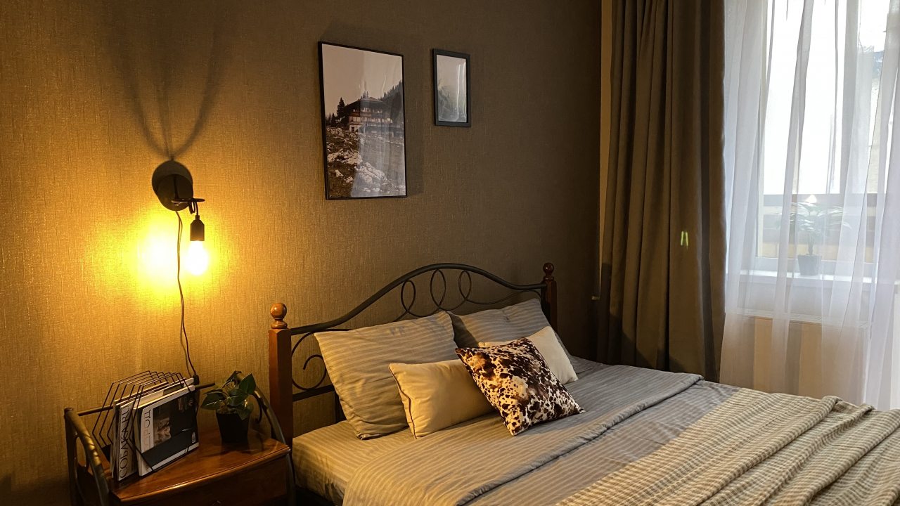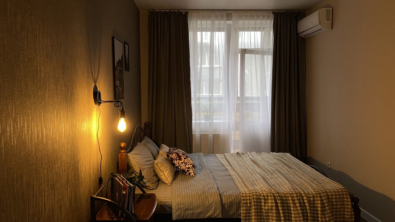 Для отдыха и комфортного проживания имеются: телевизор, комод, двуспальная кровать с удобным матрасом, плотные шторы, кондиционер, мягкий диван, различные сценарии освещения. В ванной комнате предусмотрена стиральная машина и средства для личной гигиены.