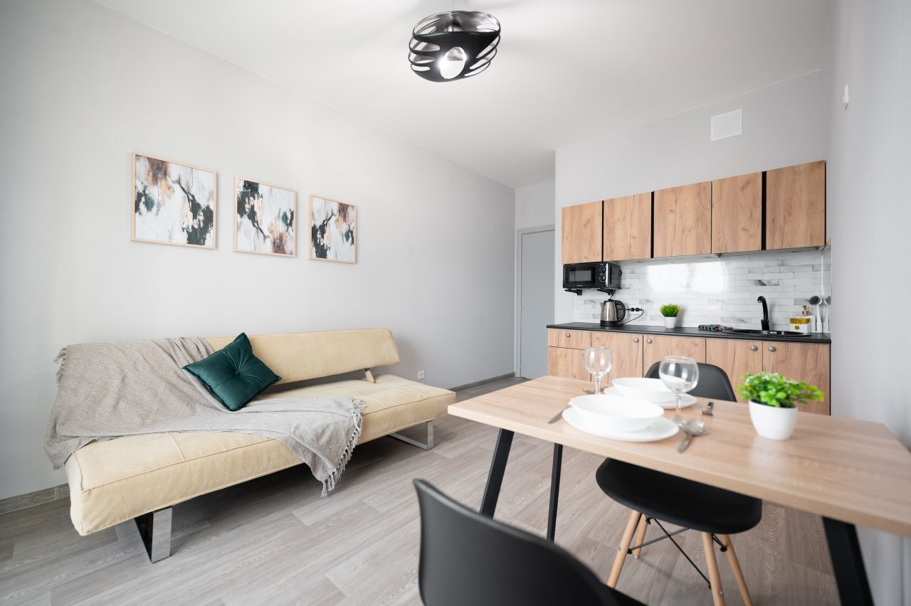 Чтобы вы всегда могли устроить перекус или чаепитие, кухня укомплектована СВЧ, чайником, обеденной зоной.