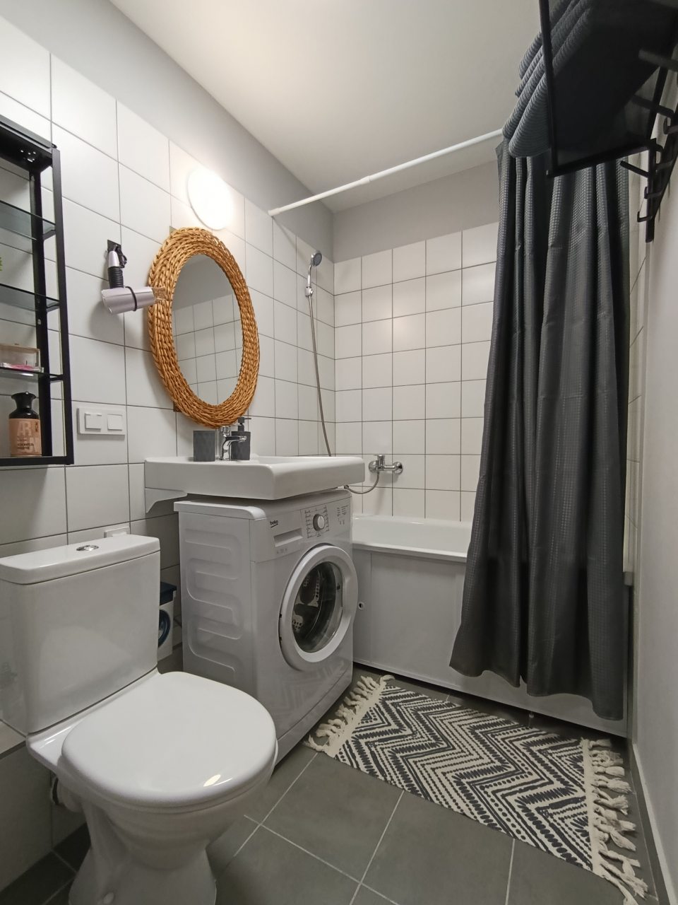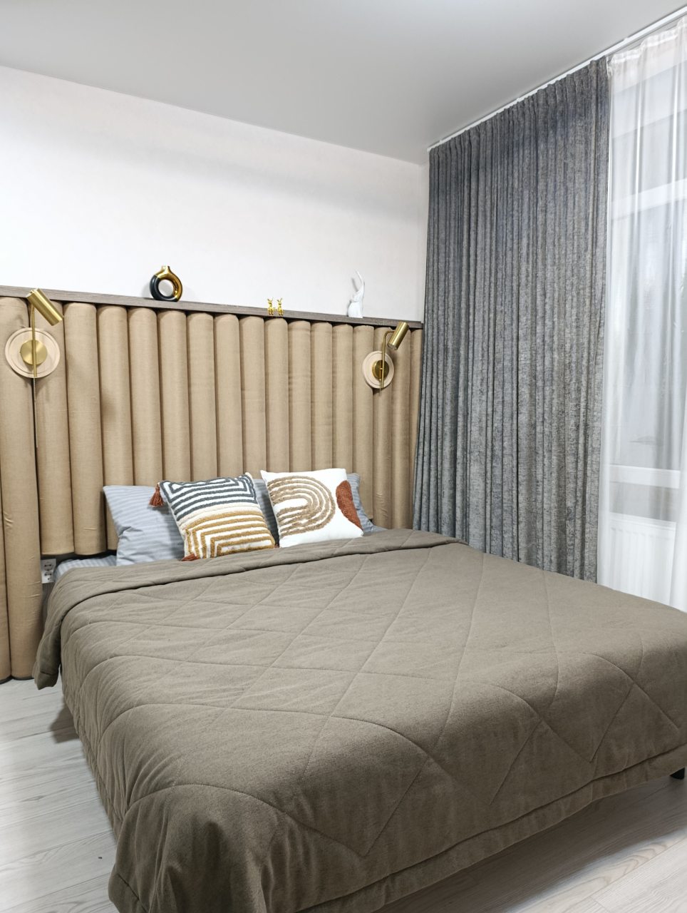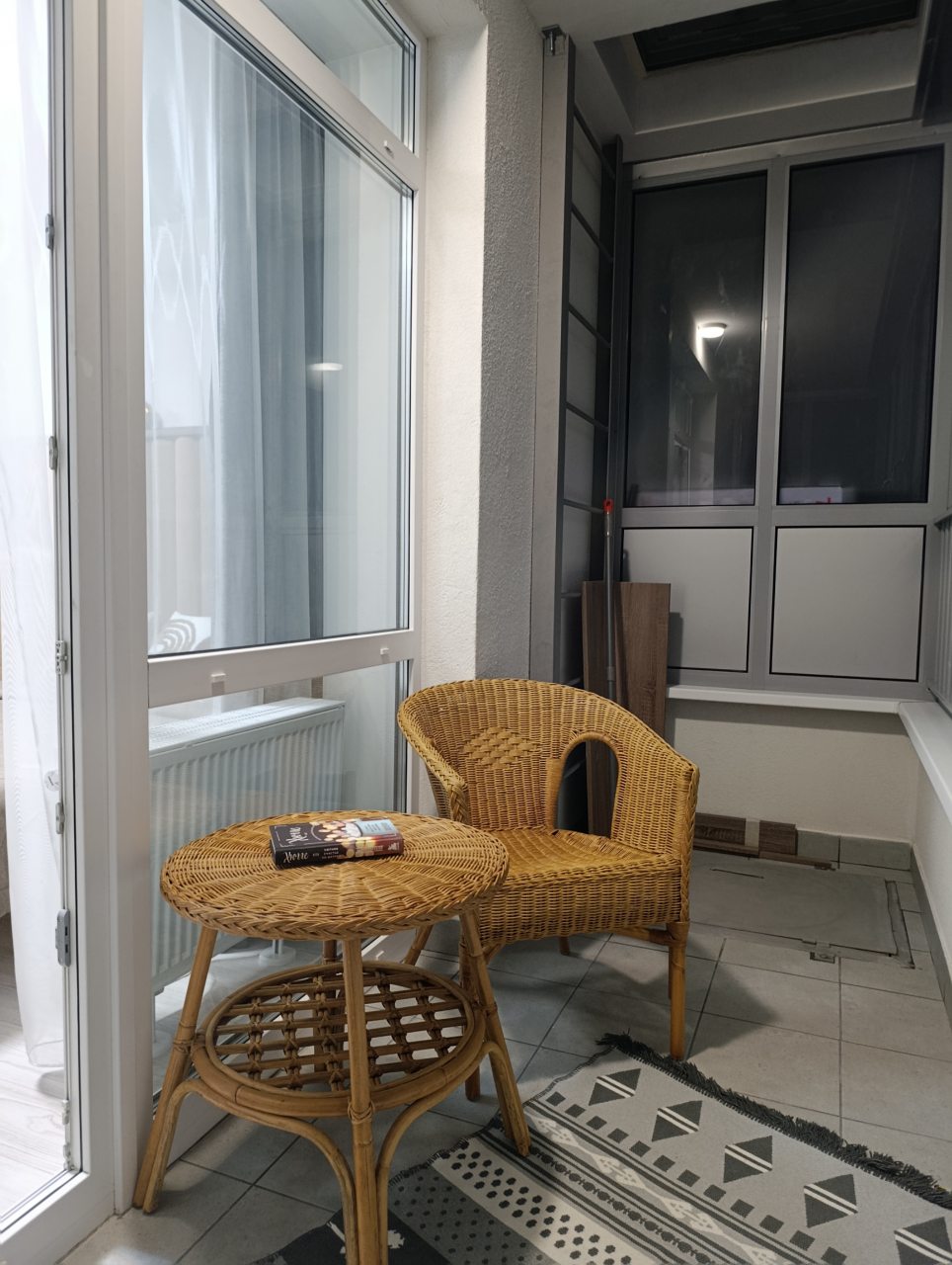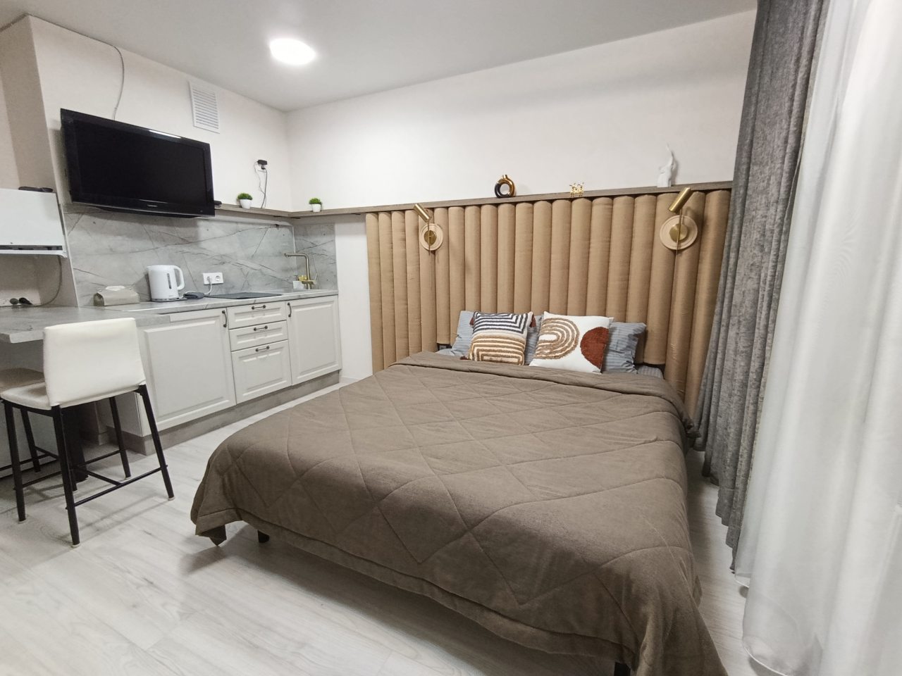 Внутри вас ожидает большая и удобная кровать, прикроватные бра, телевизор, затемненные шторы, плетенный мини-диван, ванная комната со стиральной машиной и стандартным набором сантехники.