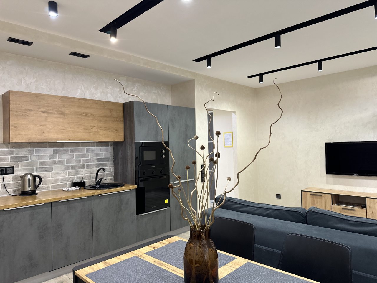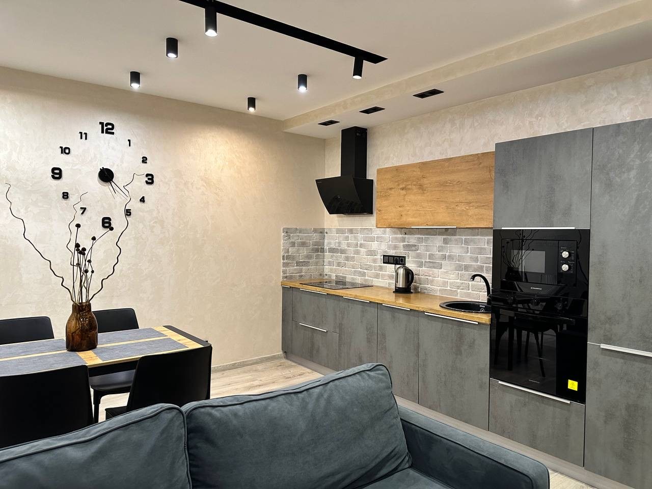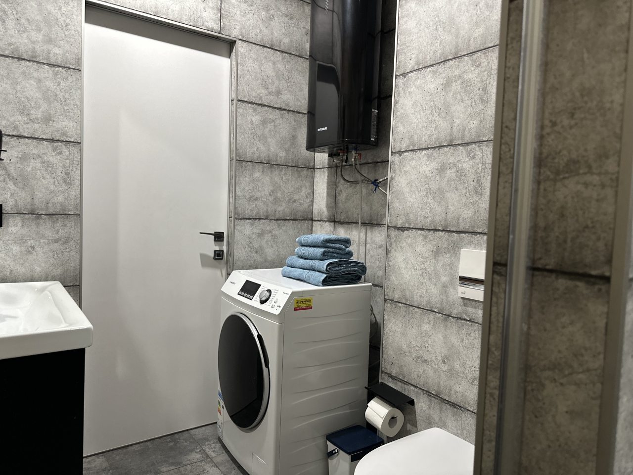 Внутри вас ожидает стильный дизайн, большая и удобная кровать, мягкий диван напротив жк-телевизора, различные сценарии освещения, ванная комната со стиральной машиной, необходимой сантехникой и комплектом полотенец.