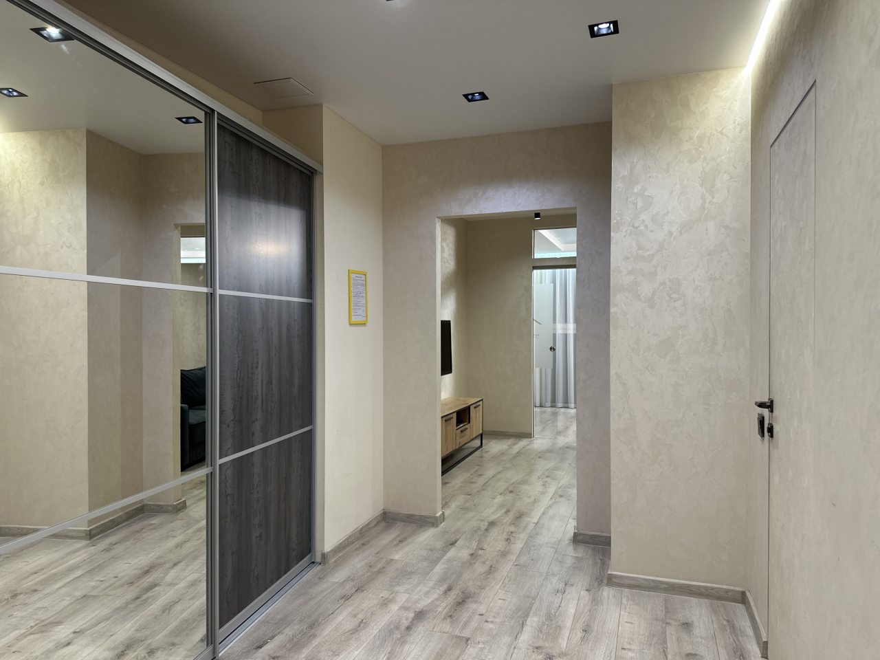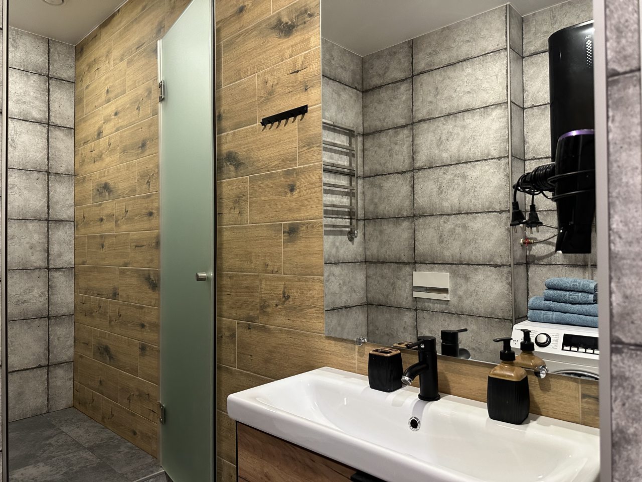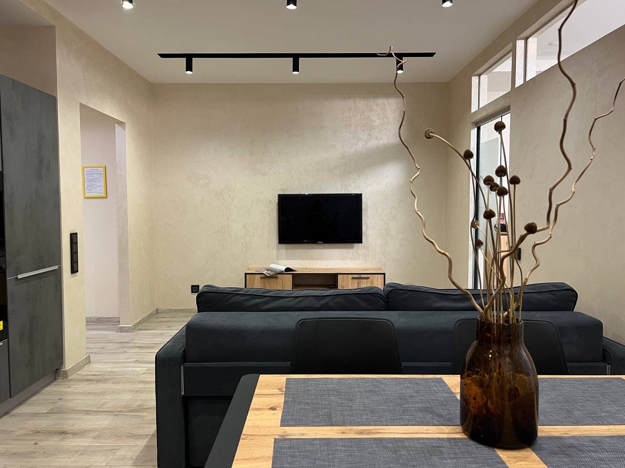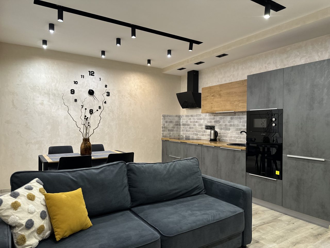 Внутри вас ожидает стильный дизайн, большая и удобная кровать, мягкий диван напротив жк-телевизора, различные сценарии освещения, ванная комната со стиральной машиной, необходимой сантехникой и комплектом полотенец.