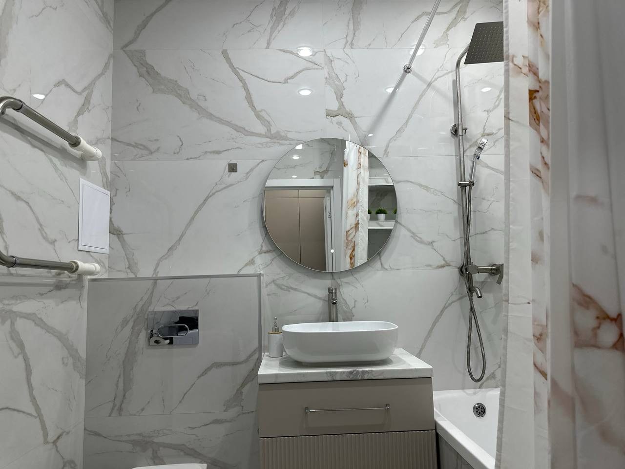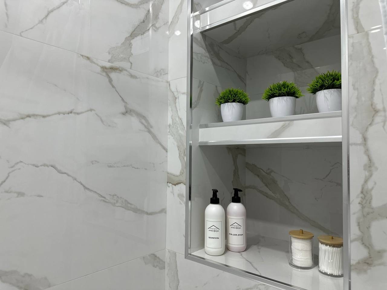 Интерьер апартаментов оформлен в современном стиле, а в оснащение входит удобная мебель и техника: кровать, мягкий диван, телевизор, кондиционер. В ванной комнате есть средства гигиены, полотенца, установлена необходимая сантехника и стиральная машинка.