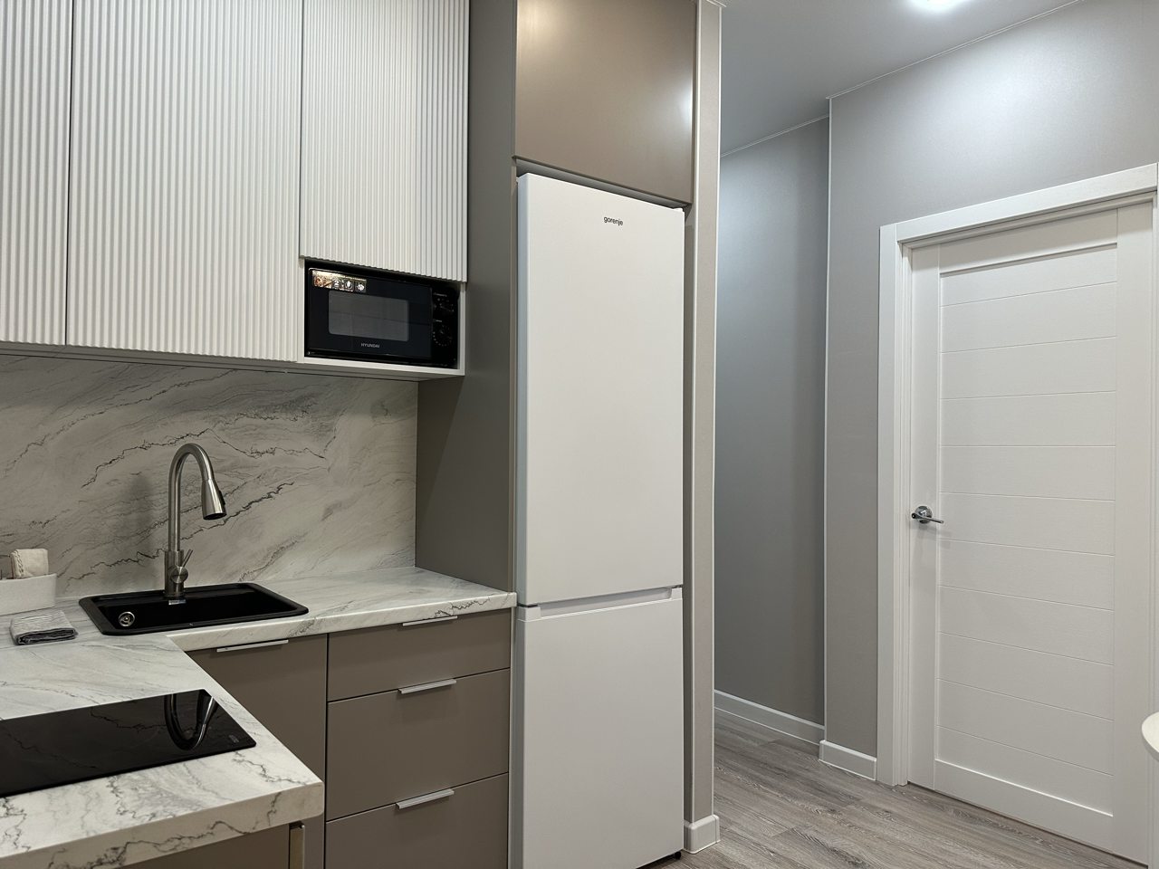 Кухня отлично подойдет для самостоятельной организации питания, благодаря наличию техники и посуды: варочная панель, электрический чайник, холодильник, микроволновая печь. Поблизости работает кофейня и пиццерия, где можно выпить кофе или перекусить.