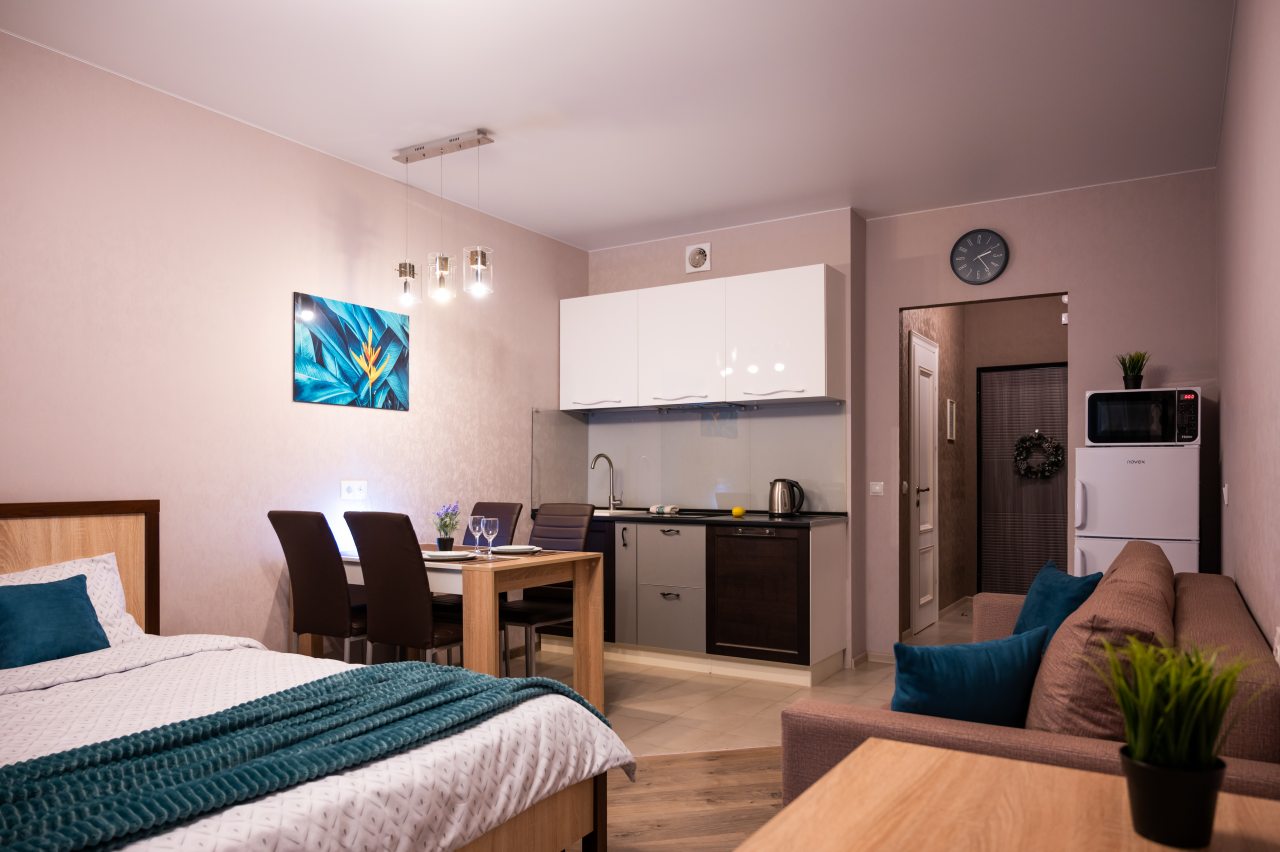 Апартаменты оформлены в современном стиле интерьера и отлично подойдут для размещения семейной пары, индивидуального путешественника или семьи с детьми. Комнаты укомплектованы качественной мебелью и техникой для организации досуга: двуспальная кровать, диван, телевизор, кондиционер, зона для хранения личных вещей. В санузле представлены средства гигиены, полотенца и установлена стиральная машинка.