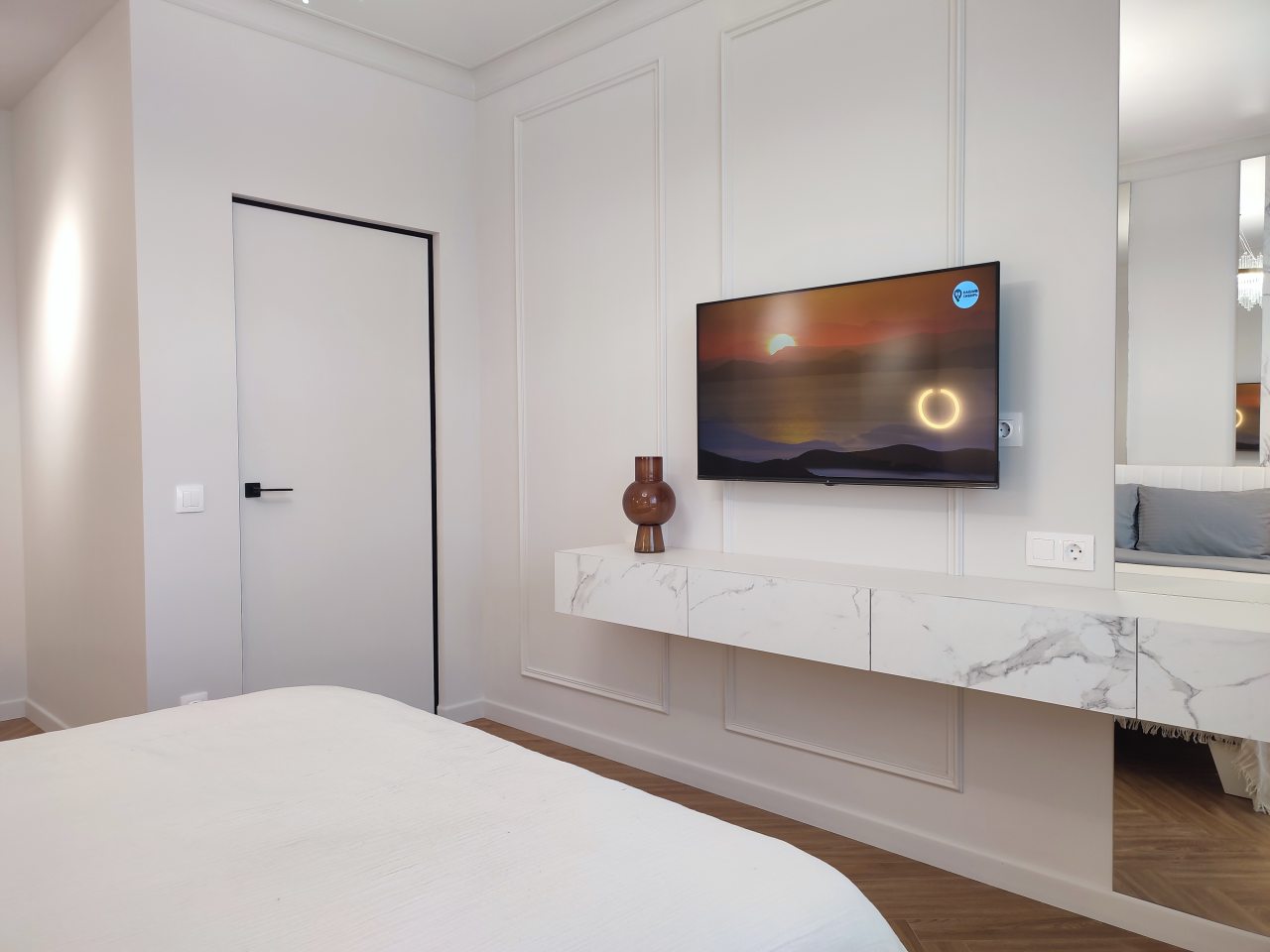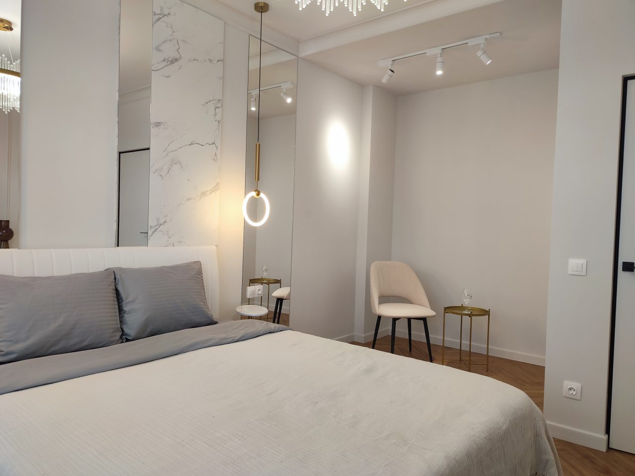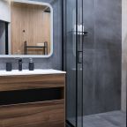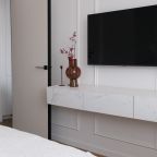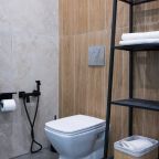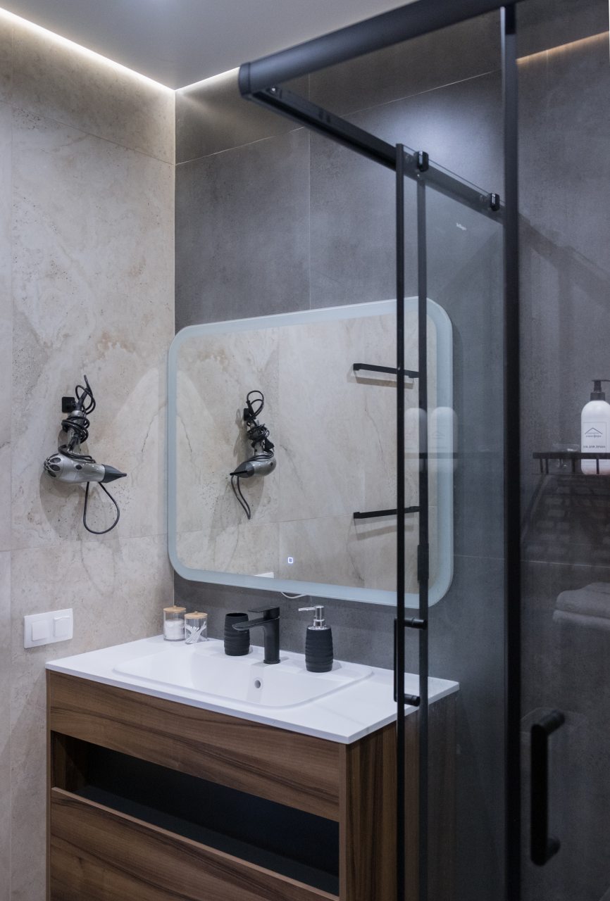 Внутри продумано всё для комфортабельного отдыха и проживания, включая двуспальную кровать с качественным матрасом, кондиционер, мягкий диван, различные сценарии освещения, ЖК-телевизор, лоджию с панорамным остеклением, стиральную машину, а также санузел с душевой, полотенцами и гигиеническими средствами.
