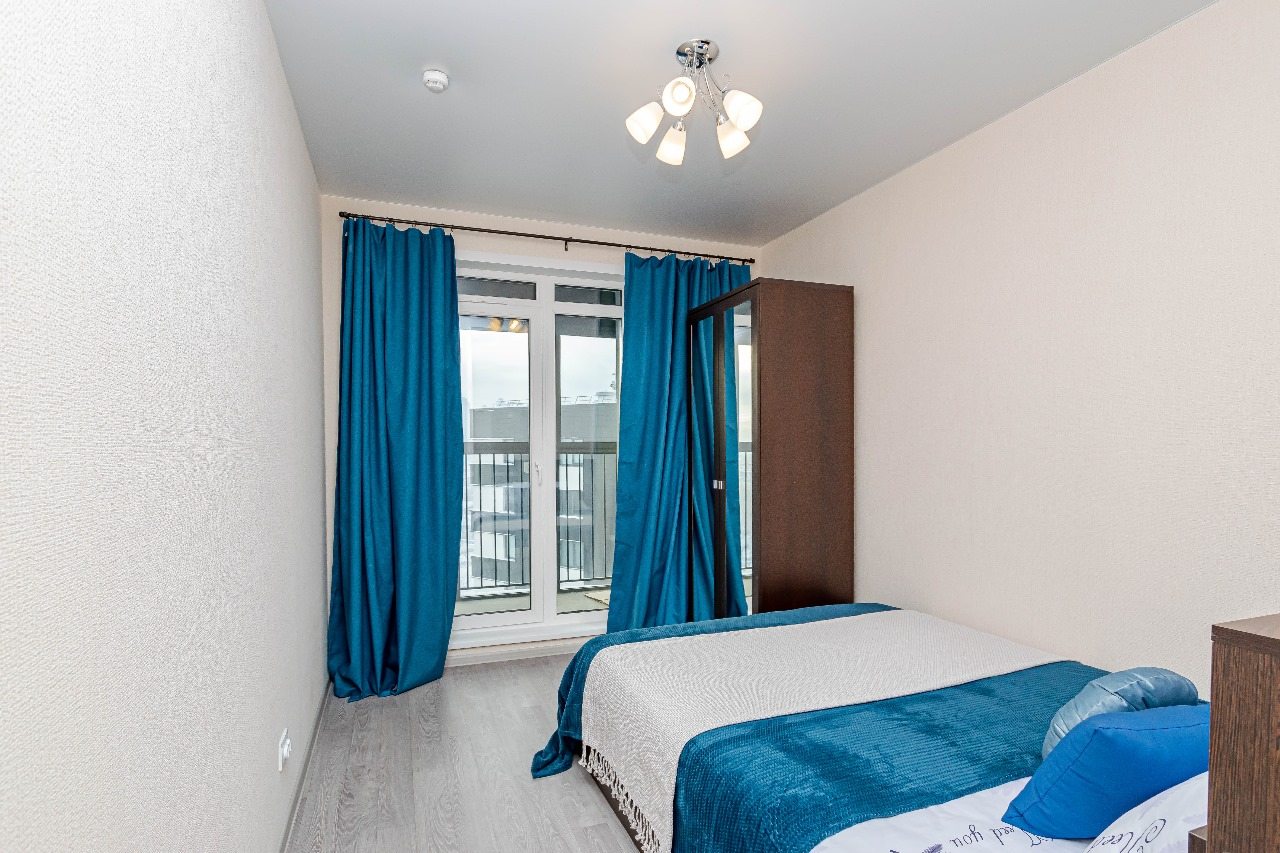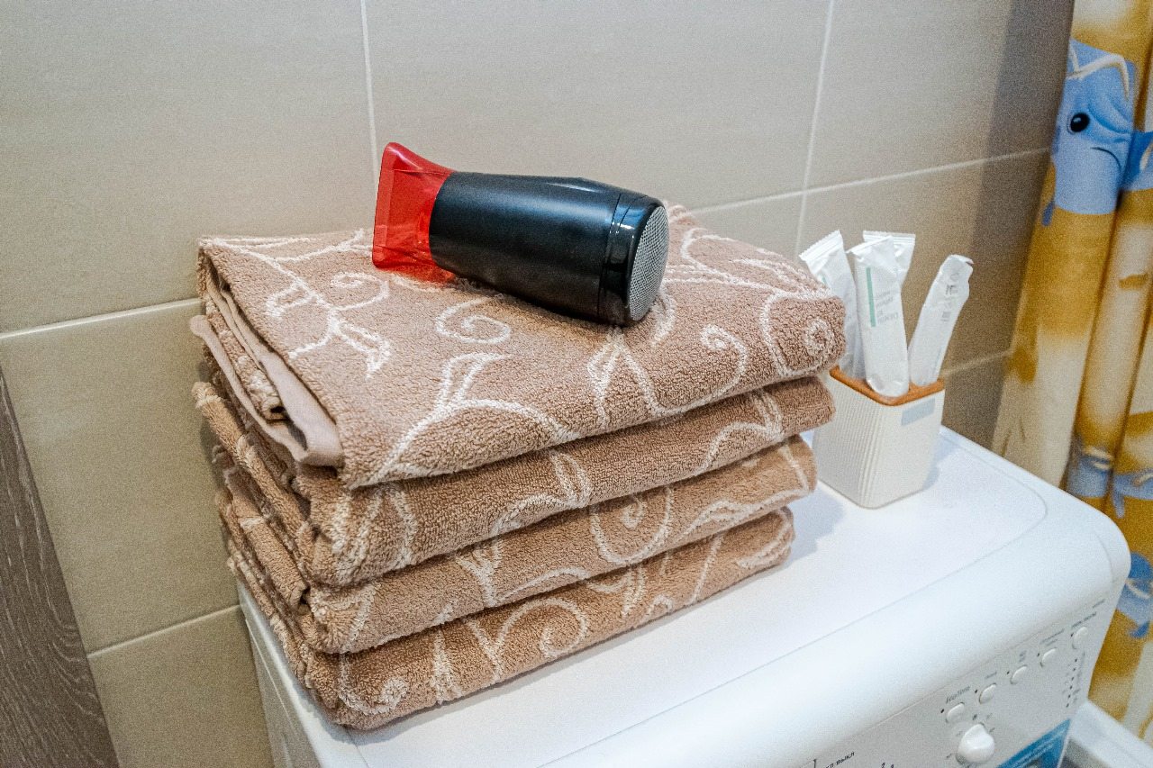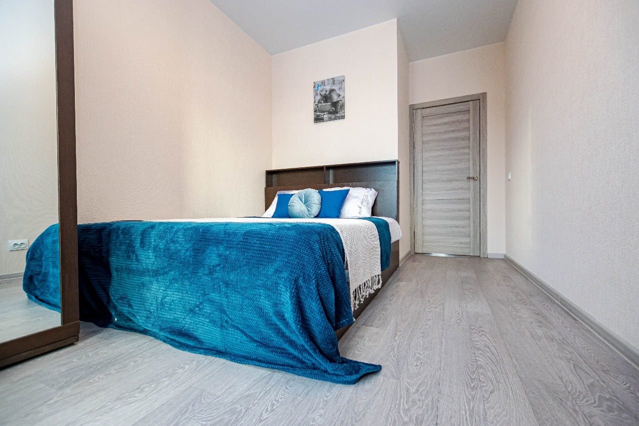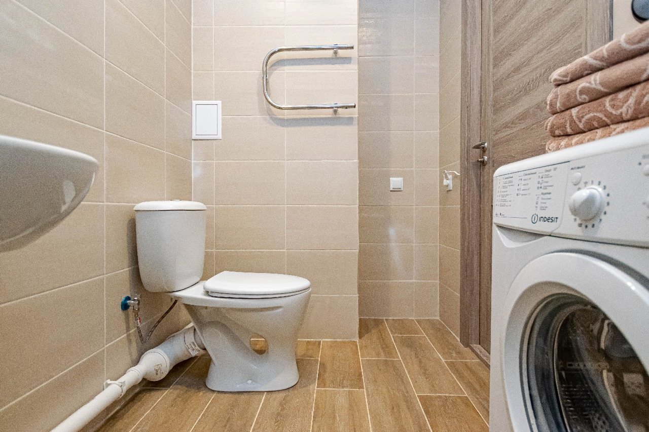 Внутри — все удобства, в том числе мягкая двуспальная кровать, удобный диван с телевизором, балкон с панорамным остеклением, шкаф, плотные шторы, а также стиральная машина, фен и полотенца в ванной комнате.