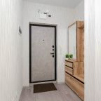 Кухонная зона укомплектована варочной панелью с вытяжкой, духовым шкафом, СВЧ, обеденным столом со стульями.