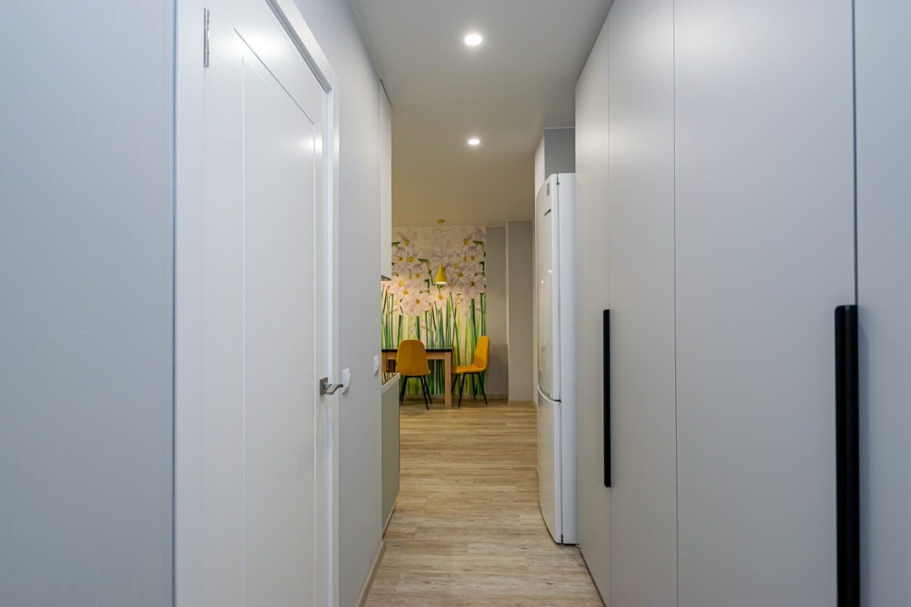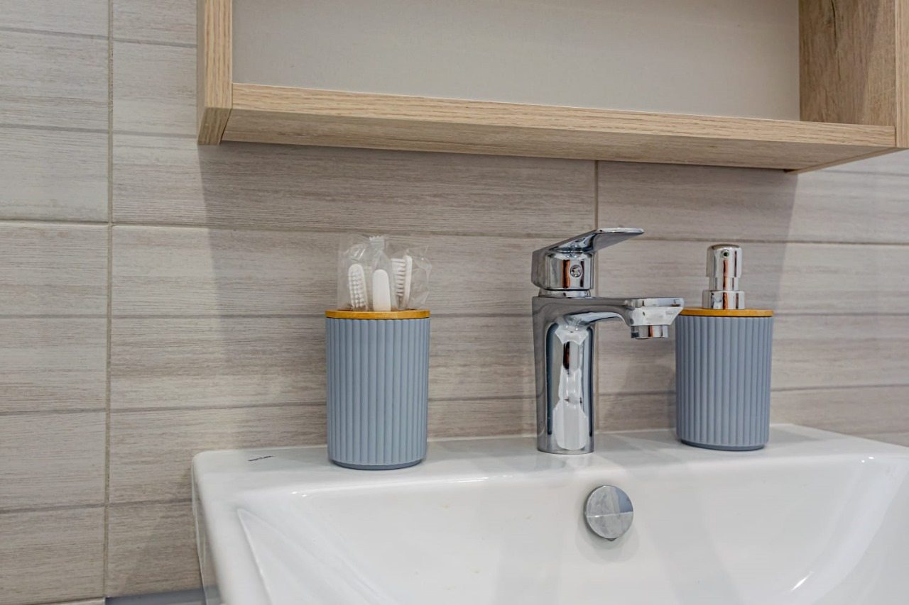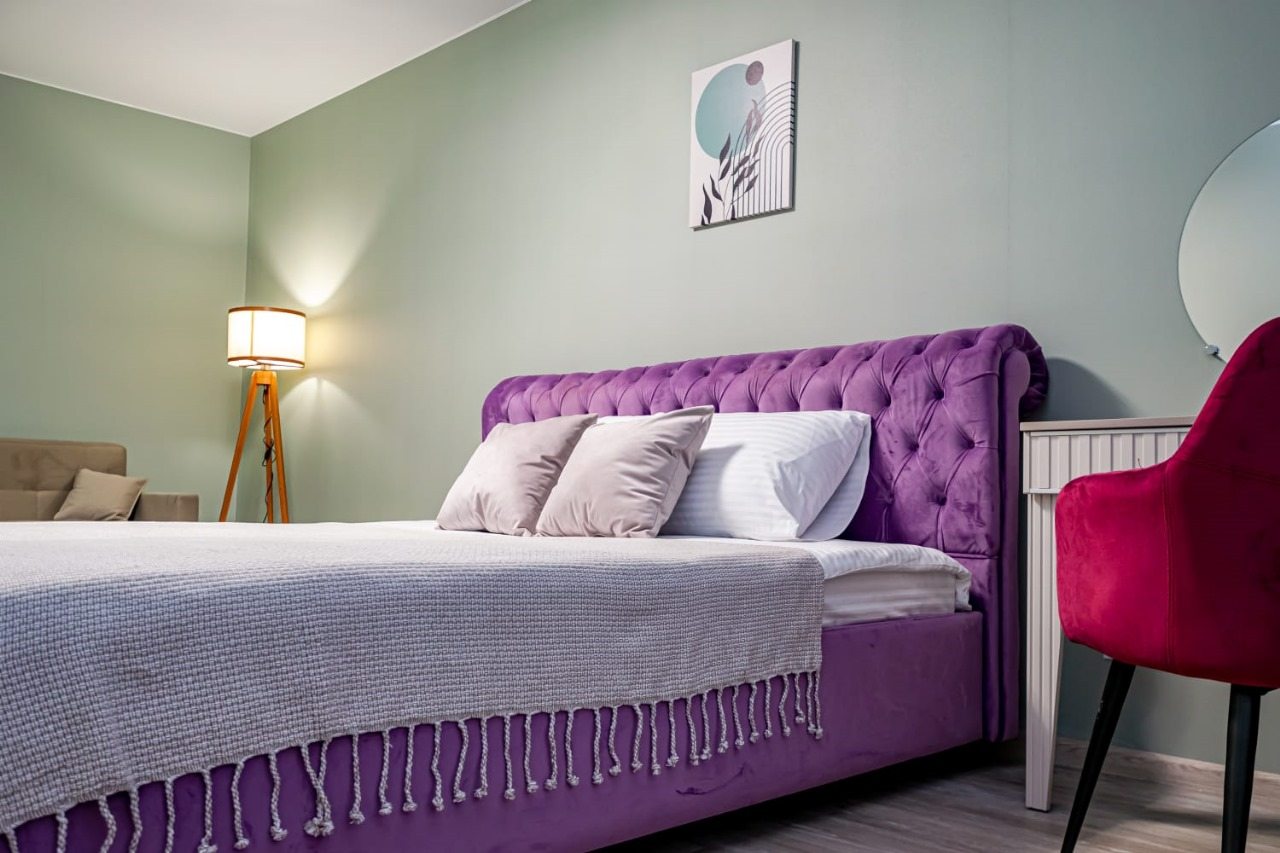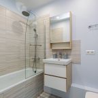Уютная квартира оснащена двуспальной кроватью, диваном, шкафом, телевизором с кабельным телевидением, wi-fi, лоджией, кухонной зоной и собственной ванной комнатой. Санузел укомплектован современной сантехникой, феном, стиральной машиной, гигиеническими средствами.