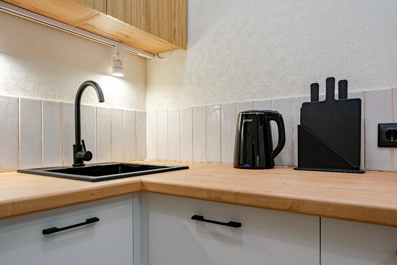 Для того чтобы вы в любой момент могли порадовать себя домашними блюдами и напитками, имеется варочная панель, СВЧ-печь, чайник, холодильник.