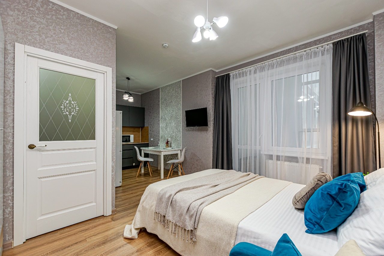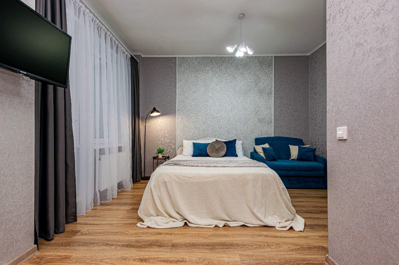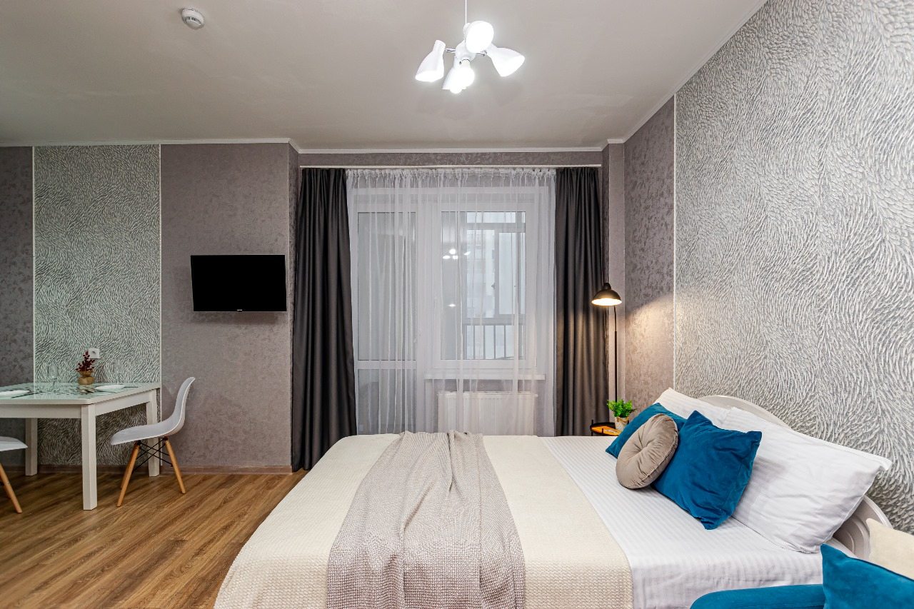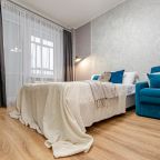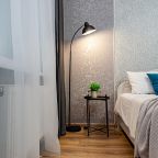 Стильные апартаменты оснащены удобной двуспальной кроватью, диваном, телевизором, шкафом, вешалками для верхней одежды, балконом с уличной мебелью и др. Доступна точка wi-fi. Ванная комната оборудована современной сантехникой, стиральной машиной, феном и средствами личной гигиены.