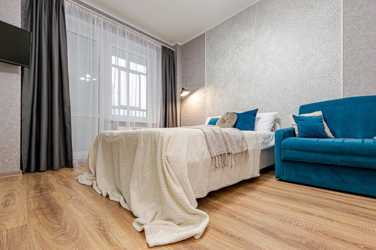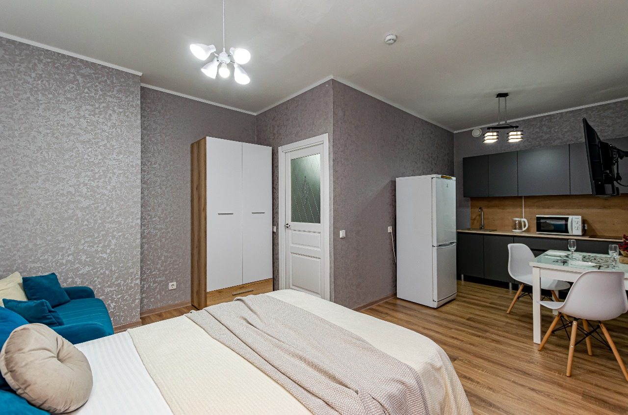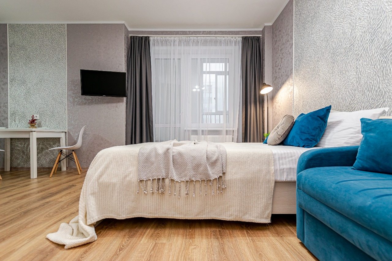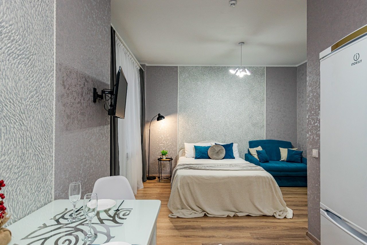 Стильные апартаменты оснащены удобной двуспальной кроватью, диваном, телевизором, шкафом, вешалками для верхней одежды, балконом с уличной мебелью и др. Доступна точка wi-fi. Ванная комната оборудована современной сантехникой, стиральной машиной, феном и средствами личной гигиены.