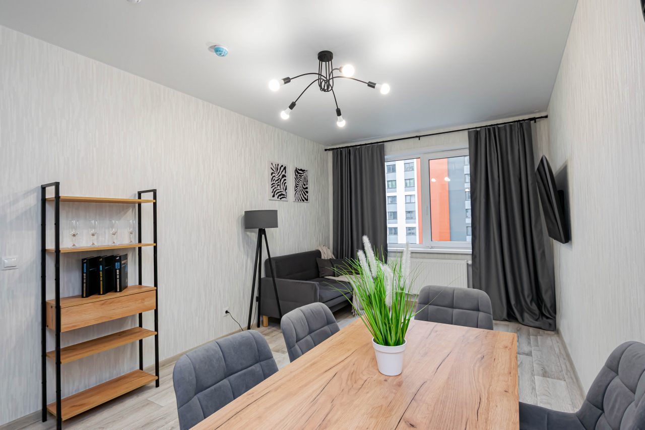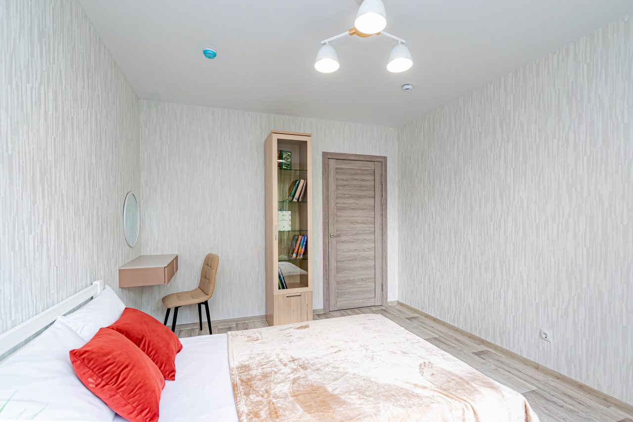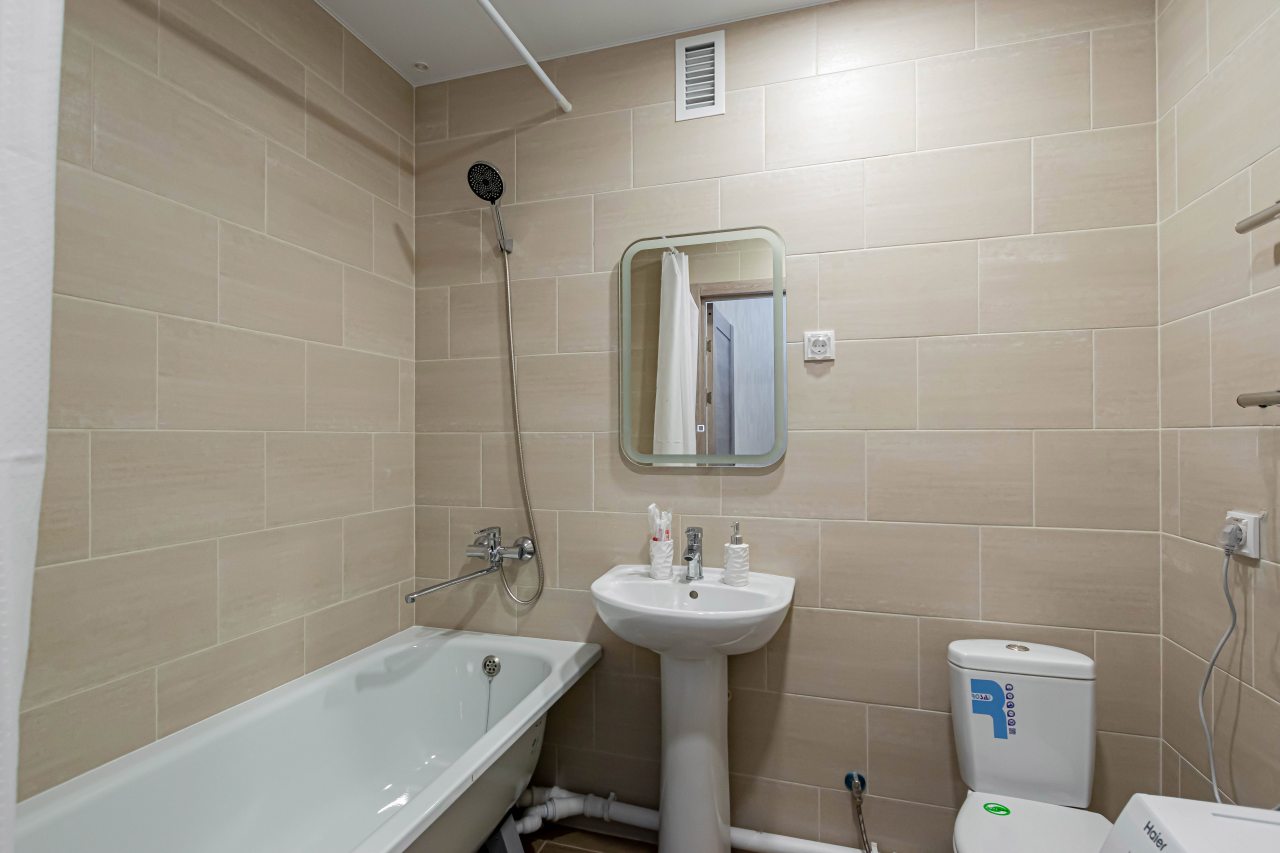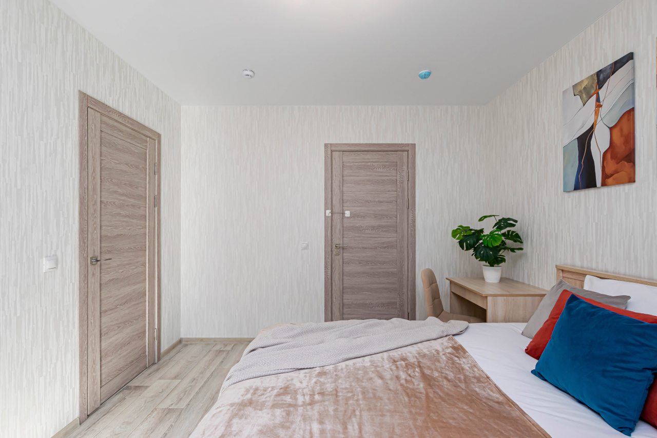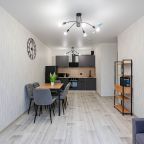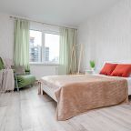 Трёхкомнатная квартира оснащена такими удобствами, как: современной техникой, комфортабельной мебелью, удобными кроватями, ванной комнатой, санузлом, гигиеническими принадлежностями. Есть доступ к сети Wi-Fi.