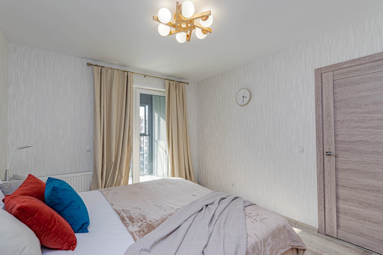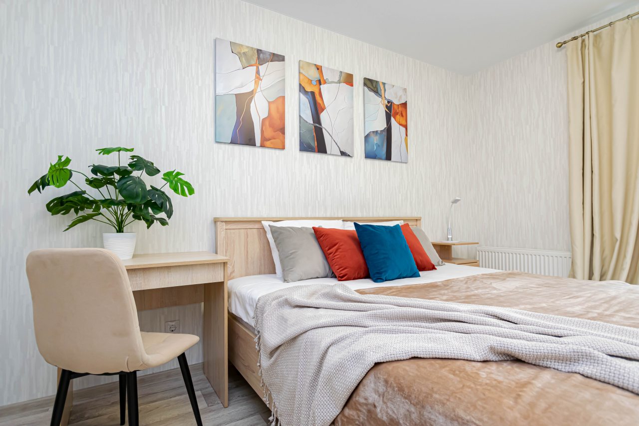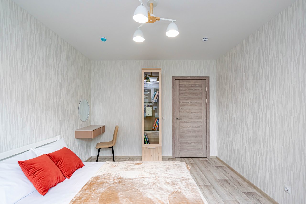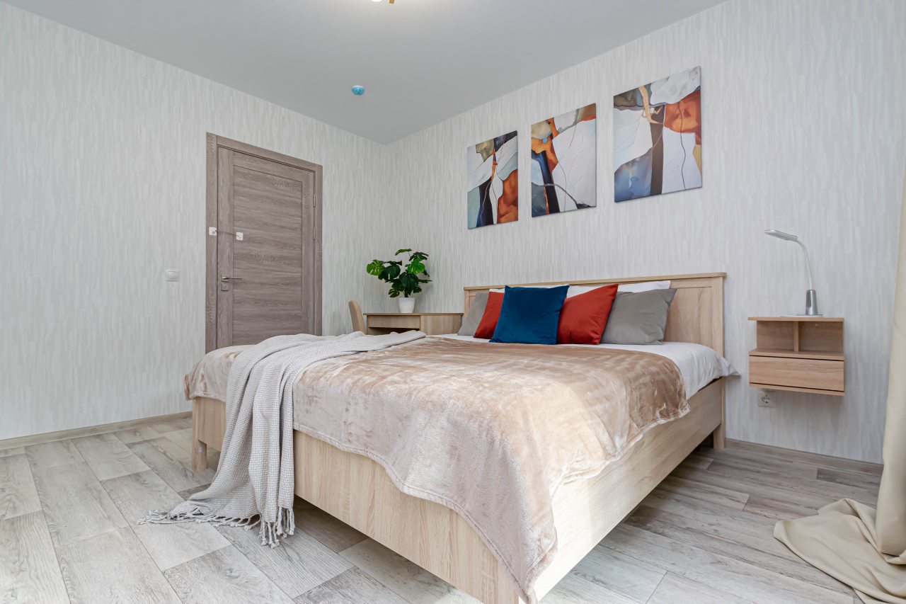 Трёхкомнатная квартира оснащена такими удобствами, как: современной техникой, комфортабельной мебелью, удобными кроватями, ванной комнатой, санузлом, гигиеническими принадлежностями. Есть доступ к сети Wi-Fi.