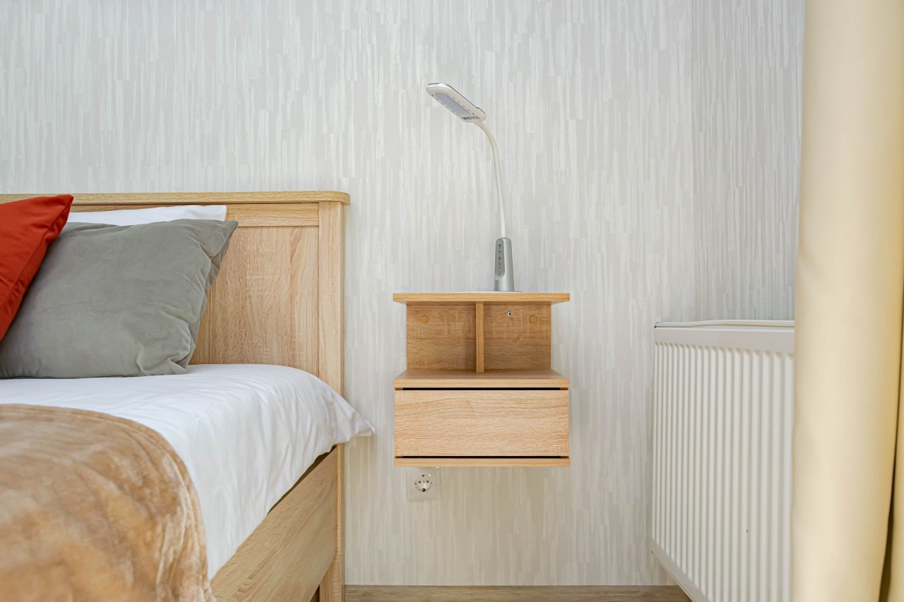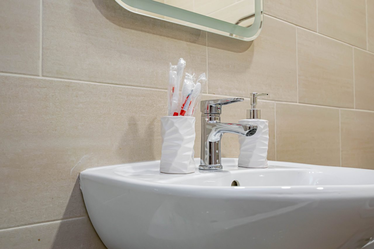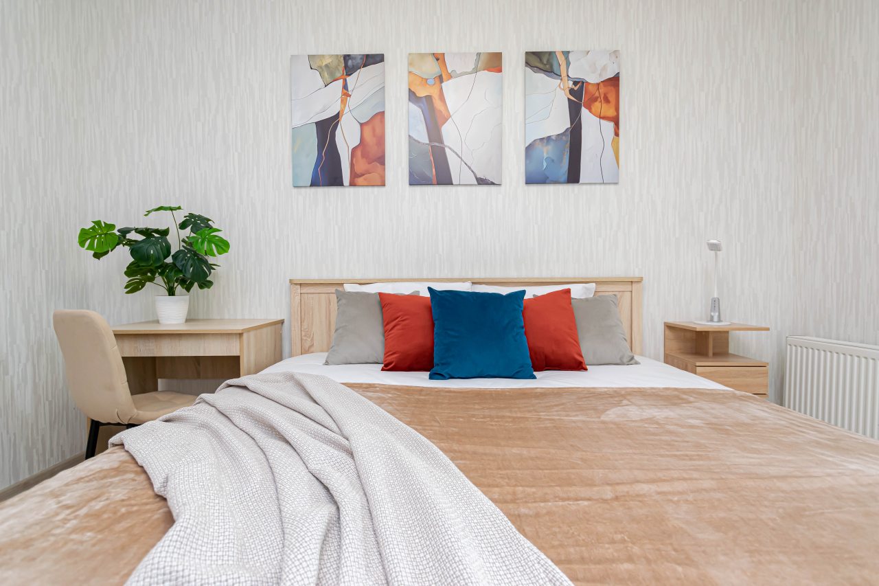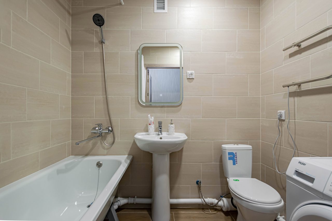 Трёхкомнатная квартира оснащена такими удобствами, как: современной техникой, комфортабельной мебелью, удобными кроватями, ванной комнатой, санузлом, гигиеническими принадлежностями. Есть доступ к сети Wi-Fi.