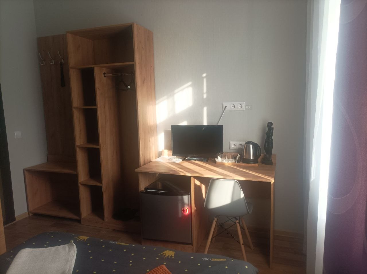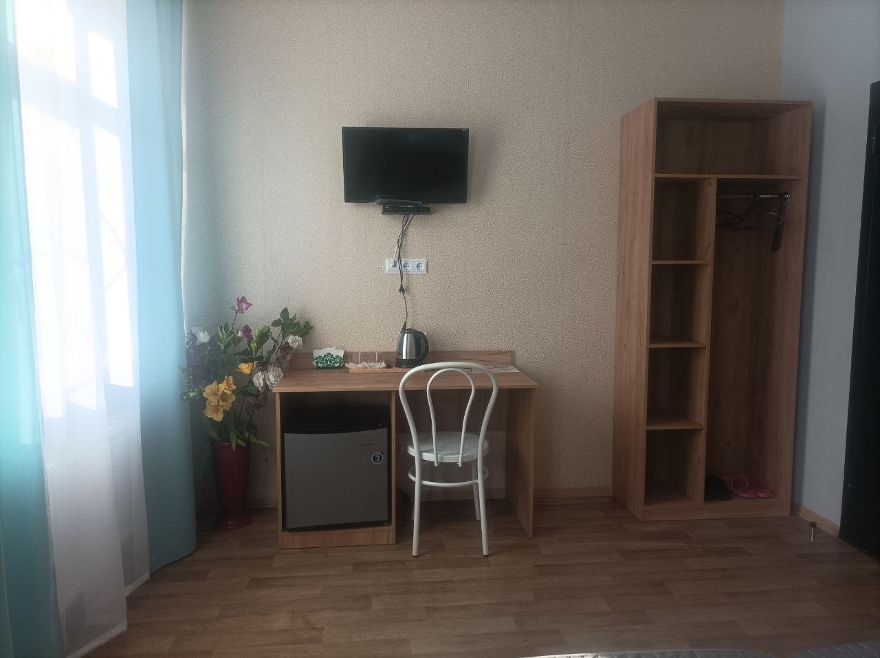 К размещению отдыхающих подготовлены двухместные номера. Они выполнены в современном стиле интерьера и оснащены удобной мебелью и необходимой техникой: спальные места с комплектом свежего постельного белья, шкаф для личных вещей, телевизор, письменный стол. В санузле установлена ванна.