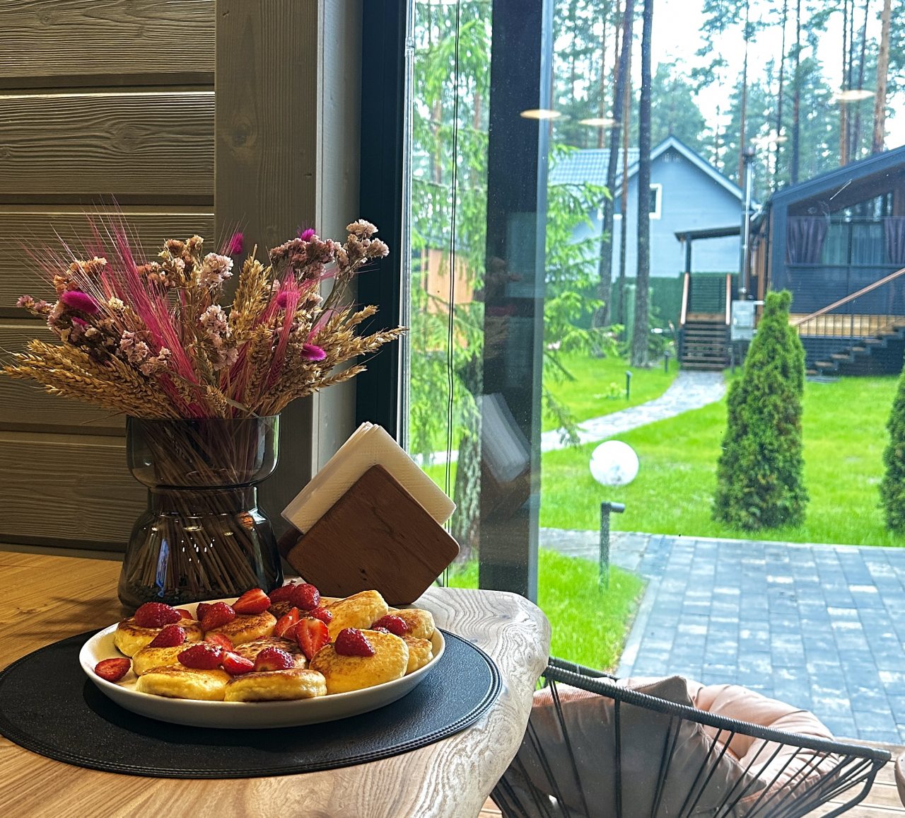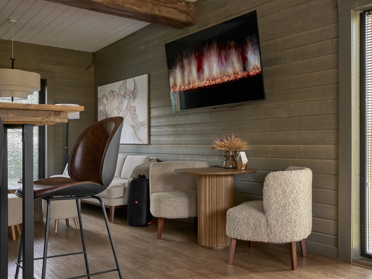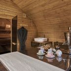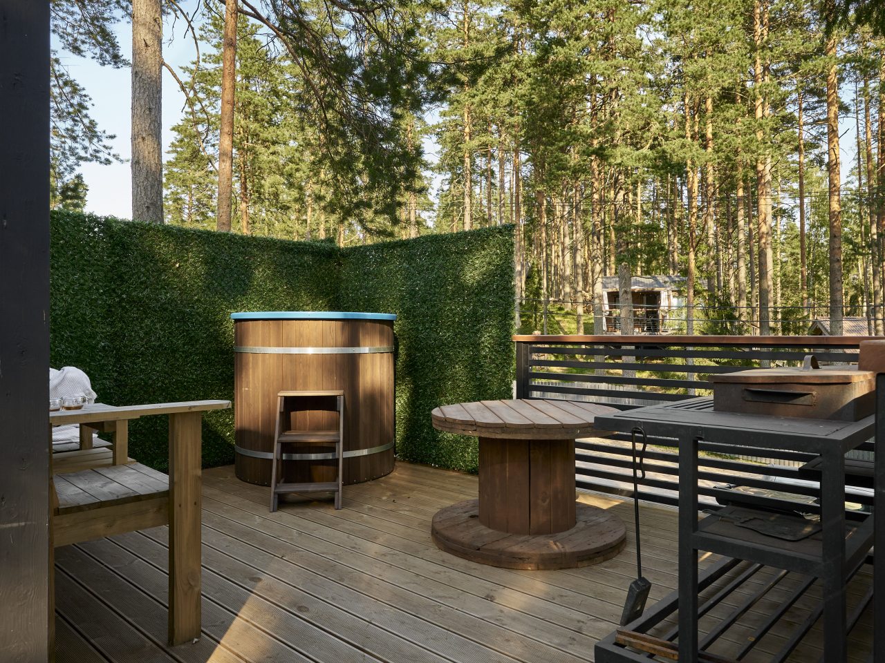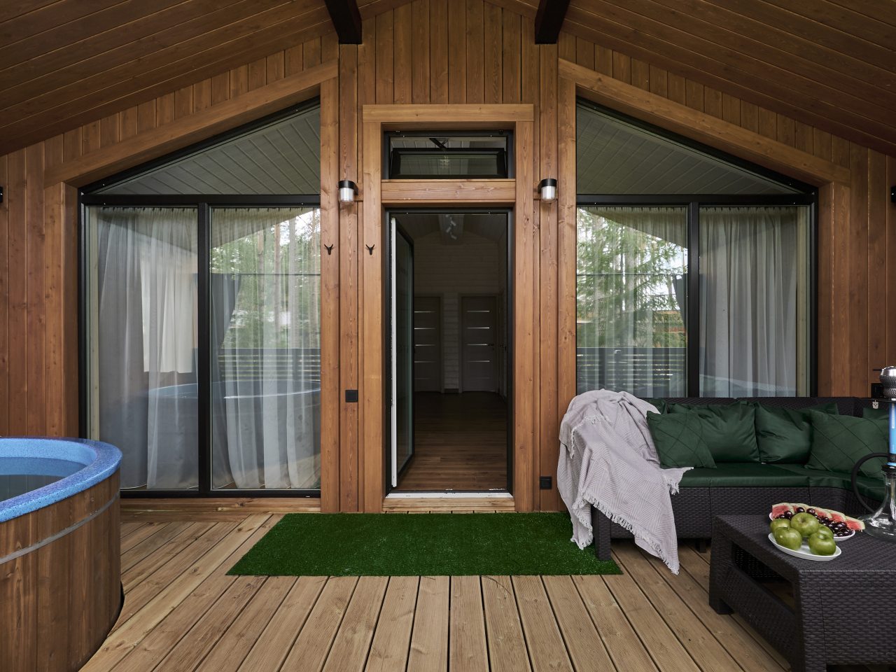 Предоставляются уютные дома, рассчитанные на 6 человек. Интерьер продуман до мелочей, чтобы каждый гость чувствовал себя комфортно: удобная мебель и качественная техника. У каждого дома на террасе имеется открытая купель-джакузи с подогреваемой водой.