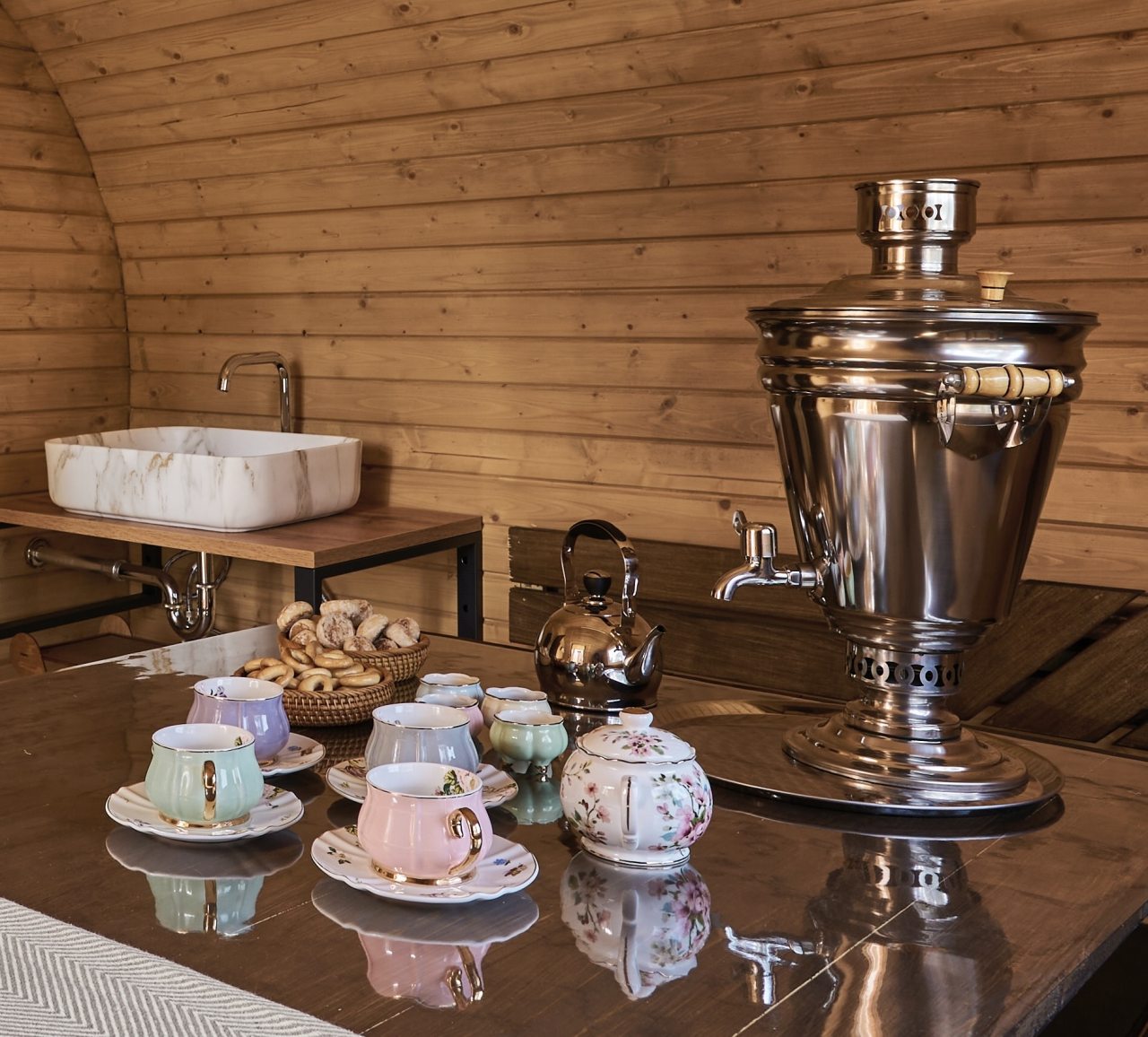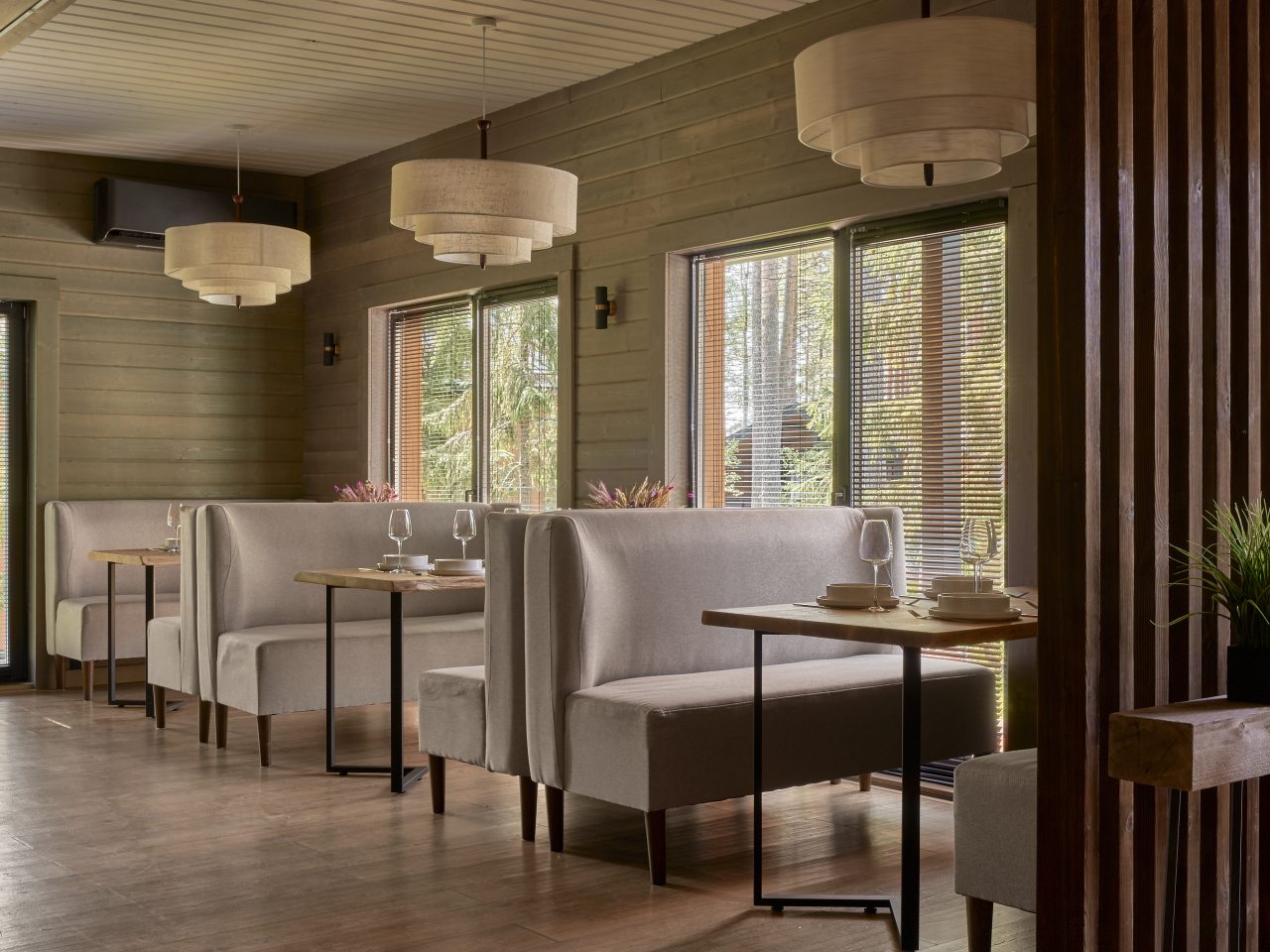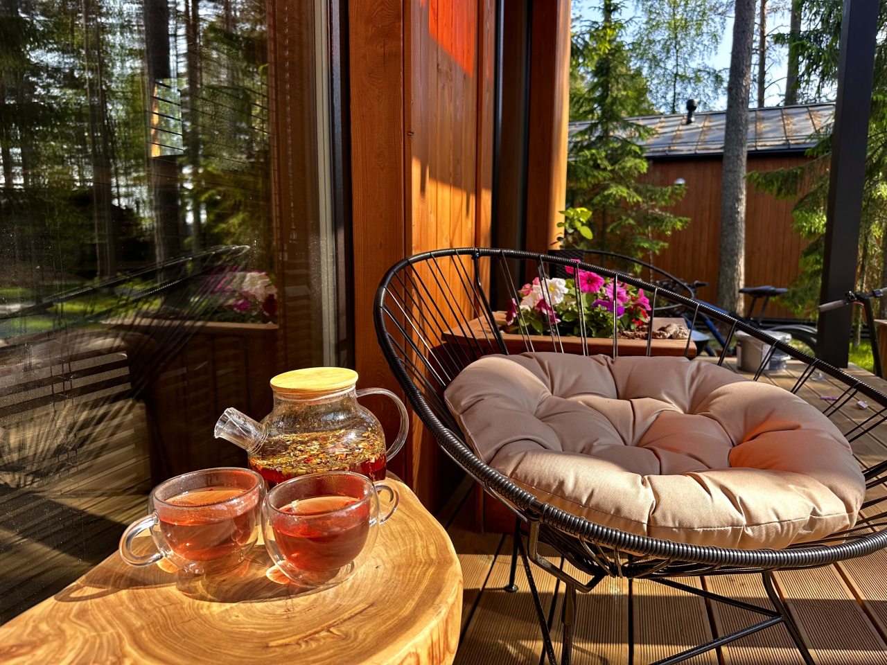 Предоставляются уютные дома, рассчитанные на 6 человек. Интерьер продуман до мелочей, чтобы каждый гость чувствовал себя комфортно: удобная мебель и качественная техника. У каждого дома на террасе имеется открытая купель-джакузи с подогреваемой водой.