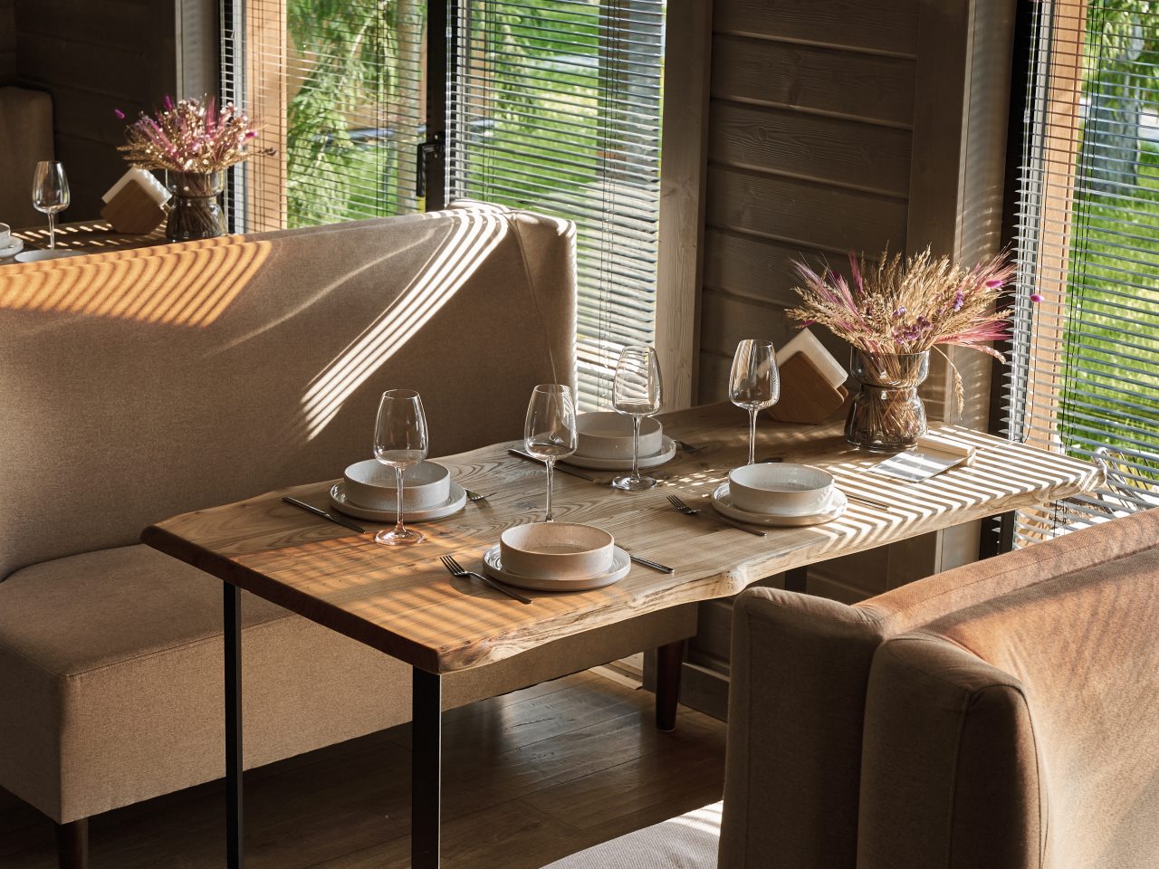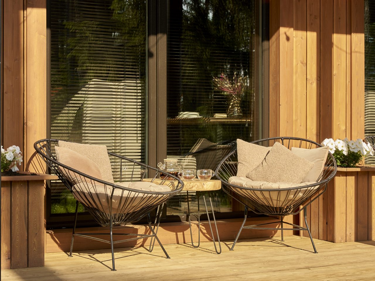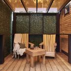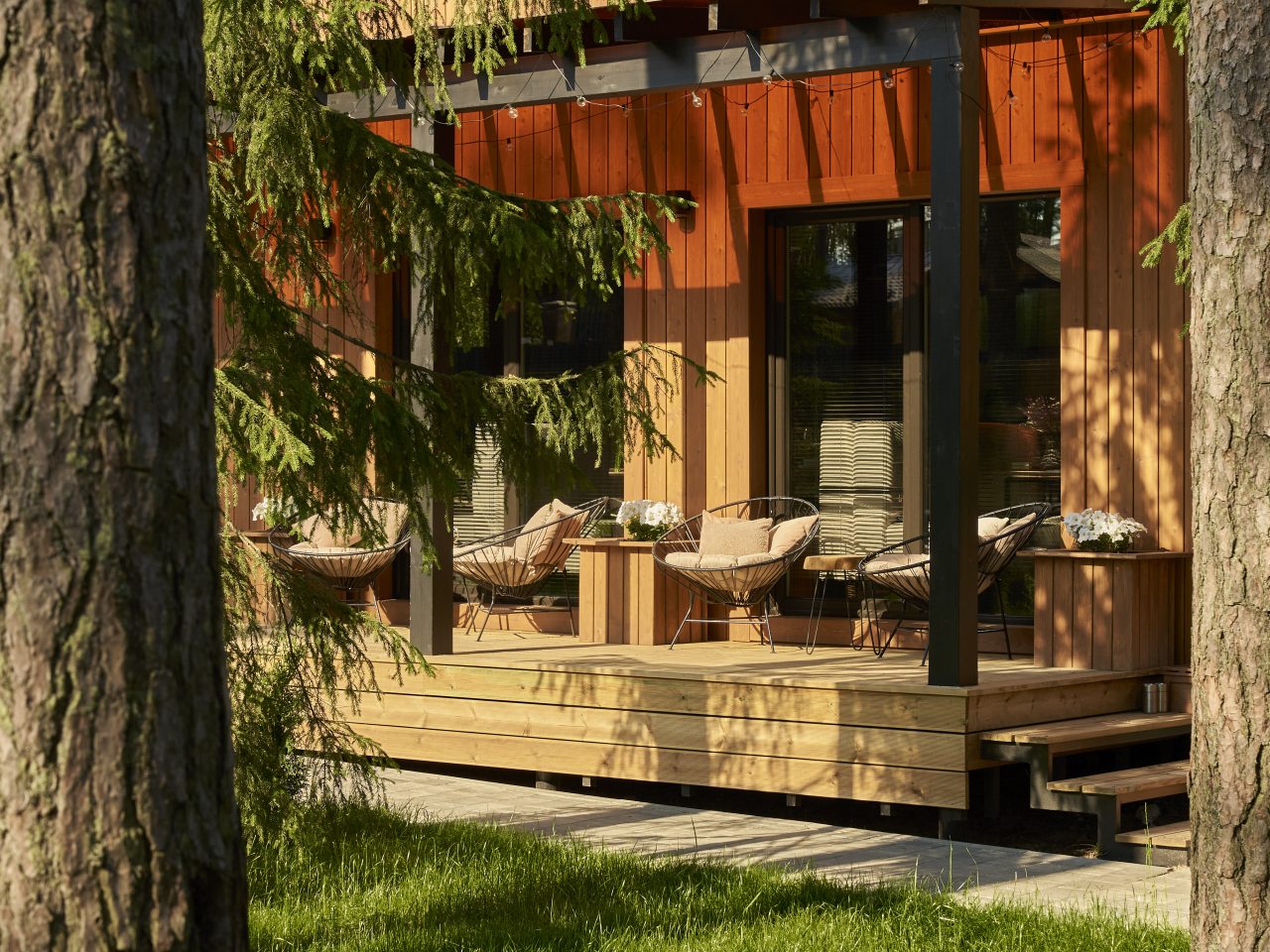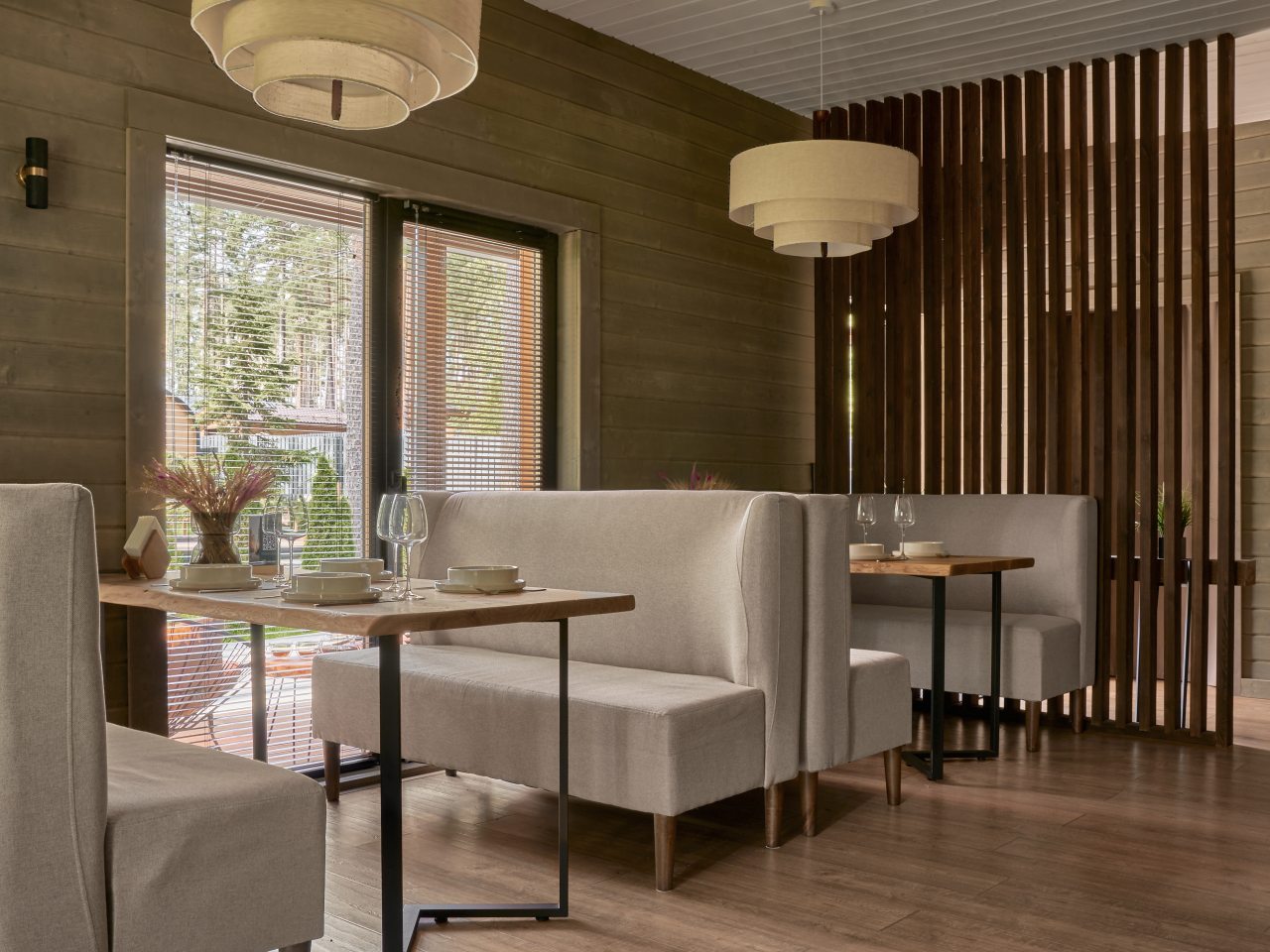 Предоставляются уютные дома, рассчитанные на 6 человек. Интерьер продуман до мелочей, чтобы каждый гость чувствовал себя комфортно: удобная мебель и качественная техника. У каждого дома на террасе имеется открытая купель-джакузи с подогреваемой водой.