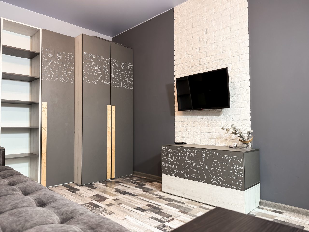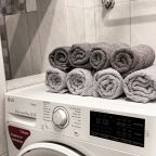 Предлагаются стильные апартаменты с удобной кроватью и комплектом постельного белья, мебелью и телевизором. В интернет можно выйти подключившись к бесплатному Wi-Fi. В ванной есть фен и гигиенический набор, стиральная машина.
