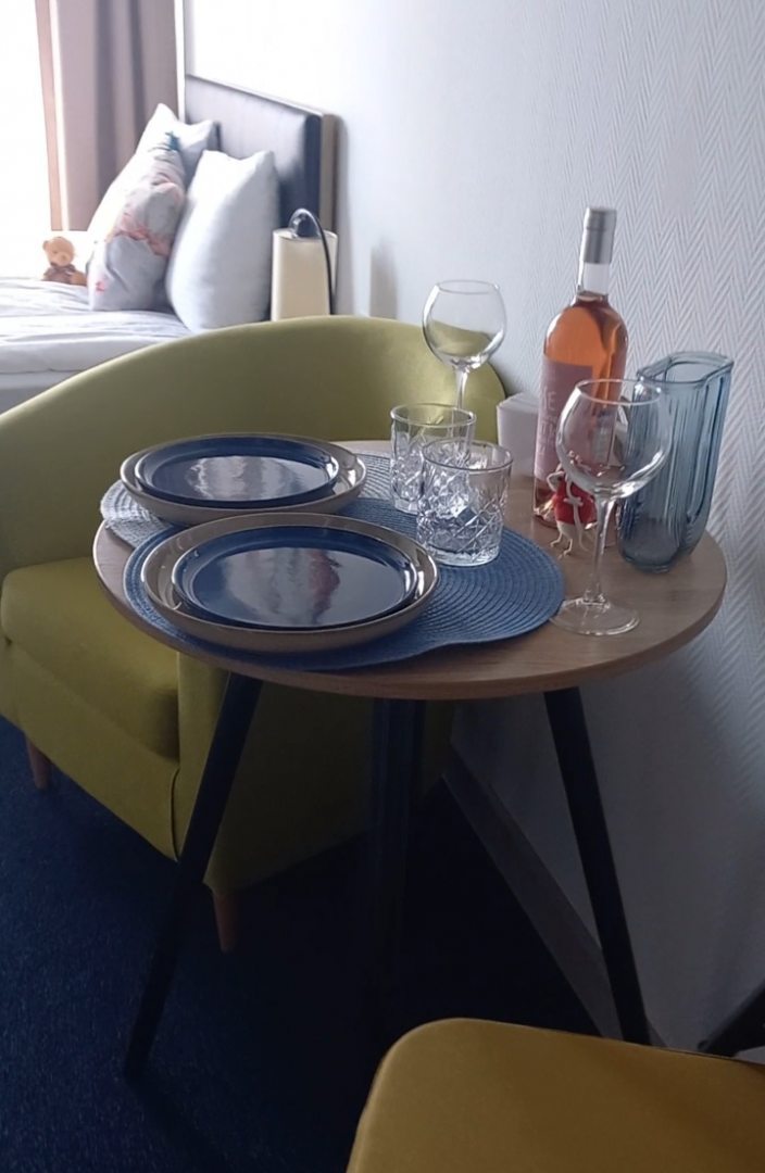 Отличное расположение, недалеко от жд аокзала, чистота и красота в номере. Уютные мелочи в виде приятных игрушек, вазочек. Все необходимое из бытовой техники и посуды. На первое время чай, кофе, сахар обычный и тростниковый, вода. Махровые халаты, тапочки, белоснежные полотенца, зубные щетки с пастой, жидкое мыло, салфетки. Даже вино с бокалами. Впечатляет!