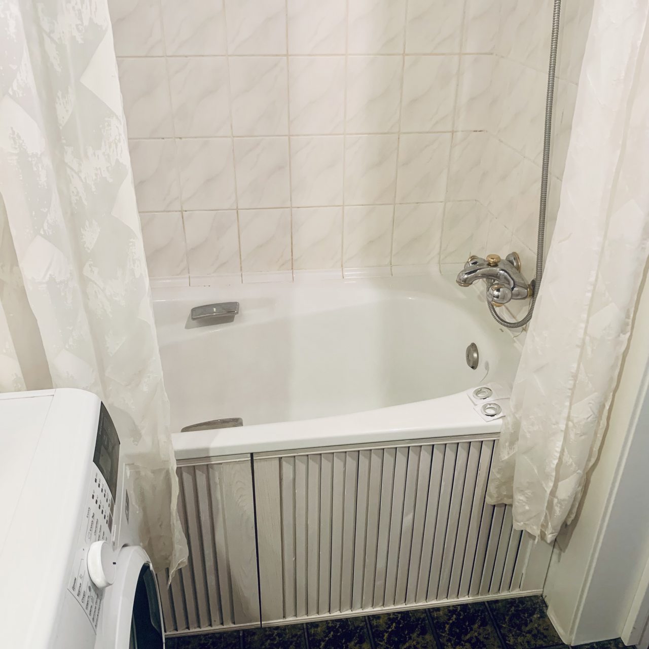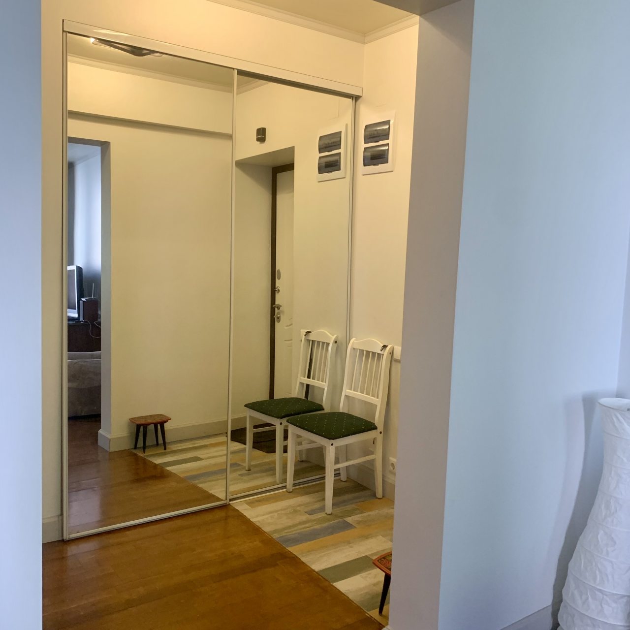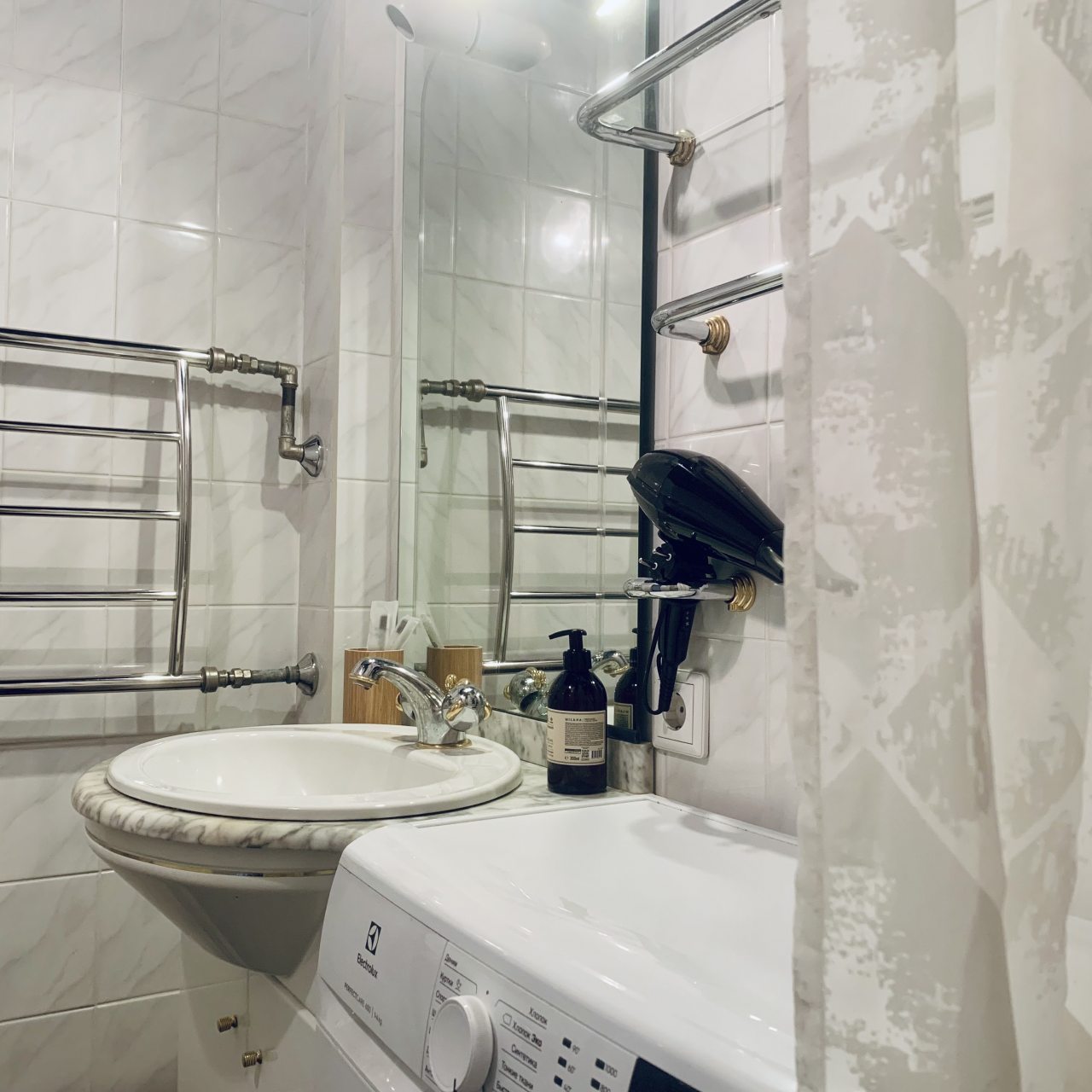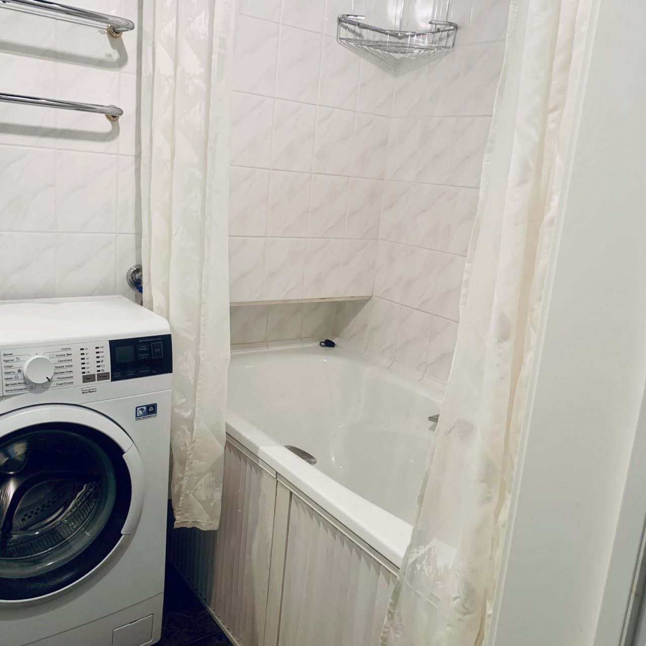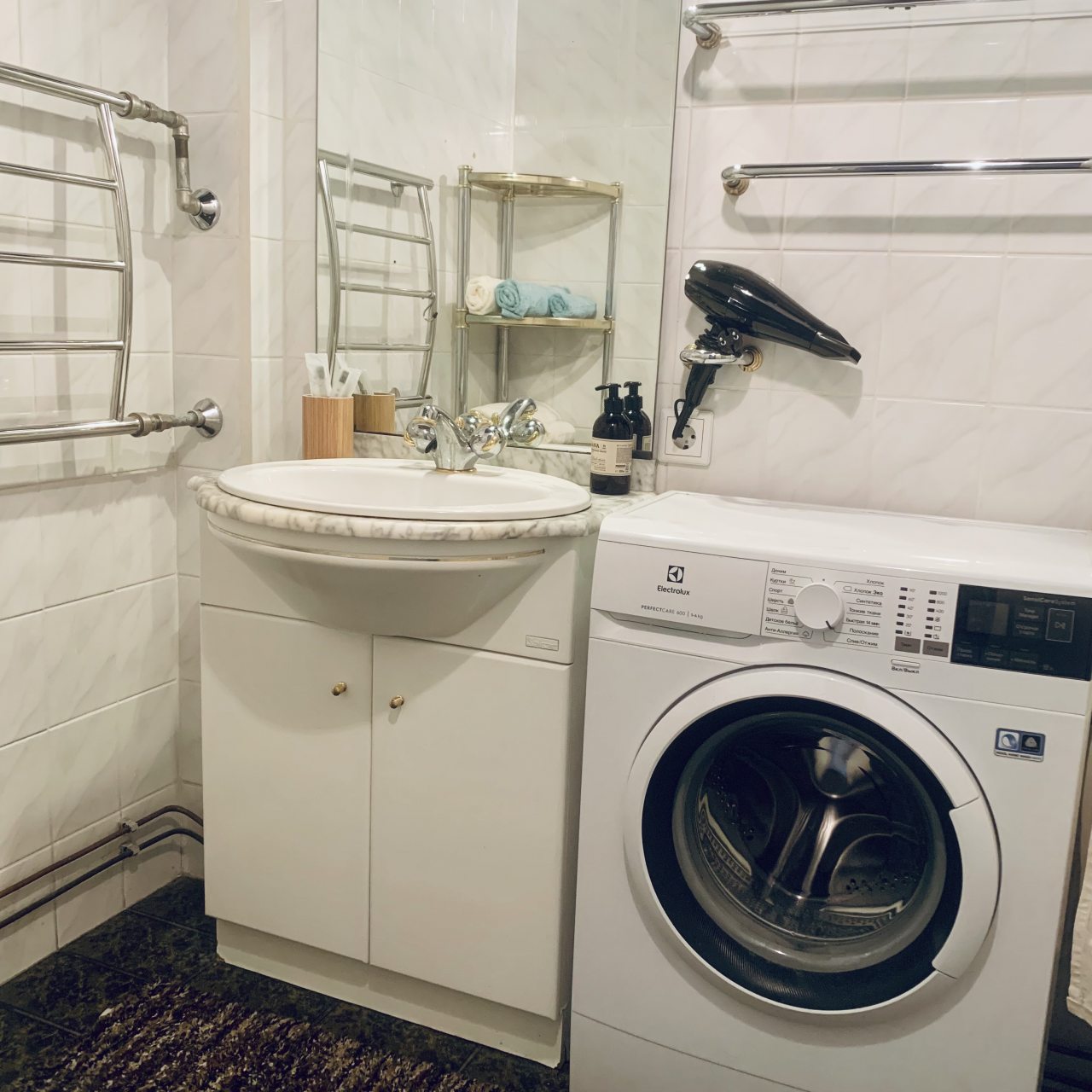 Для комфортного проживания имеется двуспальная кровать с удобным матрасом, шкаф с зеркалом в полный рост, кондиционер, ванная комната со стиральной машиной, диван с телевизором.