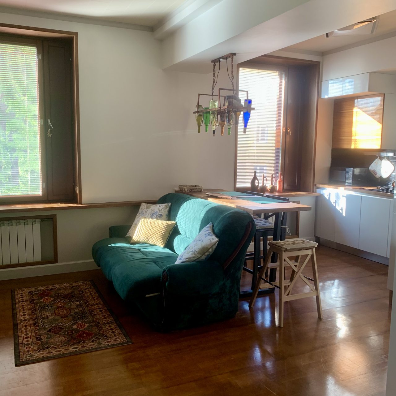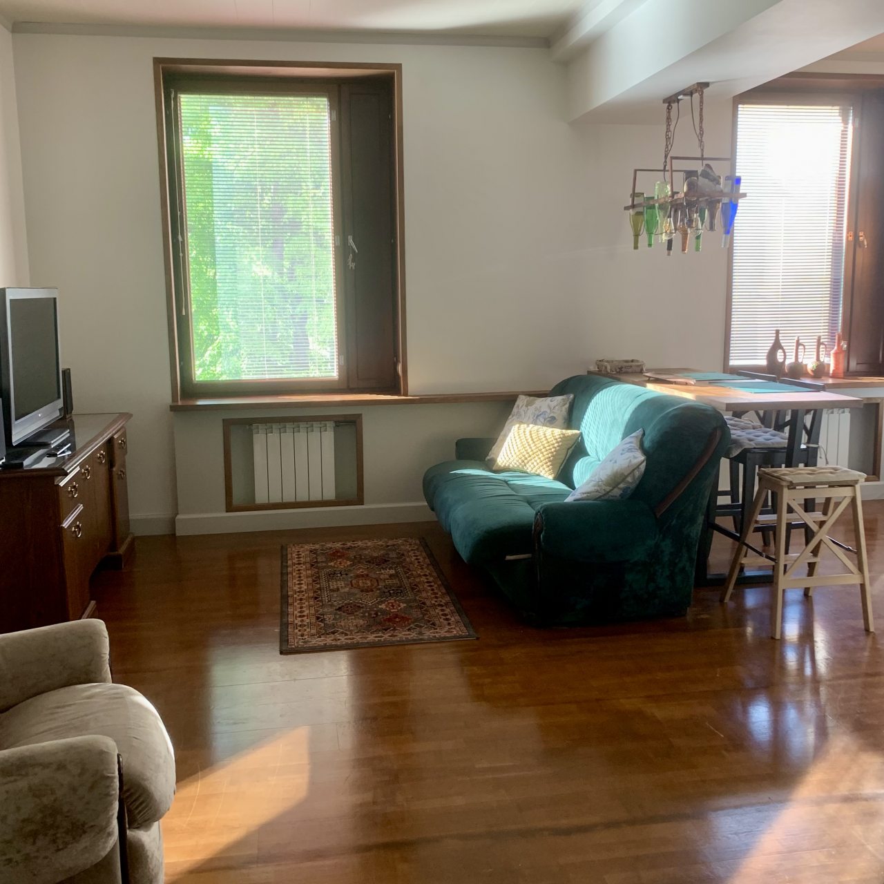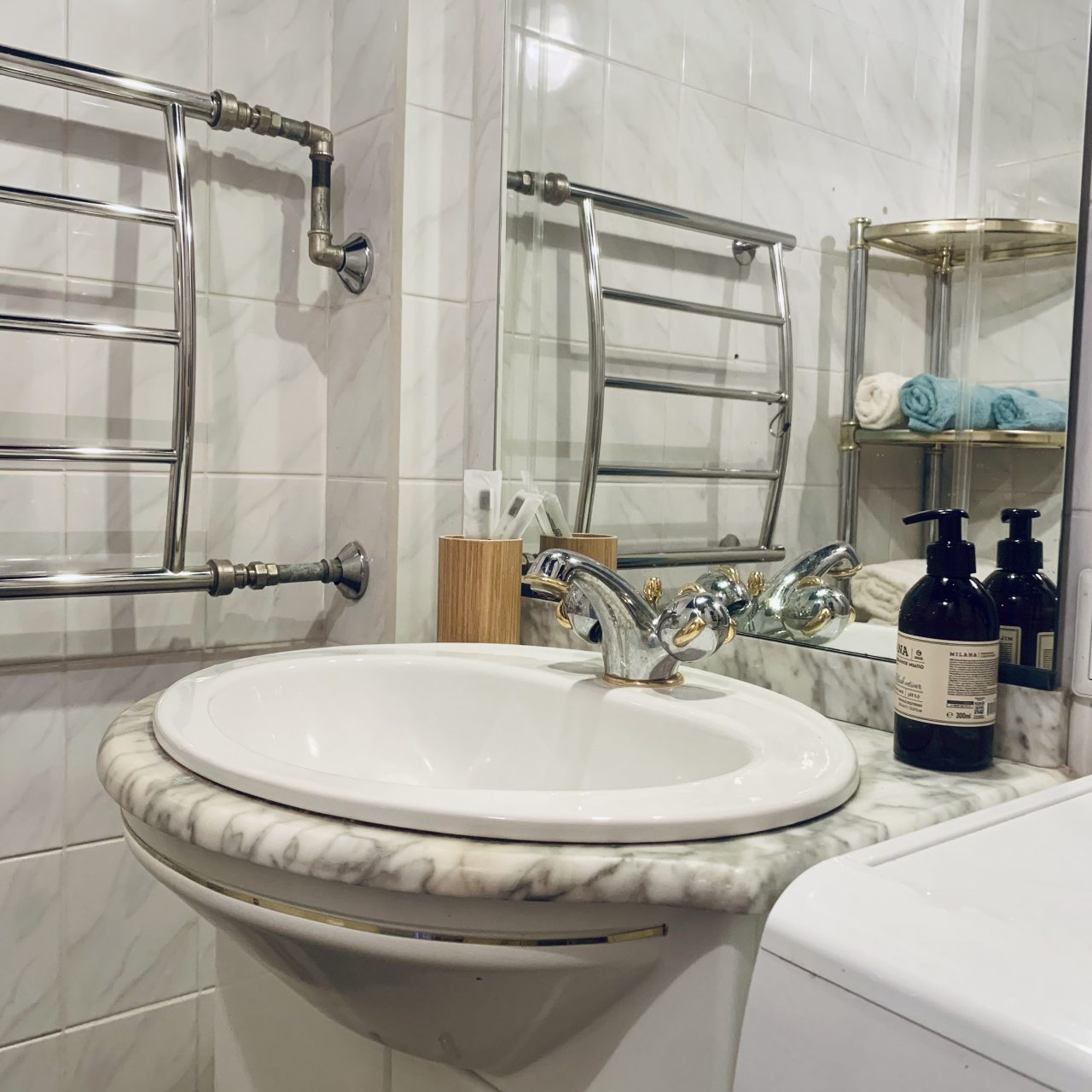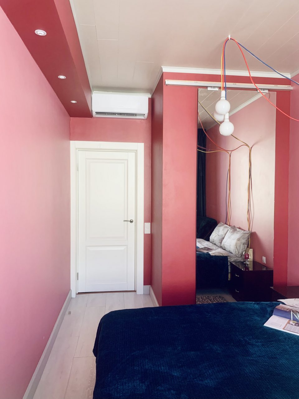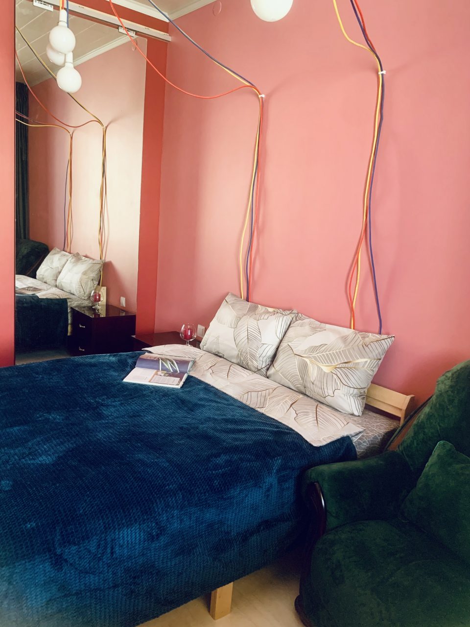 Для комфортного проживания имеется двуспальная кровать с удобным матрасом, шкаф с зеркалом в полный рост, кондиционер, ванная комната со стиральной машиной, диван с телевизором.