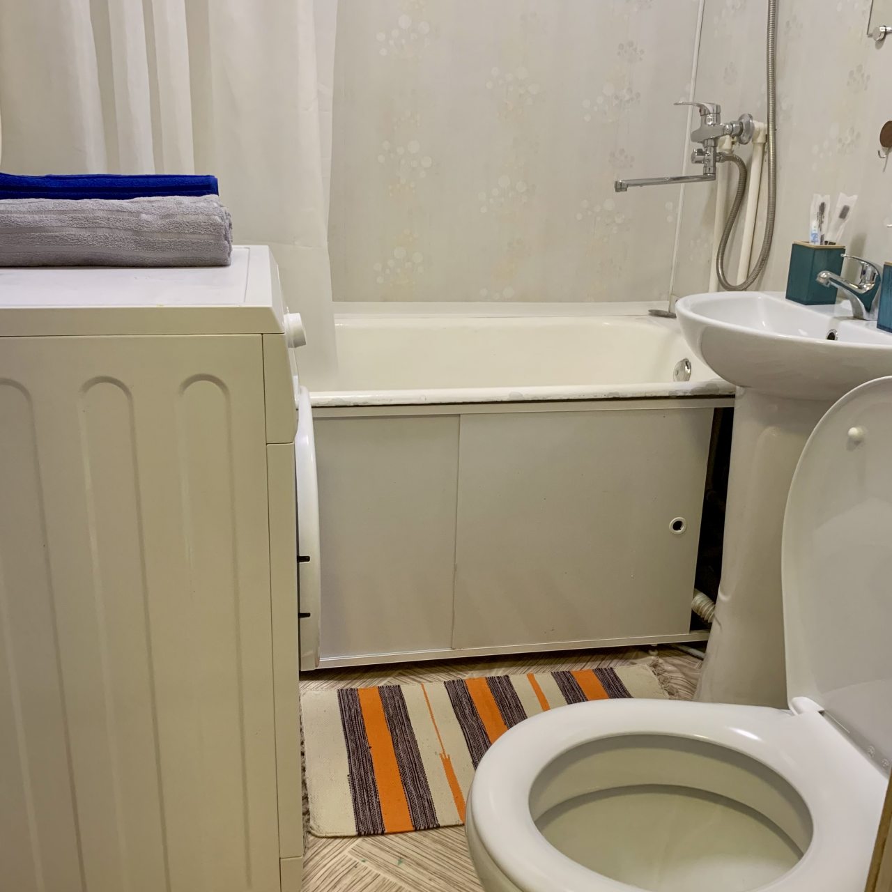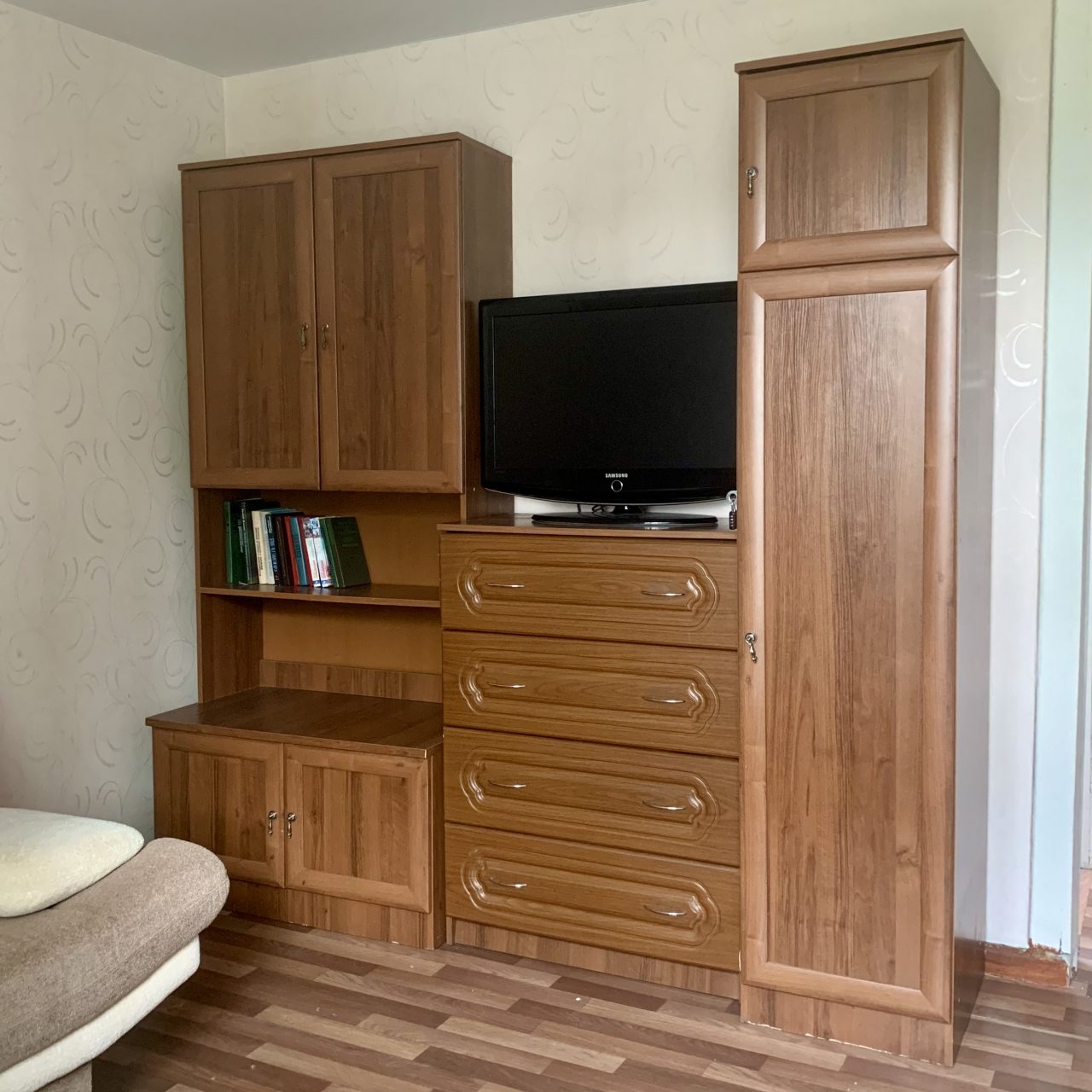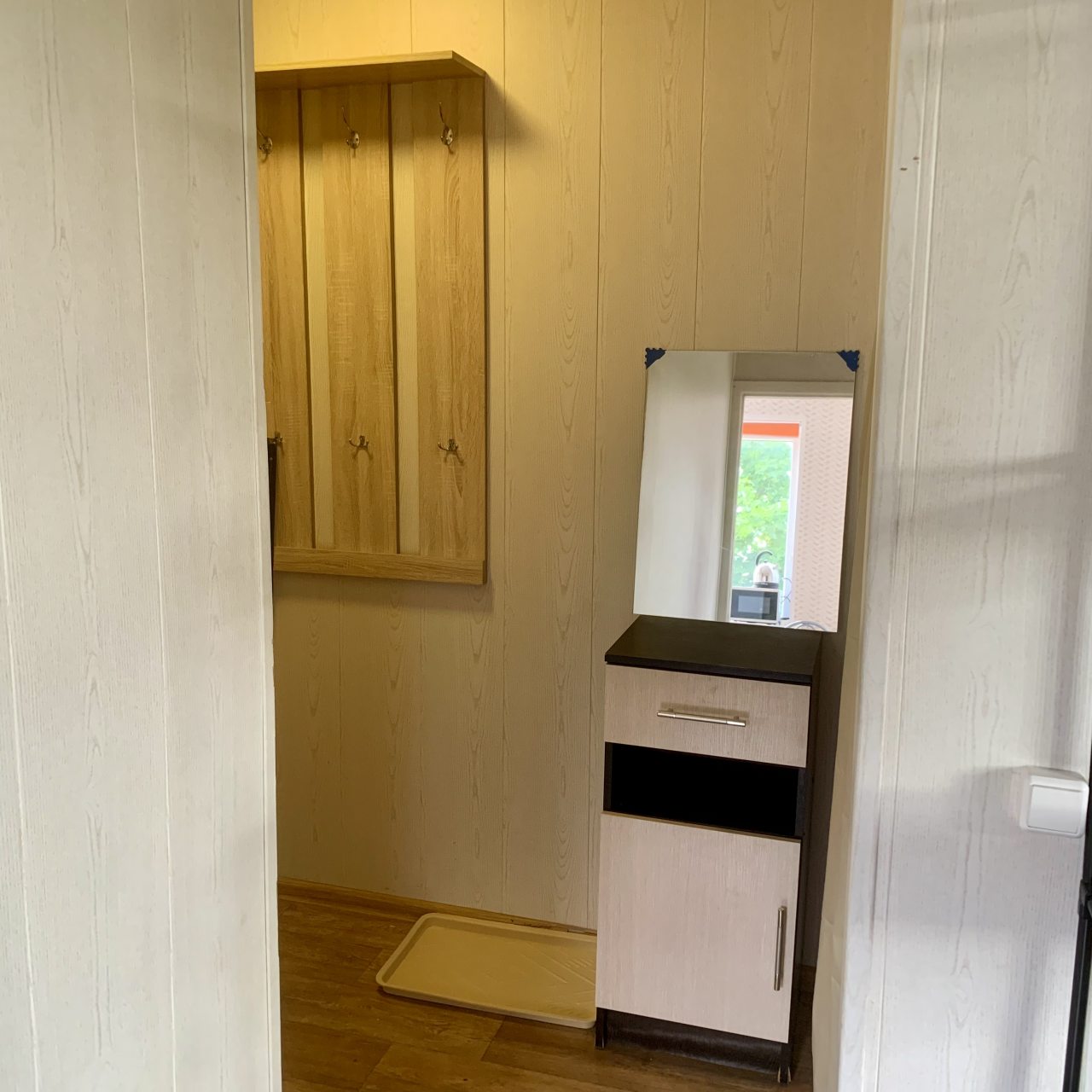 Внутри предусмотрено всё для качественной жизни и отдыха, в том числе двуспальная кровать с хорошим матрасом, удобный диван, телевизор, различные шкафы. В ванной имеется стиральная машина и комплект полотенец.