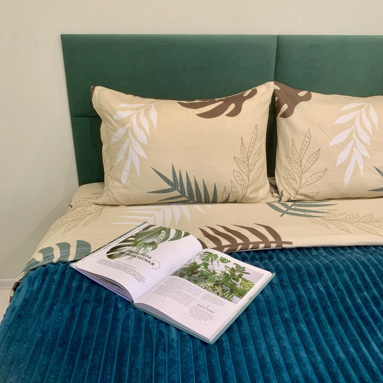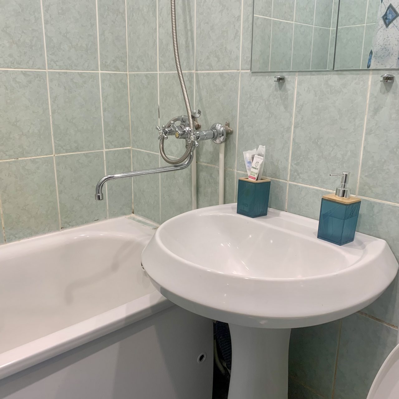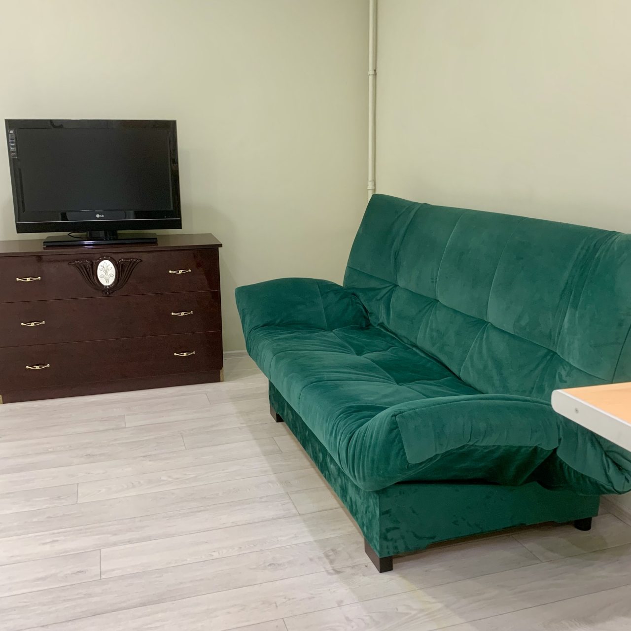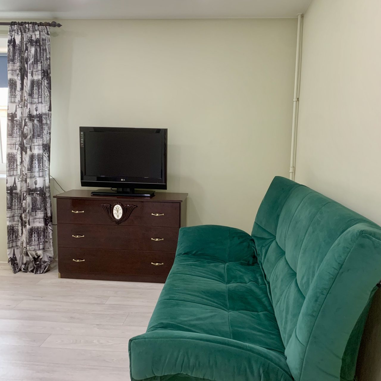 Для комфортного проживания предусмотрено всё необходимое, в том числе: удобная двуспальная кровать, мягкий диван с телевизором, комод, а также ванная комната со стиральной машиной, феном, полотенцами и средствами для гигиены.