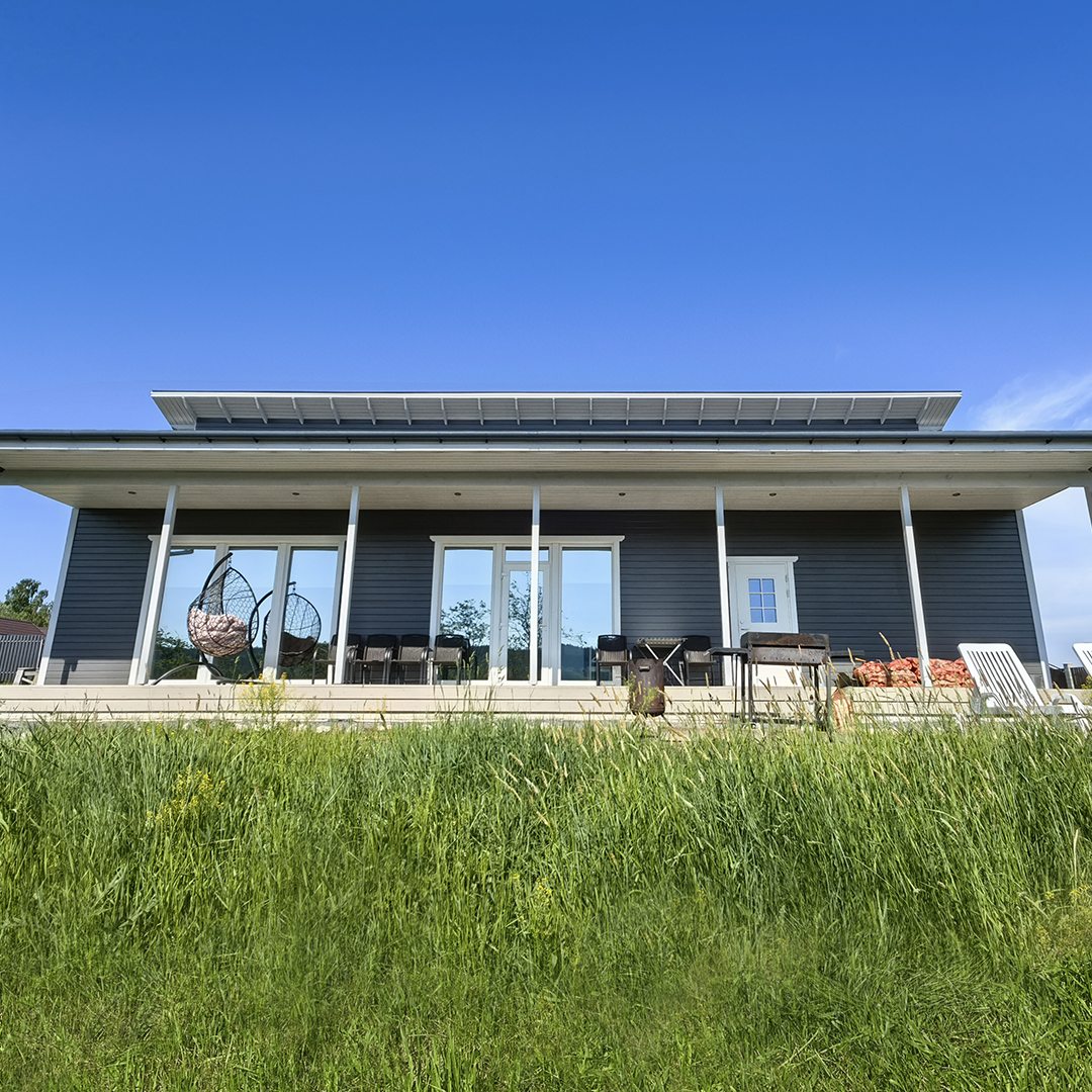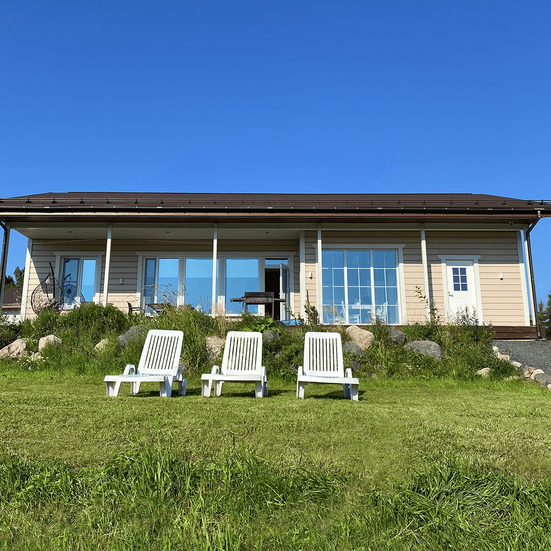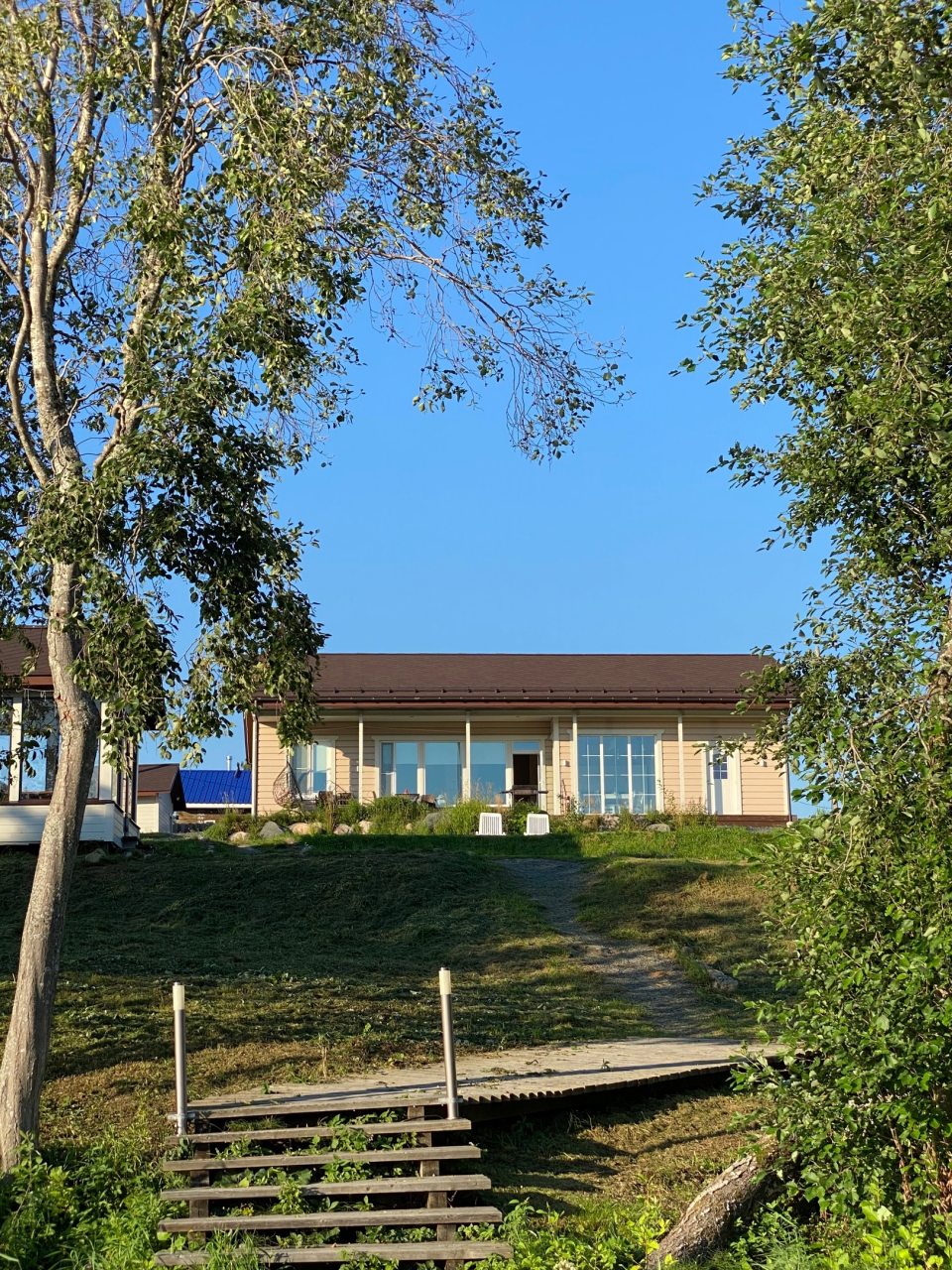 Коттеджи расположены на первой береговой линии, прямо на берегу залива Онежского озера. У коттеджа есть удобный пирс с лестницей для купания.
