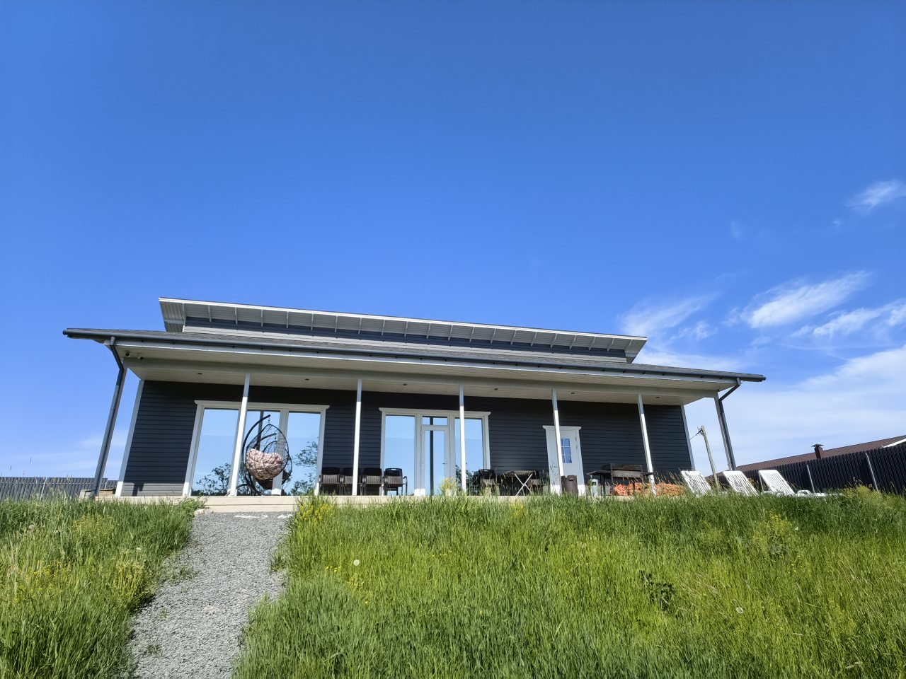 Наверное, владелец очень любит свой край. Картины с его изображением украшают интерьер коттеджа. Это нестандартная гостиница с большим набором услуг в домике телевизор, интернет, кухня, огромные окна. Светлые стены, прекрасные виды.