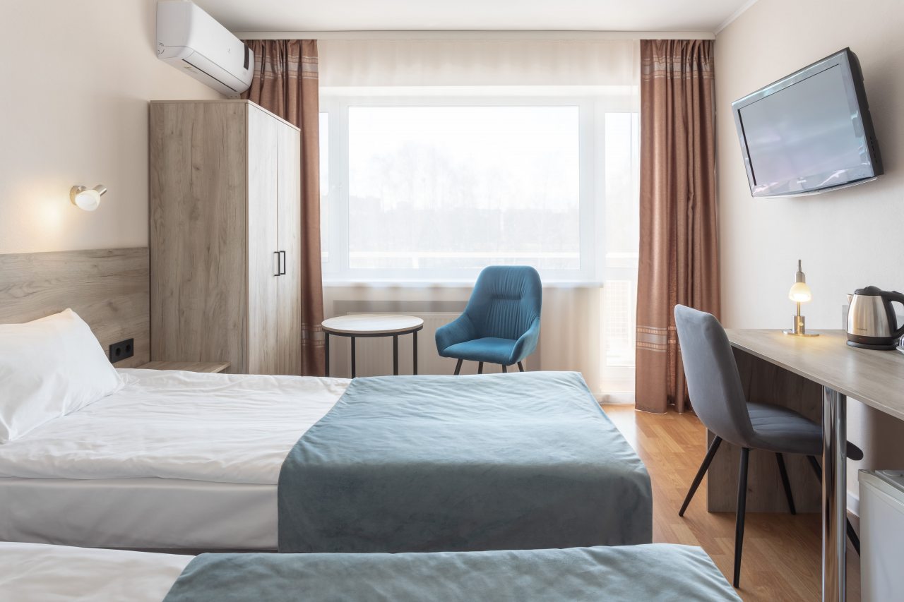 Гостиница располагает уютными и светлыми номерами, в которых есть все необходимое для комфортного проживания: удобная мебель, телевизор, рабочий стол. В ванной комнате есть душ и туалетно-косметические принадлежности.