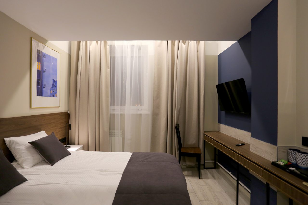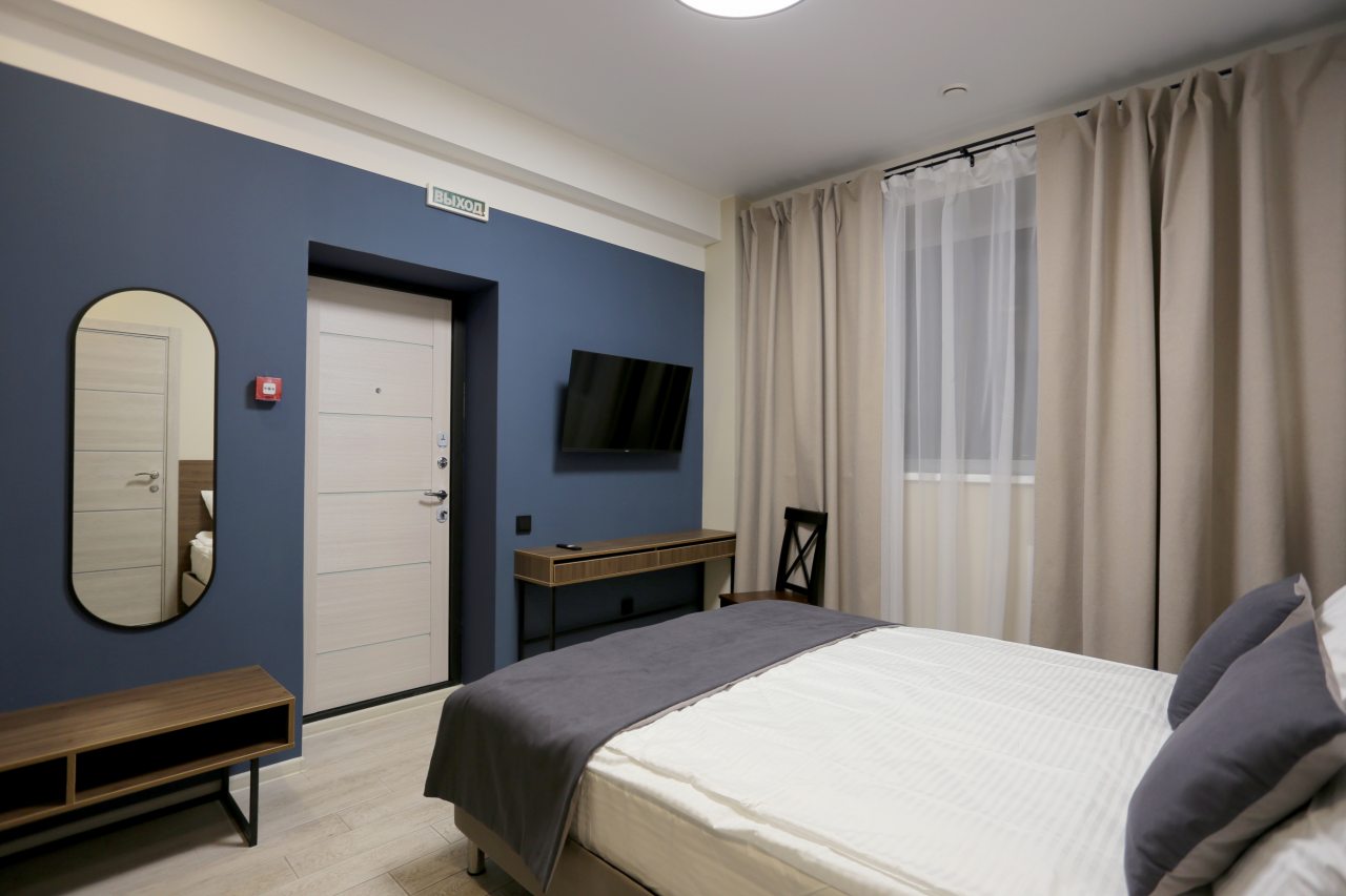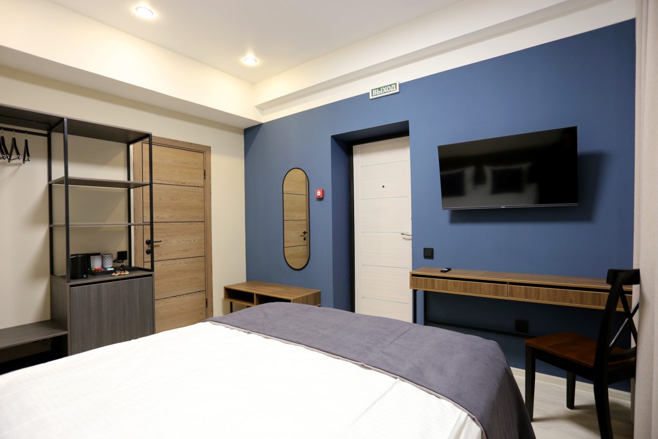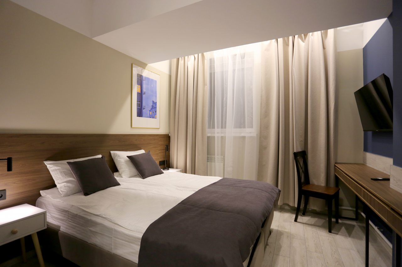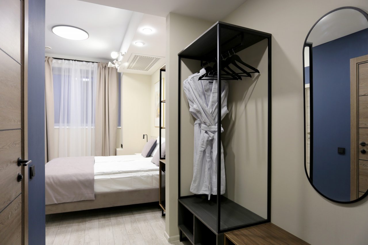 Для выбора доступно несколько категорий номеров. В каждом вас ожидает качественная мебель и техника, в том числе удобное спальное место, телевизор, различные источники освещения, а также собственный санузел с душевой и средствами для гигиены.