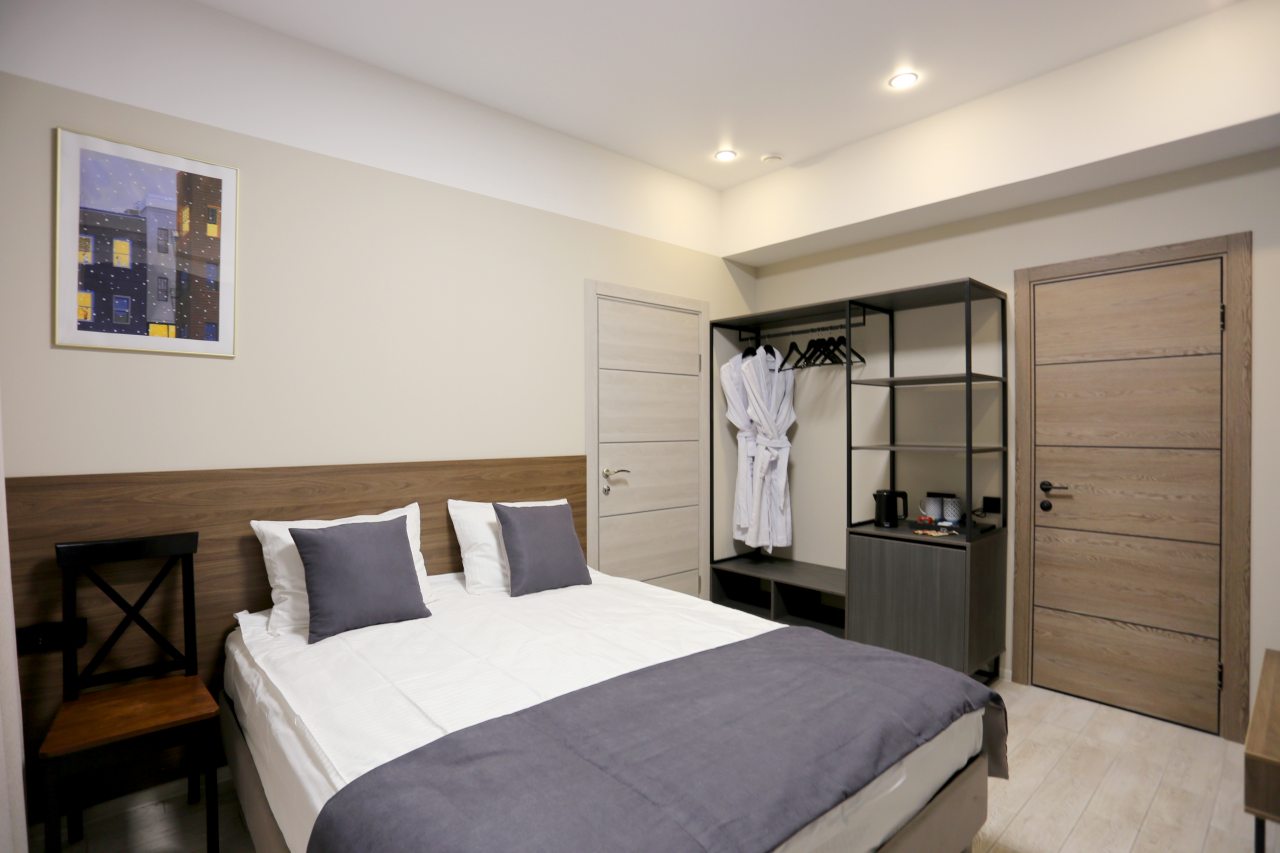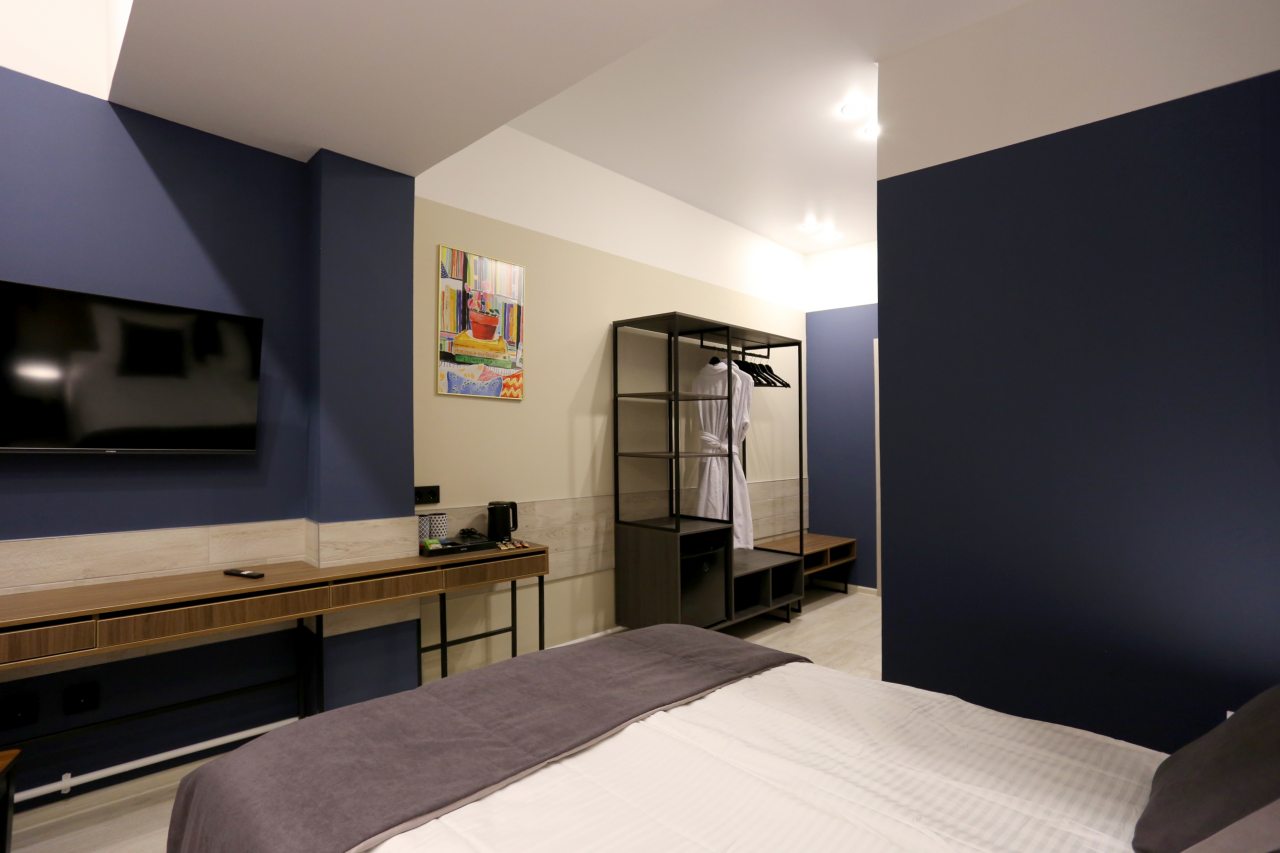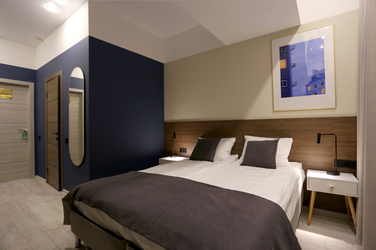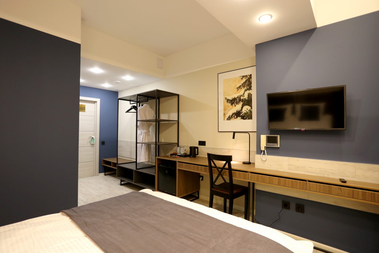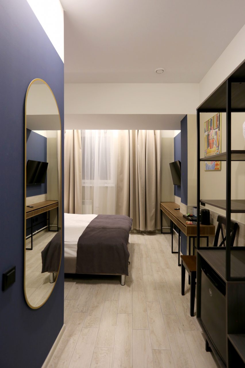 Для выбора доступно несколько категорий номеров. В каждом вас ожидает качественная мебель и техника, в том числе удобное спальное место, телевизор, различные источники освещения, а также собственный санузел с душевой и средствами для гигиены.