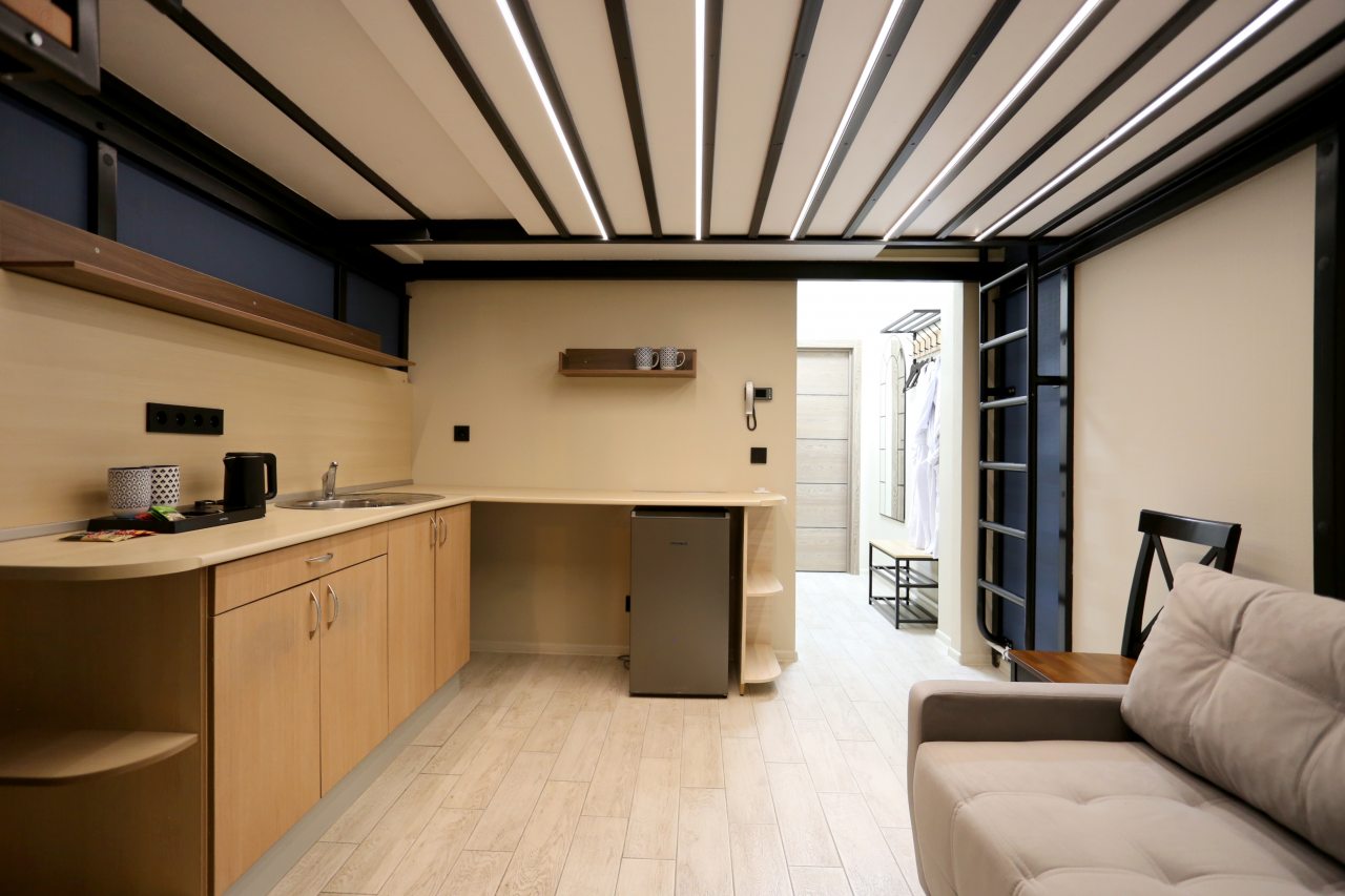 Для дополнительного удобства внутри номеров установлены чайная станция и холодильник. Таким образом, вы всегда сможете организовать чаепитие или перекус.