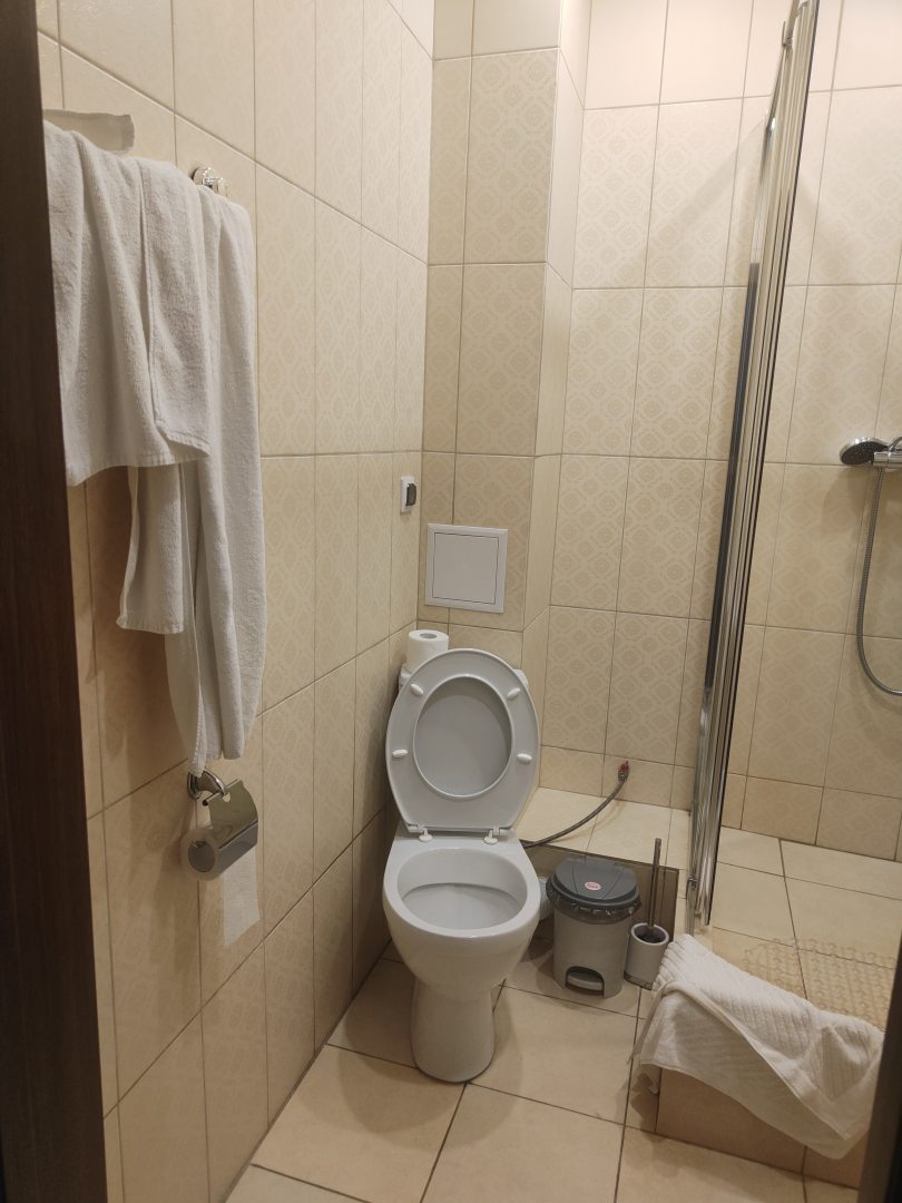 На время командировки в Петрозаводске бронировал одноместный номер. По площади нормальный, с отдельной ванной комнатой. Холодильник в номере у меня был. Телевизор подвешен на стене, напротив небольшой стол с чайником и кружками тоже присутствовал. Полотенца предоставили, постельное белье уже было заправлено. Оформление номера приятное. Люди, работающие здесь, приветливые. Ни слова грубости не услышал.
