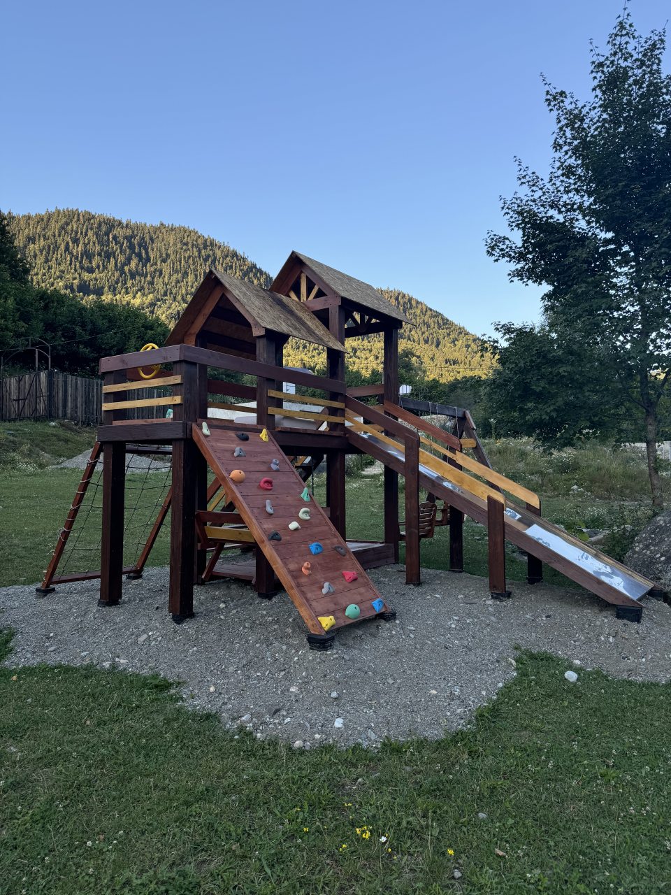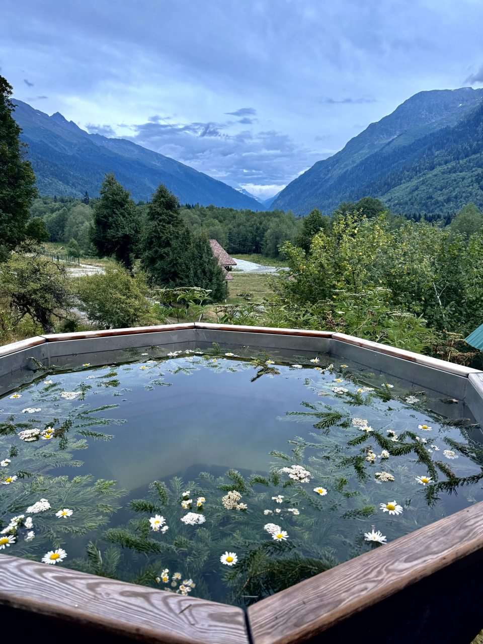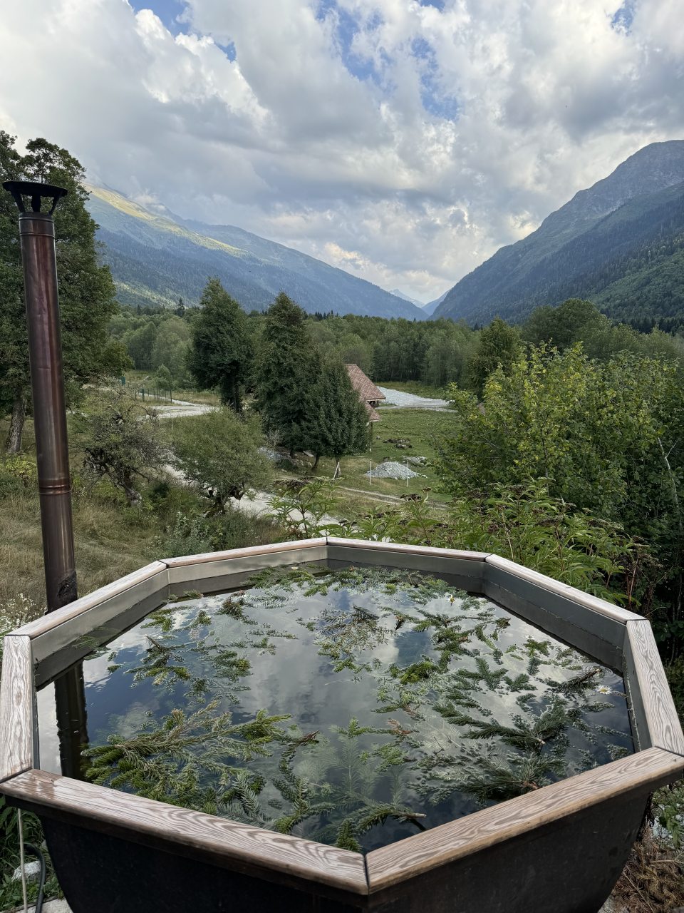 Для отдыха и расслабления имеется банный чан, находясь в котором вы можете созерцать живописные природные пейзажи. Поблизости протекает река Большая Лаба. Расстояние до ближайшего железнодорожного вокзала в Розе Хутор — около 54 км, а до аэропорта Сочи — 82,5 км.
