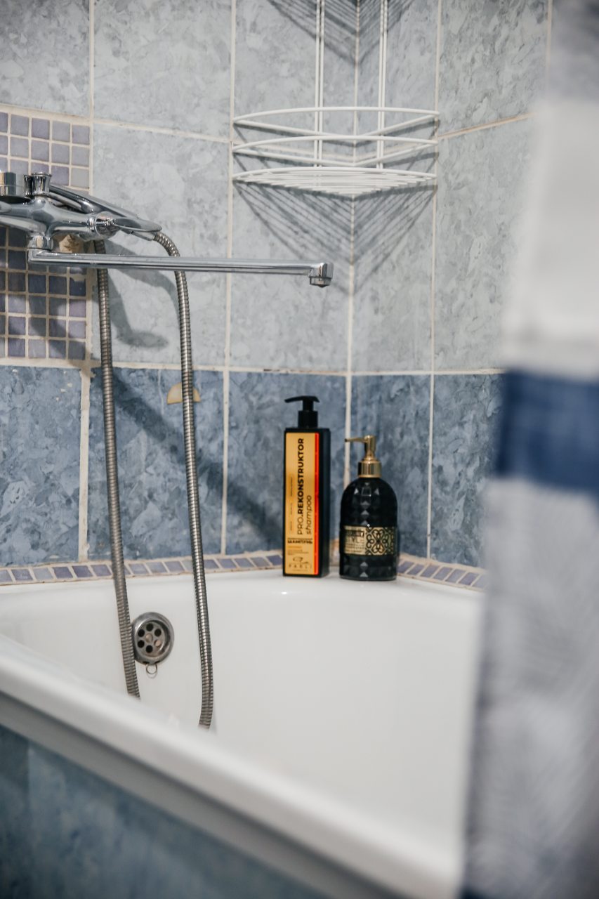К проживанию предлагается уютная квартира, хорошо меблированная и оснащённая техникой для комфортного проживания. Имеется двуспальная кровать, диван, шкаф, сушилка для одежды, светильник, телевизор, бесплатный скоростной интернет. Затемнённые шторы поспособствуют крепкому сну. Санузел оборудован сантехникой, стиральной машиной, ванной, феном, полотенцами, средствами гигиены.